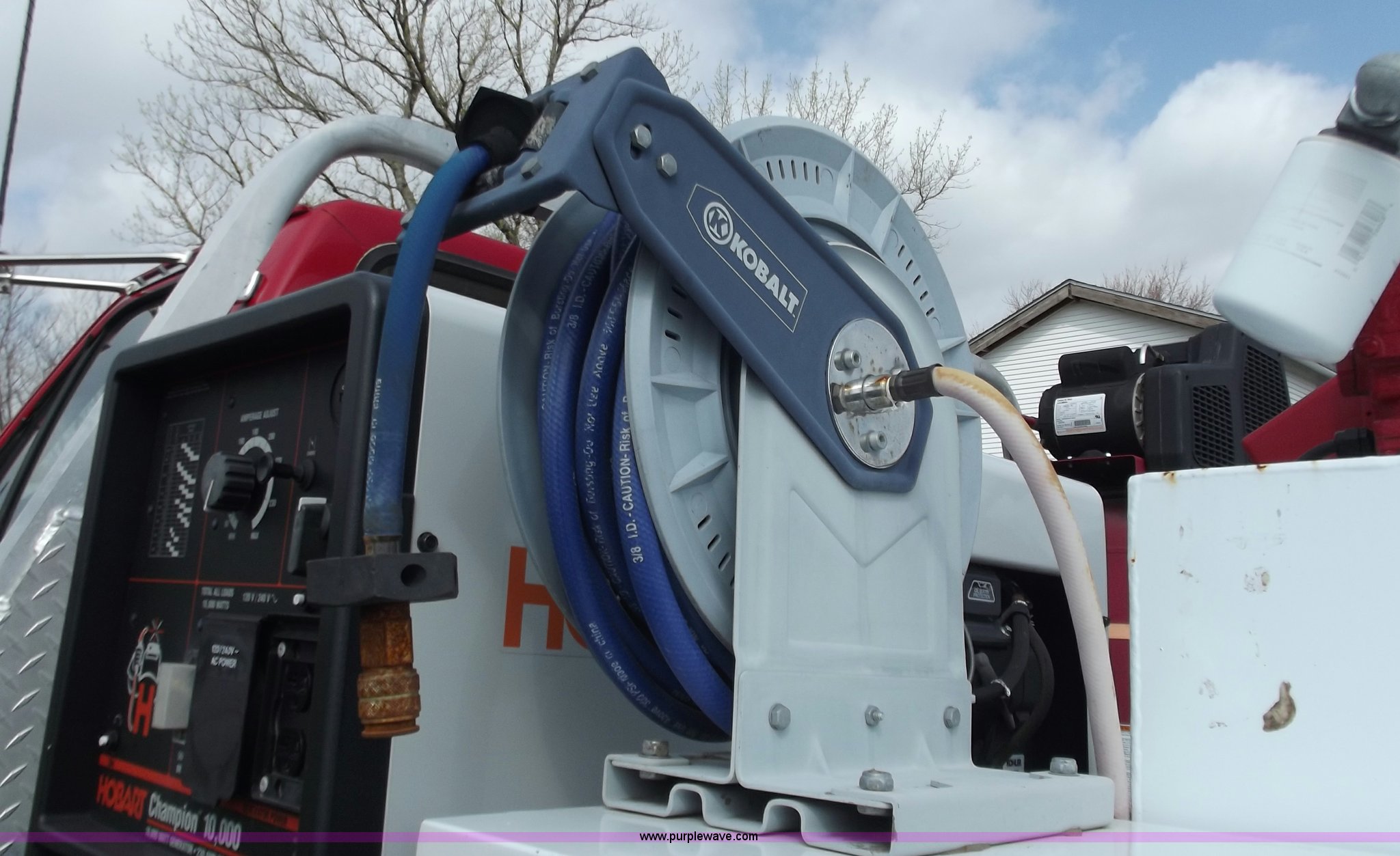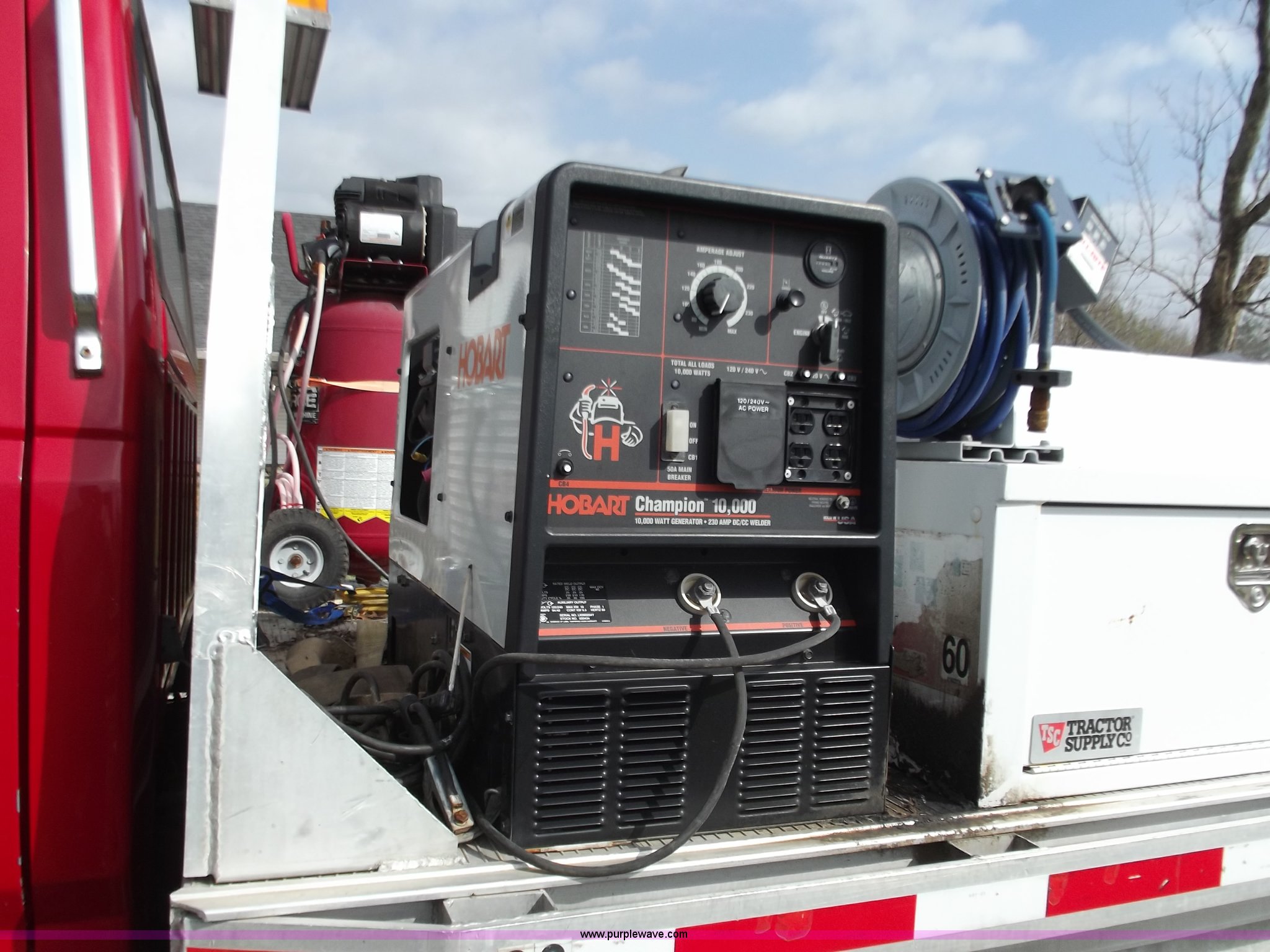 Purple Wave is selling a used Service Truck in Missouri. This item is a 1990 Ford F700 service truck with the following: 218,556 miles on odometer, Ford 6.6L six cylinder diesel engine, Does not run, Six speed manual transmission, AC and heat, AM/FM, Spring ride seat, 12'L x 8'W aluminum flatbed, Headache rack, Hobart Champion 1000 welder/generator, 88 hours on meter, 10,000 watt, Mega Force 30 gallon electric air compressor, 155 psi, Dual 50' hose reels, (2) Delta 100 gallon fuel tanks, Fill Rite 12v pumps with filters and meters, (4) storage boxes, (2) two door, (2) single door,, Yellow beacon, (2) 50 gallon fuel tanks, Spring suspension, Air brakes, Brake controller, Receiver hitch, Trailer wiring, 9R22.5 tires, CB and antenna not included, Engine not running