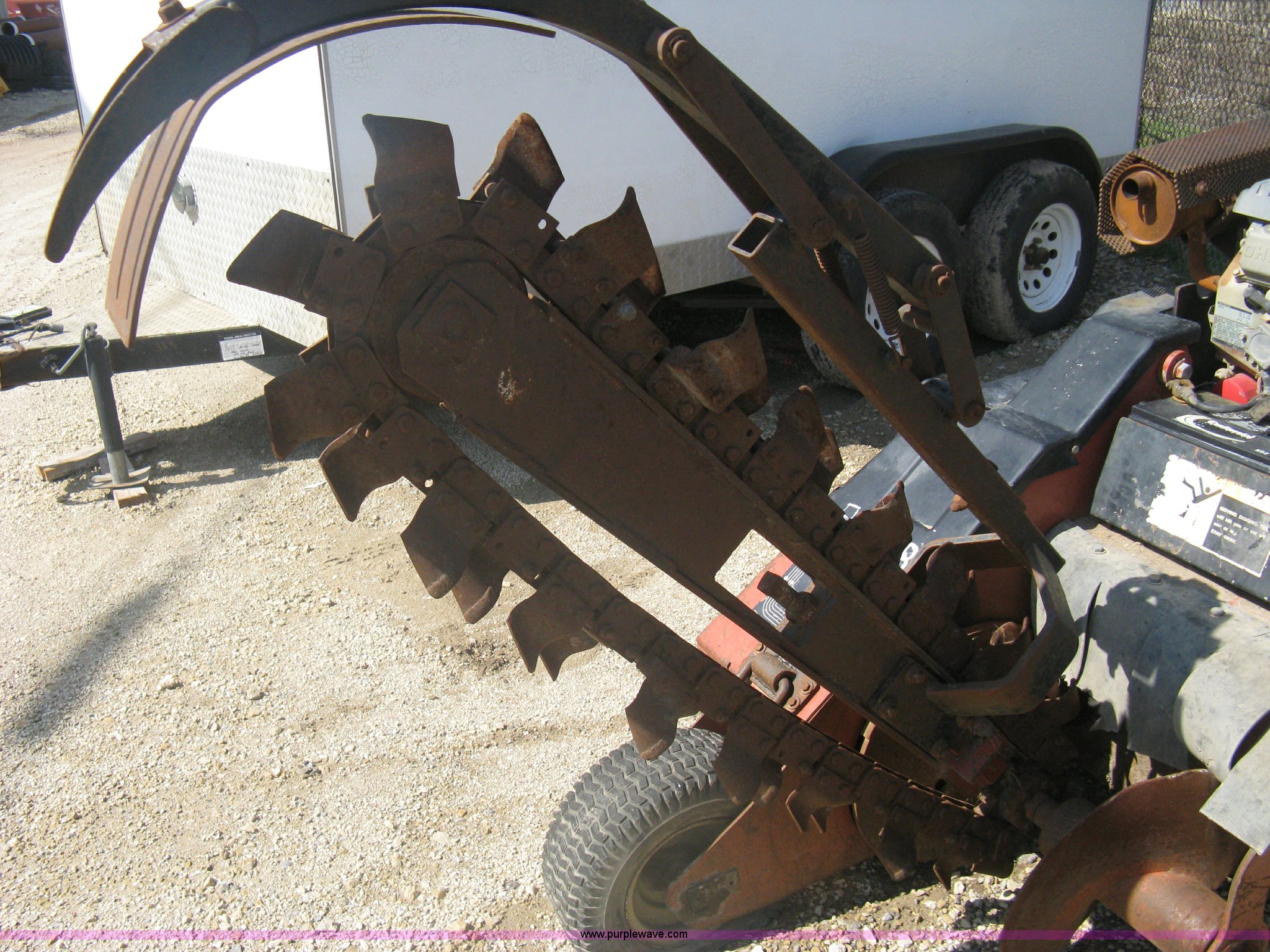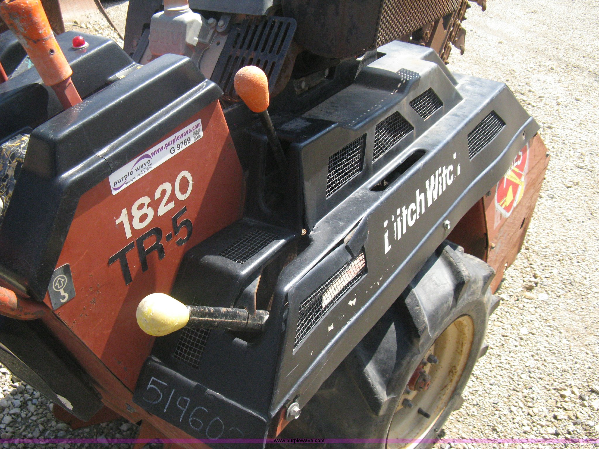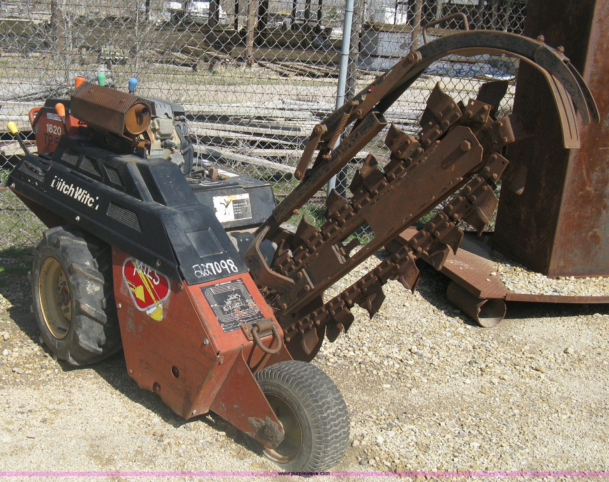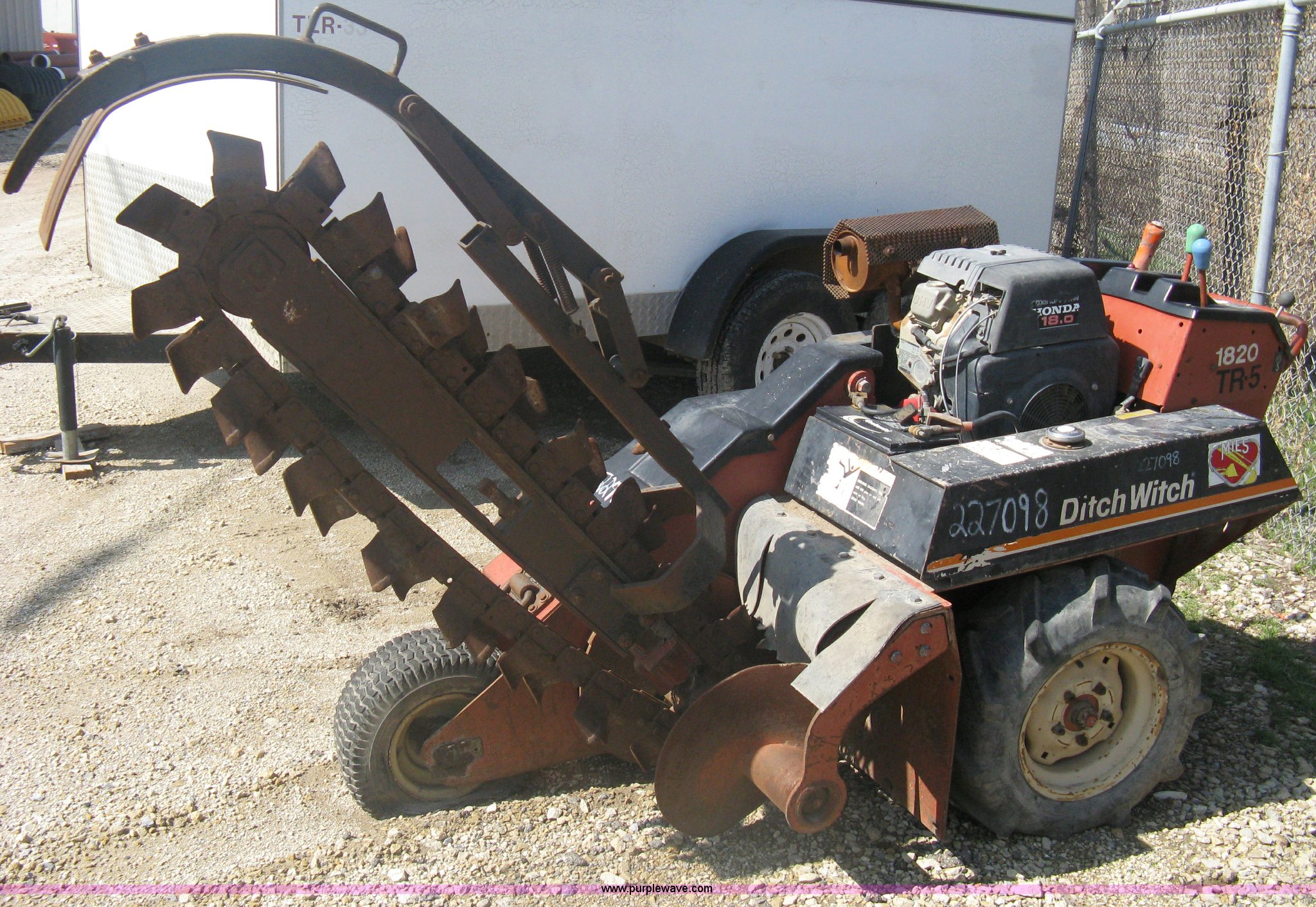 Purple Wave is selling a used Trencher or Rock Saw in Kansas. This item is a Ditch Witch 1820H walk behind trencher with the following: 489 hours on meter, Honda 18 HP gas engine, Hydraulic main axle steering, Serial 1N0652
