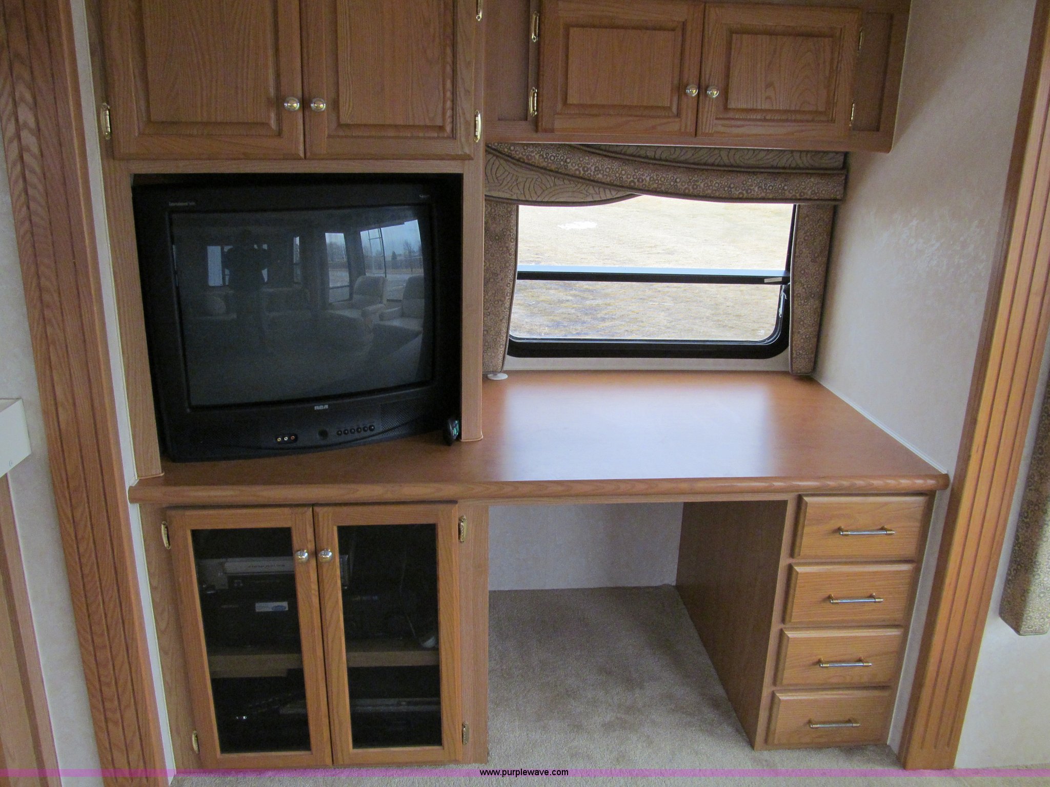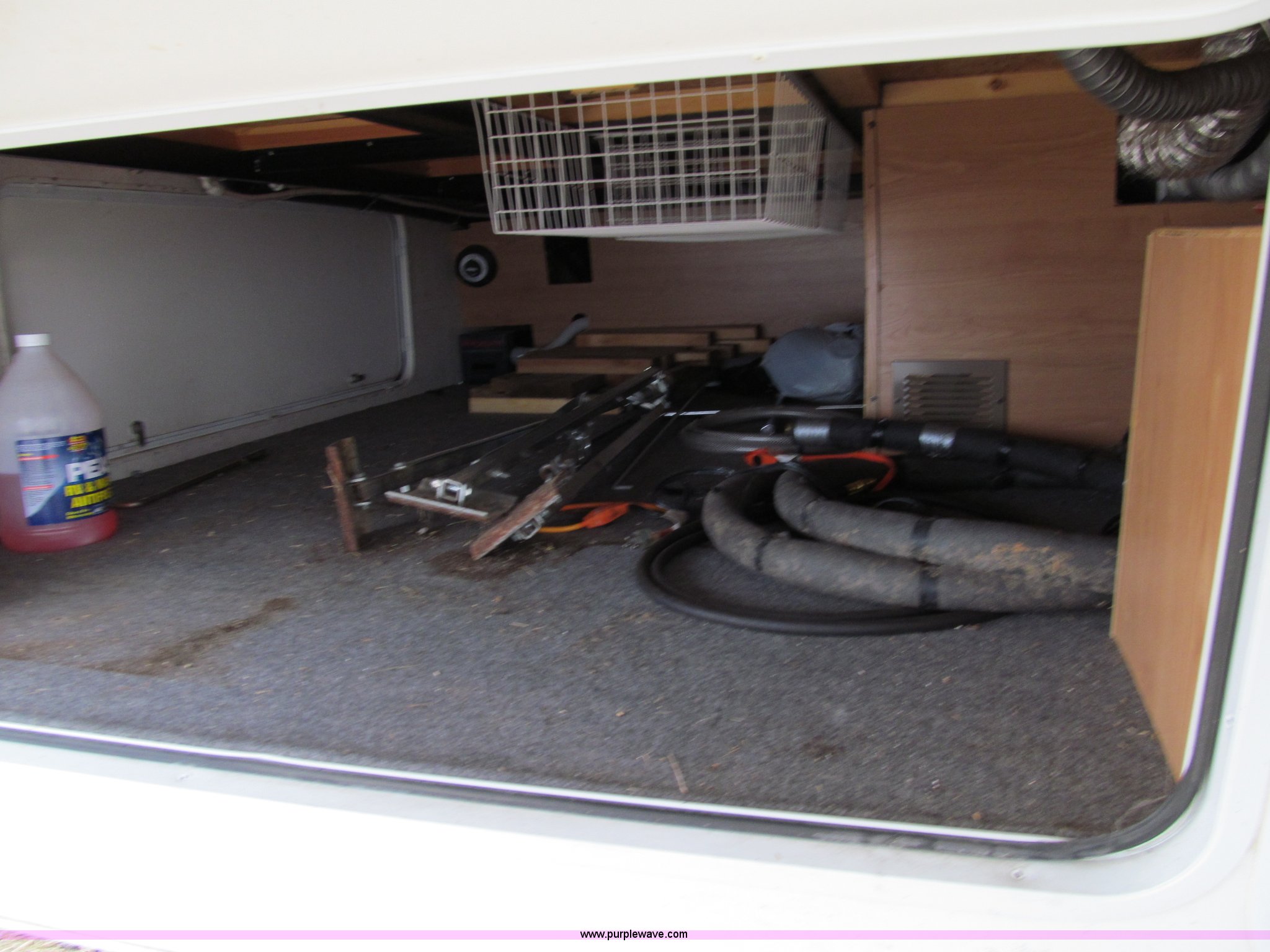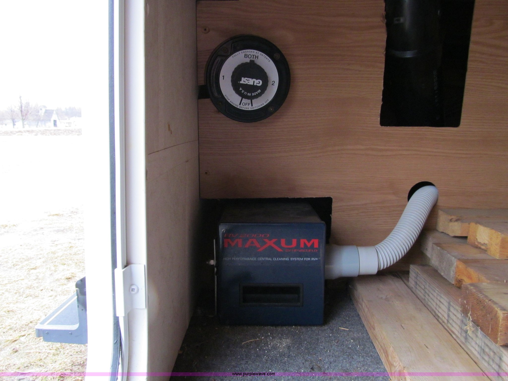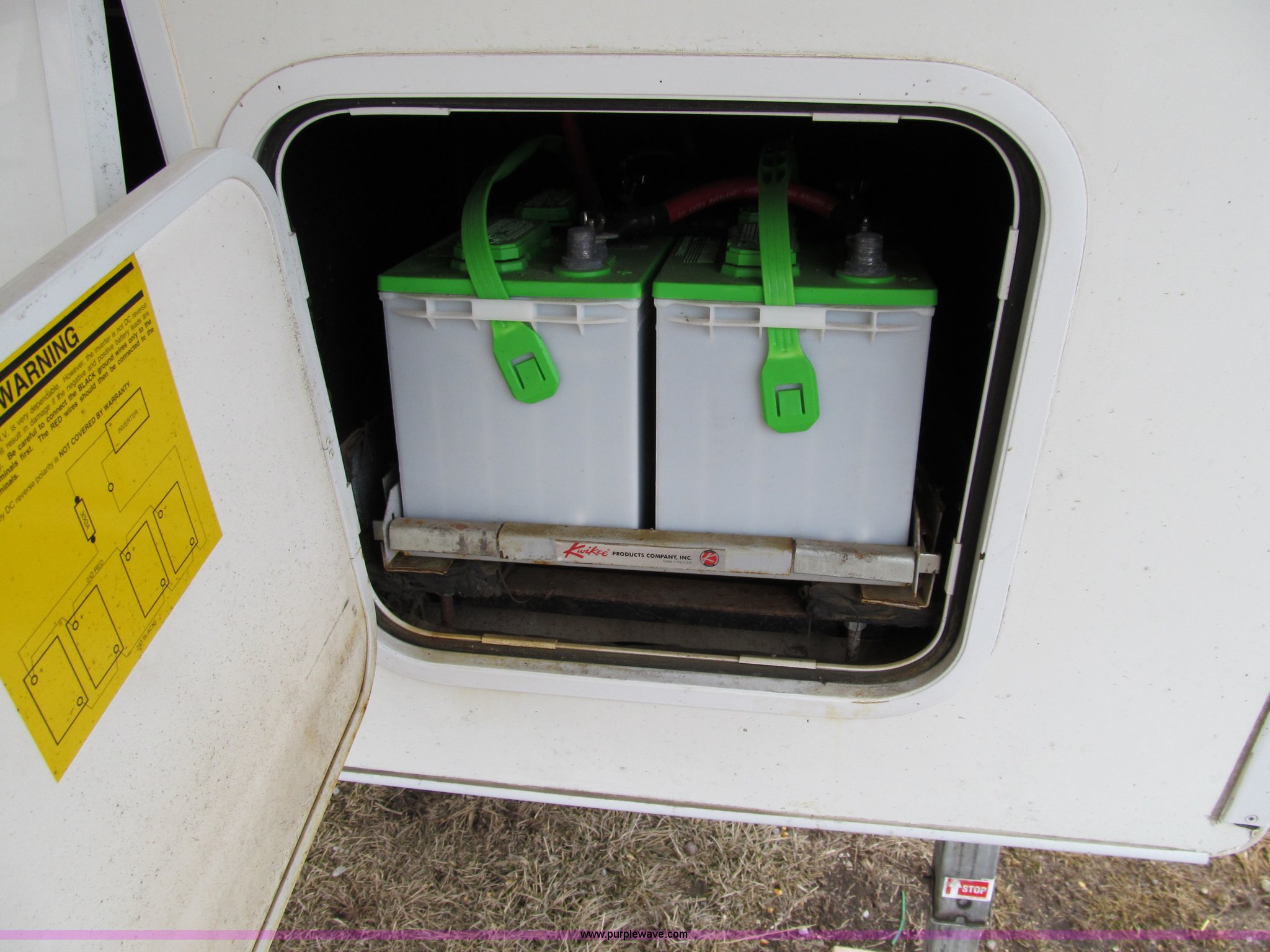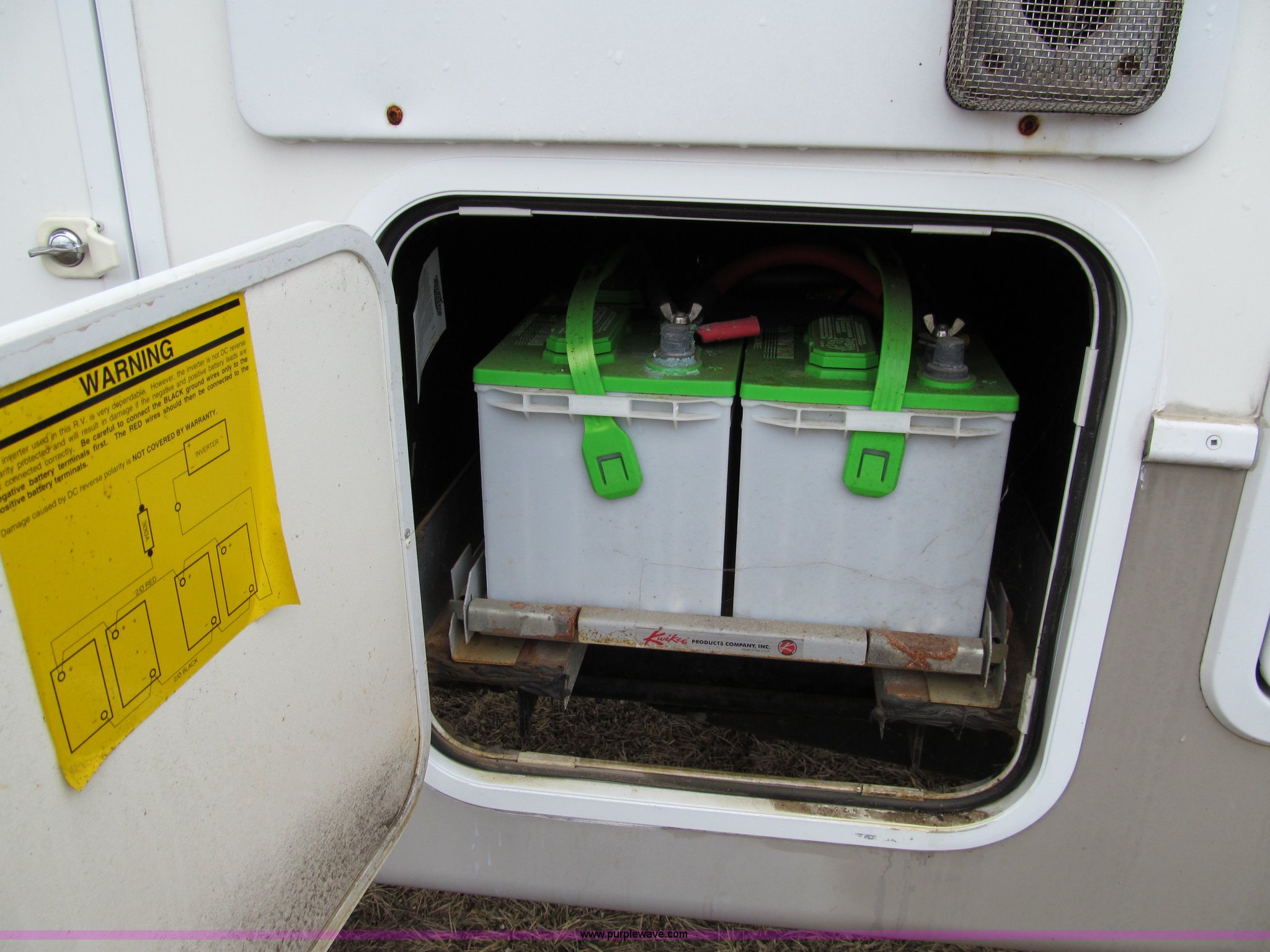 Purple Wave is selling a used RV in Iowa. This item is a 2002 Western Alpenlite Limited 36RL fifth wheel camper with the following: Tandem axle, Dinette with four chairs, Sofa, converts to bed, (2) recliner chairs, Desk, Entertainment center, 27" television, Stereo, DVD/CD player, Disc changer, 50 amp service with 30 amp cord, AC and furnace, Central vacuum, Three burner stove with oven, Microwave, Royal refrigerator/freezer, Center vanity with shower, Side aisle toilet, Kenmore stackable washer/dryer, Queen bed, 19" television, damaged, Front closet, Electric front stabilizer jacks, A&E 17' awning, (4) 6v batteries, (2) propane tanks, Rear ladder, Battery disconnect, Spare wheel and tire, Goodyear LT235/85R16 tires, 8 bolt rims