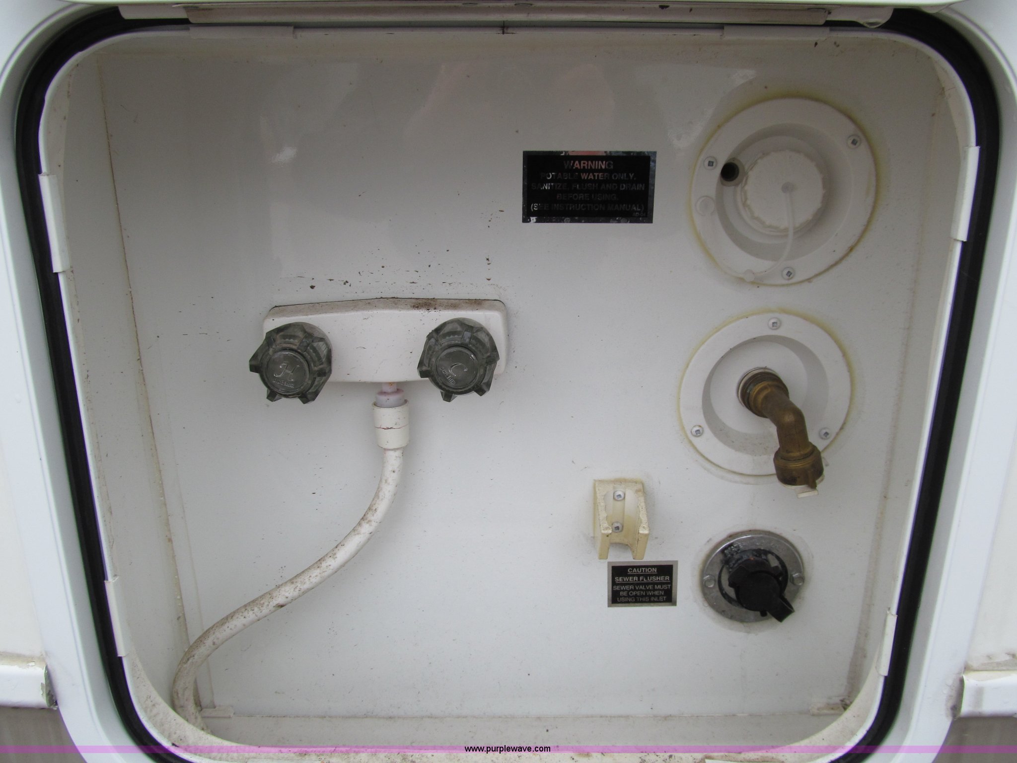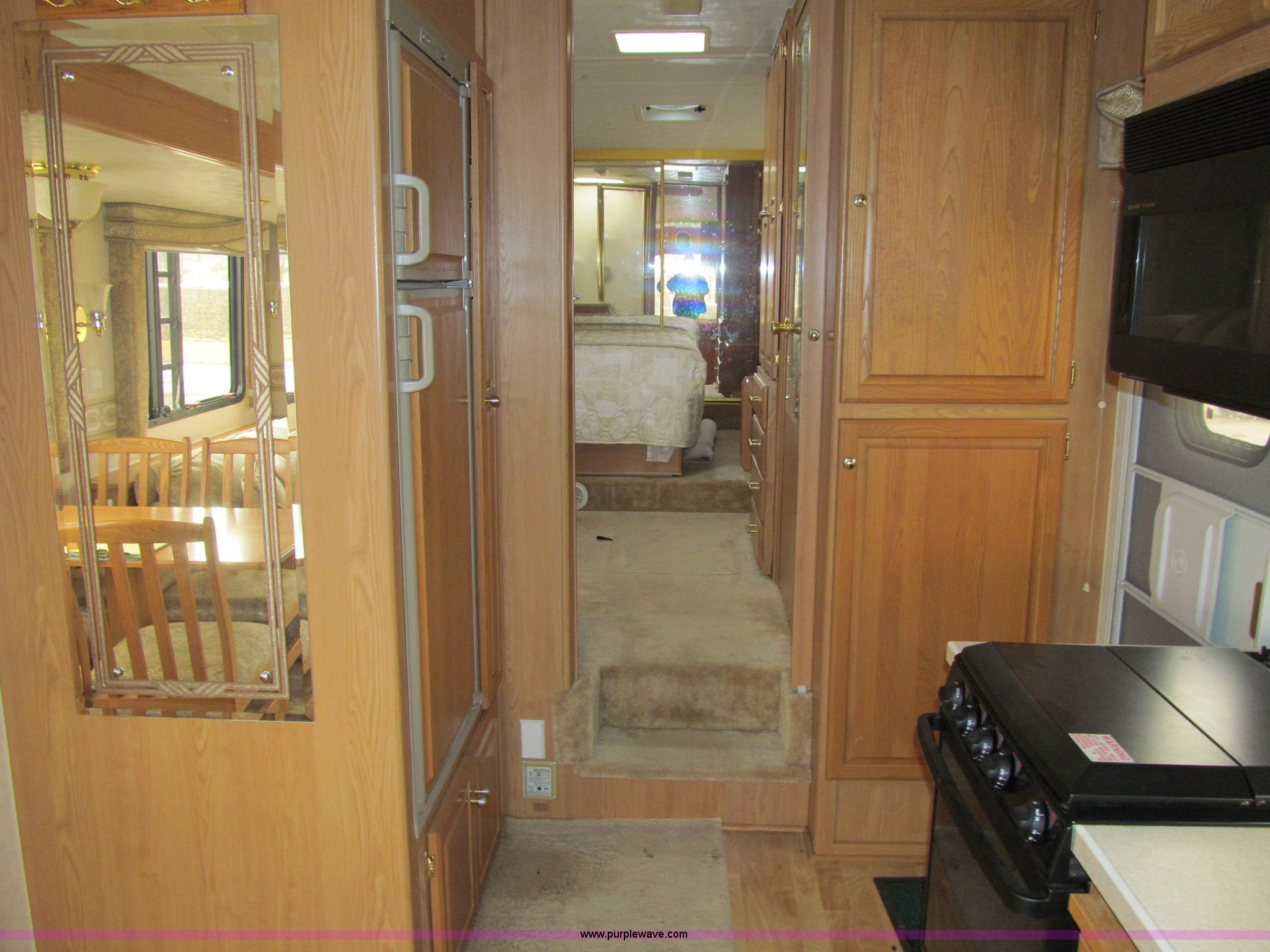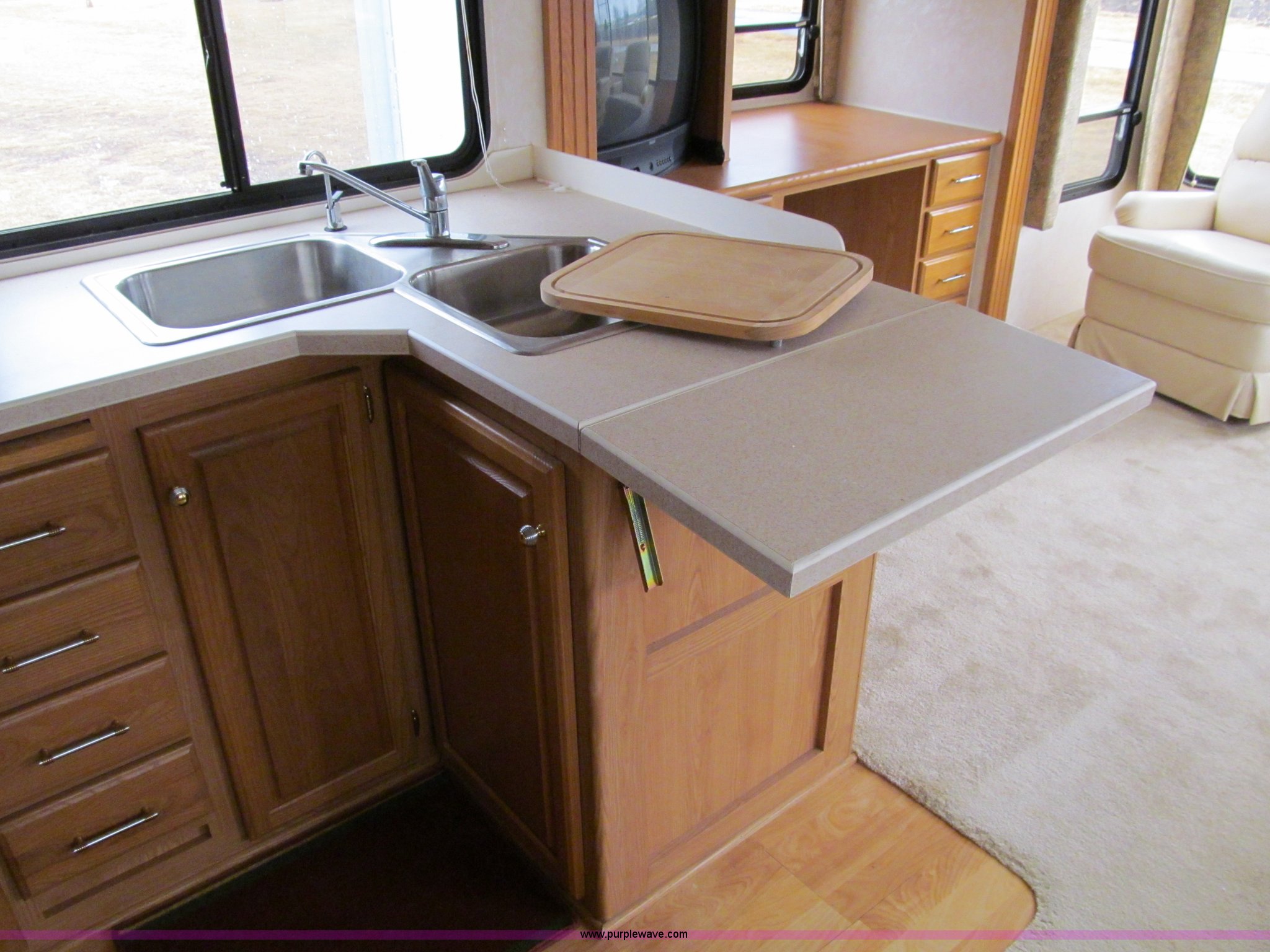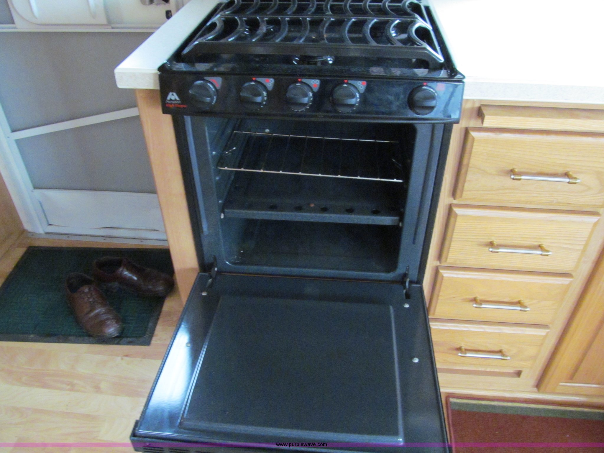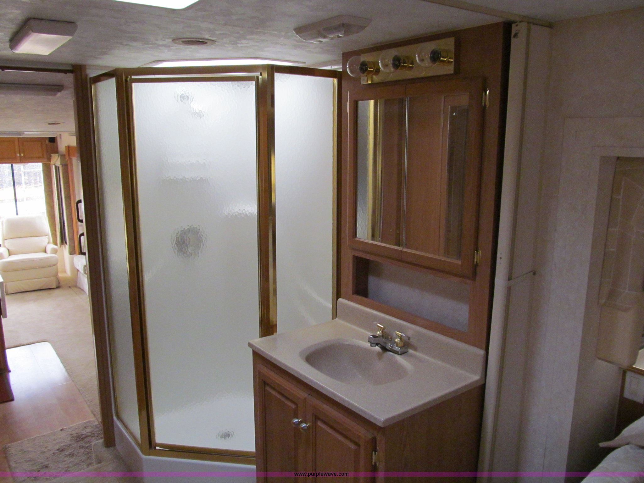 Purple Wave is selling a used RV in Iowa. This item is a 2002 Western Alpenlite Limited 36RL fifth wheel camper with the following: Tandem axle, Dinette with four chairs, Sofa, converts to bed, (2) recliner chairs, Desk, Entertainment center, 27" television, Stereo, DVD/CD player, Disc changer, 50 amp service with 30 amp cord, AC and furnace, Central vacuum, Three burner stove with oven, Microwave, Royal refrigerator/freezer, Center vanity with shower, Side aisle toilet, Kenmore stackable washer/dryer, Queen bed, 19" television, damaged, Front closet, Electric front stabilizer jacks, A&E 17' awning, (4) 6v batteries, (2) propane tanks, Rear ladder, Battery disconnect, Spare wheel and tire, Goodyear LT235/85R16 tires, 8 bolt rims