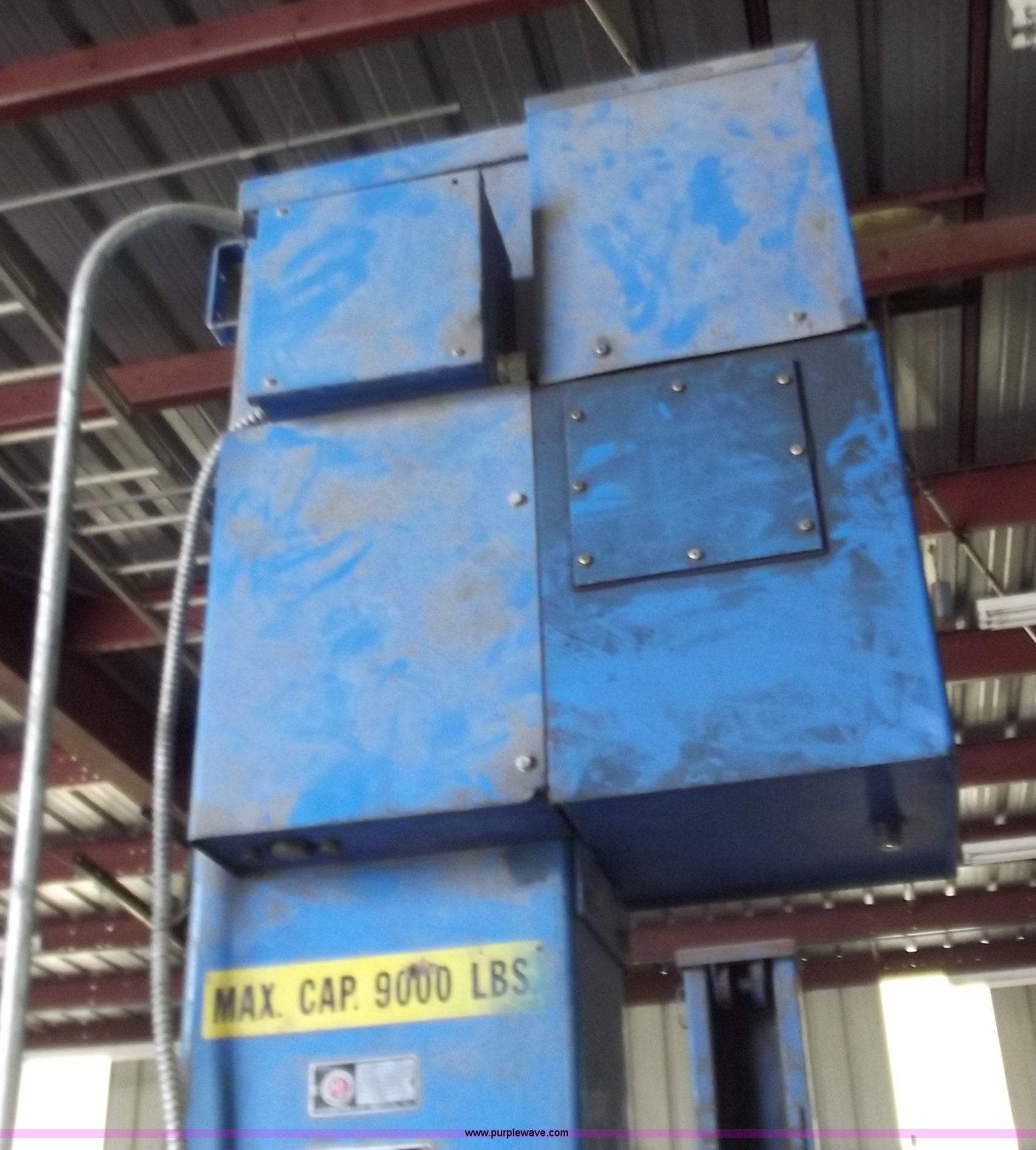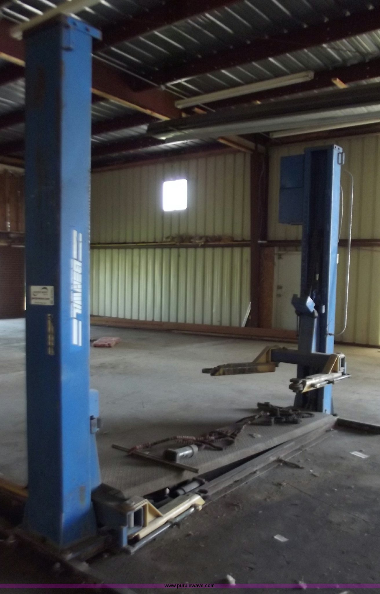 Purple Wave is selling a used Tools in Missouri. This item is a Two post car lift with the following: 9,000 lb lift capacity, Hydraulic over electric, Model TP-9, Will need removed from building, Seller will assist with removal, Serial 1501