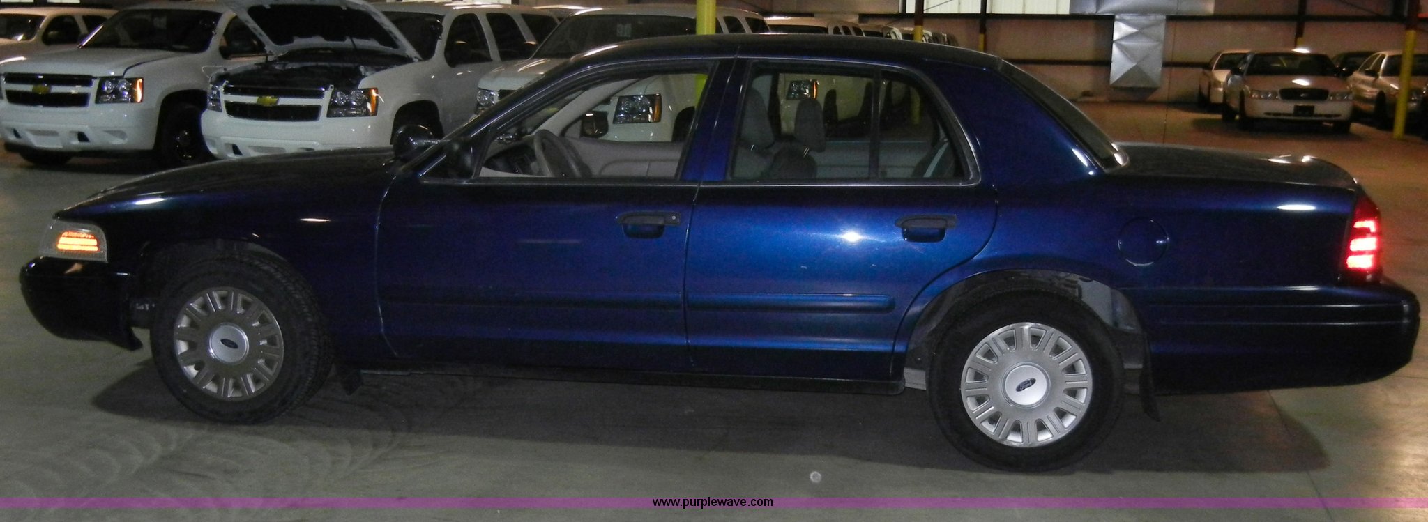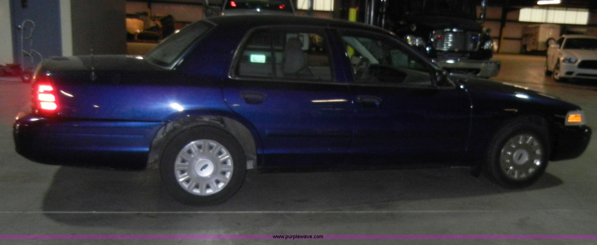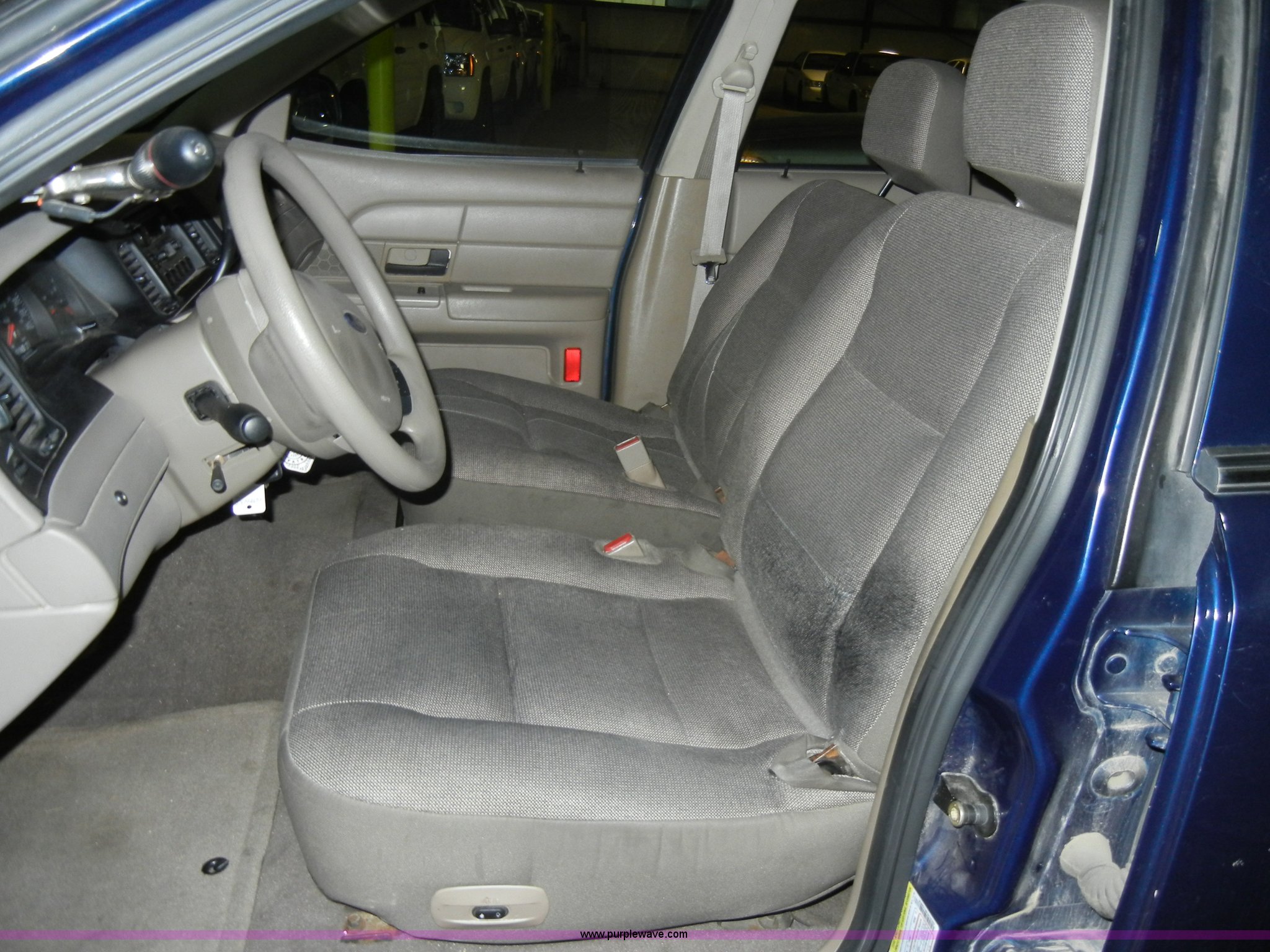 Purple Wave is selling a used Passenger Vehicle in Kansas. This item is a 2005 Ford Crown Victoria Police Interceptor with the following: 100,947 miles on odometer, 4.6L V8 SOHC 16V, Automatic transmission, AC and heat, Tilt steering wheel, Cruise control, AM/FM radio, Power windows, locks, mirrors, and seat, Cloth interior, 225/60R16 tires