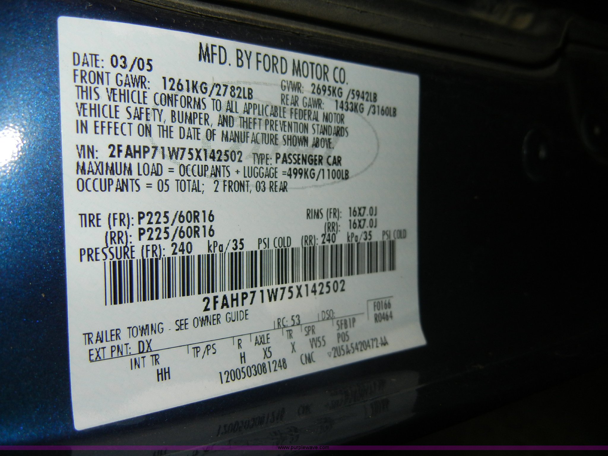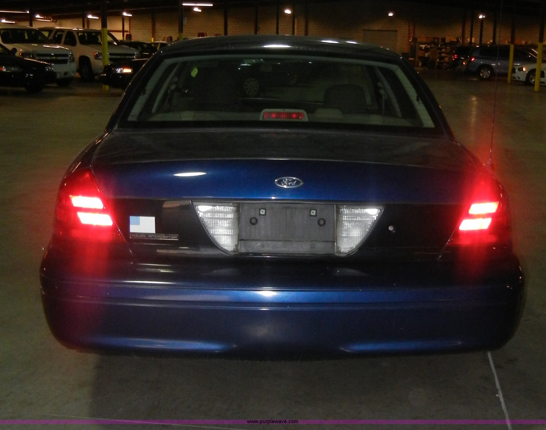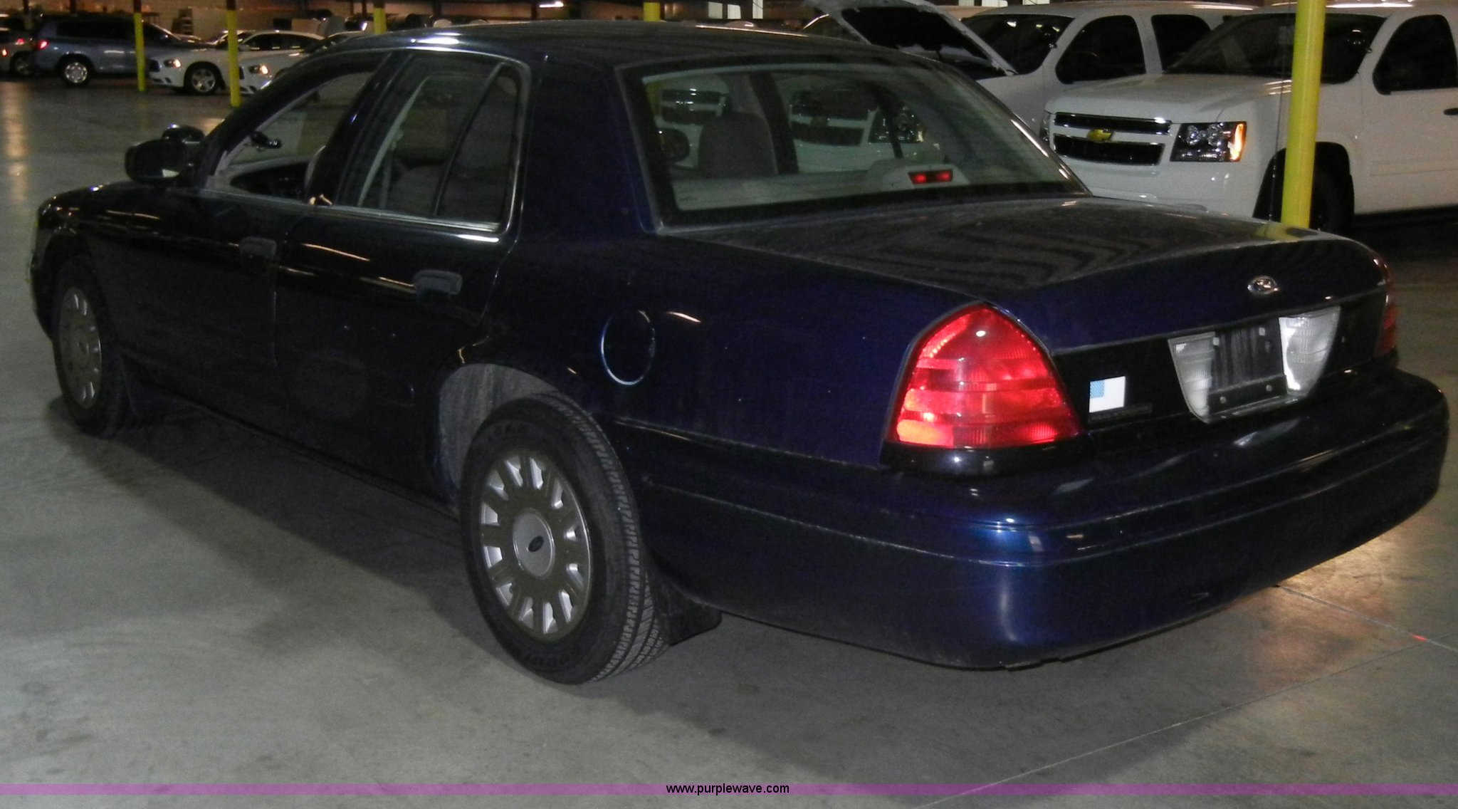 Purple Wave is selling a used Passenger Vehicle in Kansas. This item is a 2005 Ford Crown Victoria Police Interceptor with the following: 100,947 miles on odometer, 4.6L V8 SOHC 16V, Automatic transmission, AC and heat, Tilt steering wheel, Cruise control, AM/FM radio, Power windows, locks, mirrors, and seat, Cloth interior, 225/60R16 tires