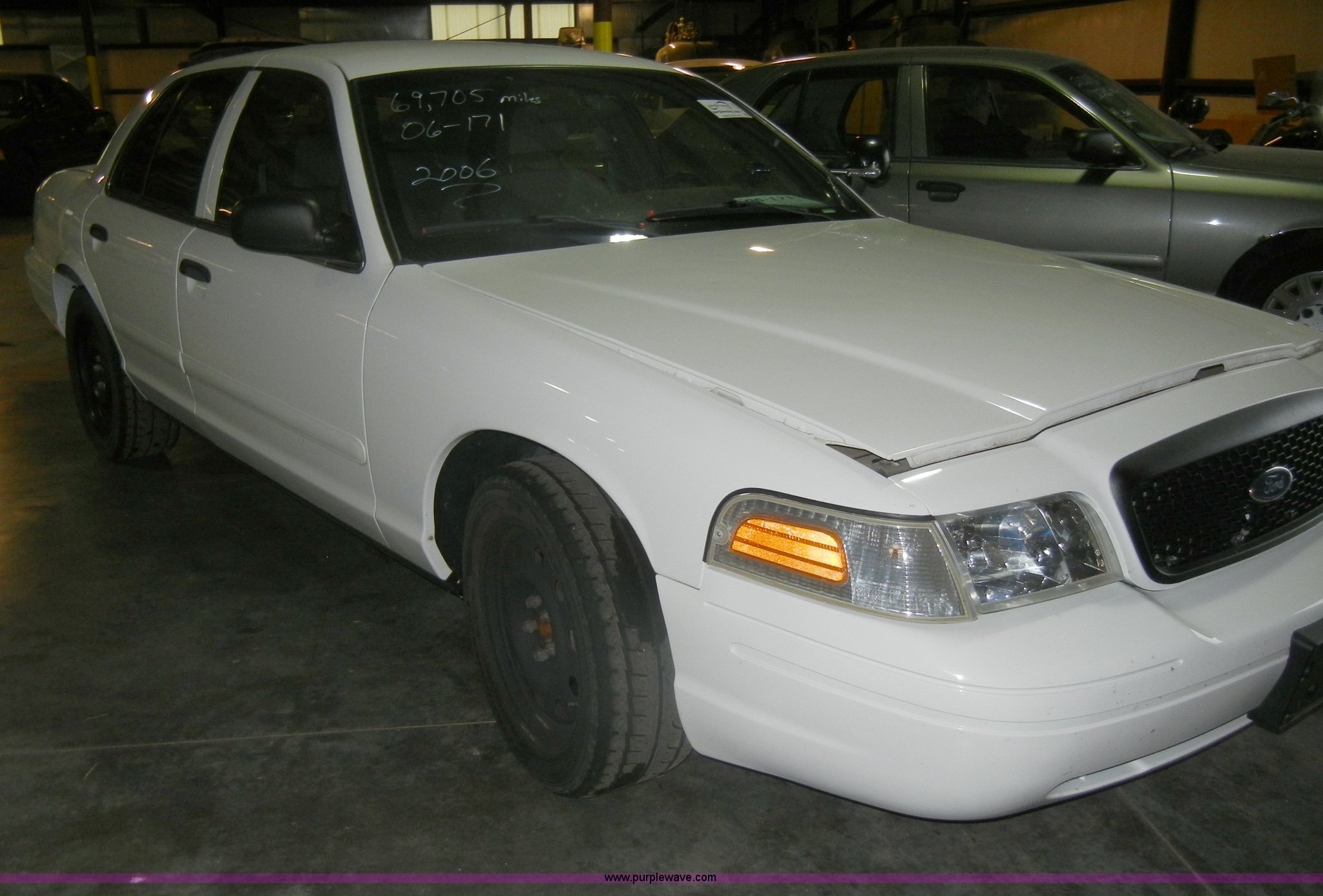 Purple Wave is selling a used Passenger Vehicle in Kansas. This item is a 2006 Ford Crown Victoria Police Interceptor with the following: 69,705 miles on odometer, 4.6L V8 SOHC 16V, Automatic transmission, AC and heat, Tilt steering wheel, Cruise control, AM/FM radio, Power windows, locks, mirrors, and seats, 225/60R16 tires
