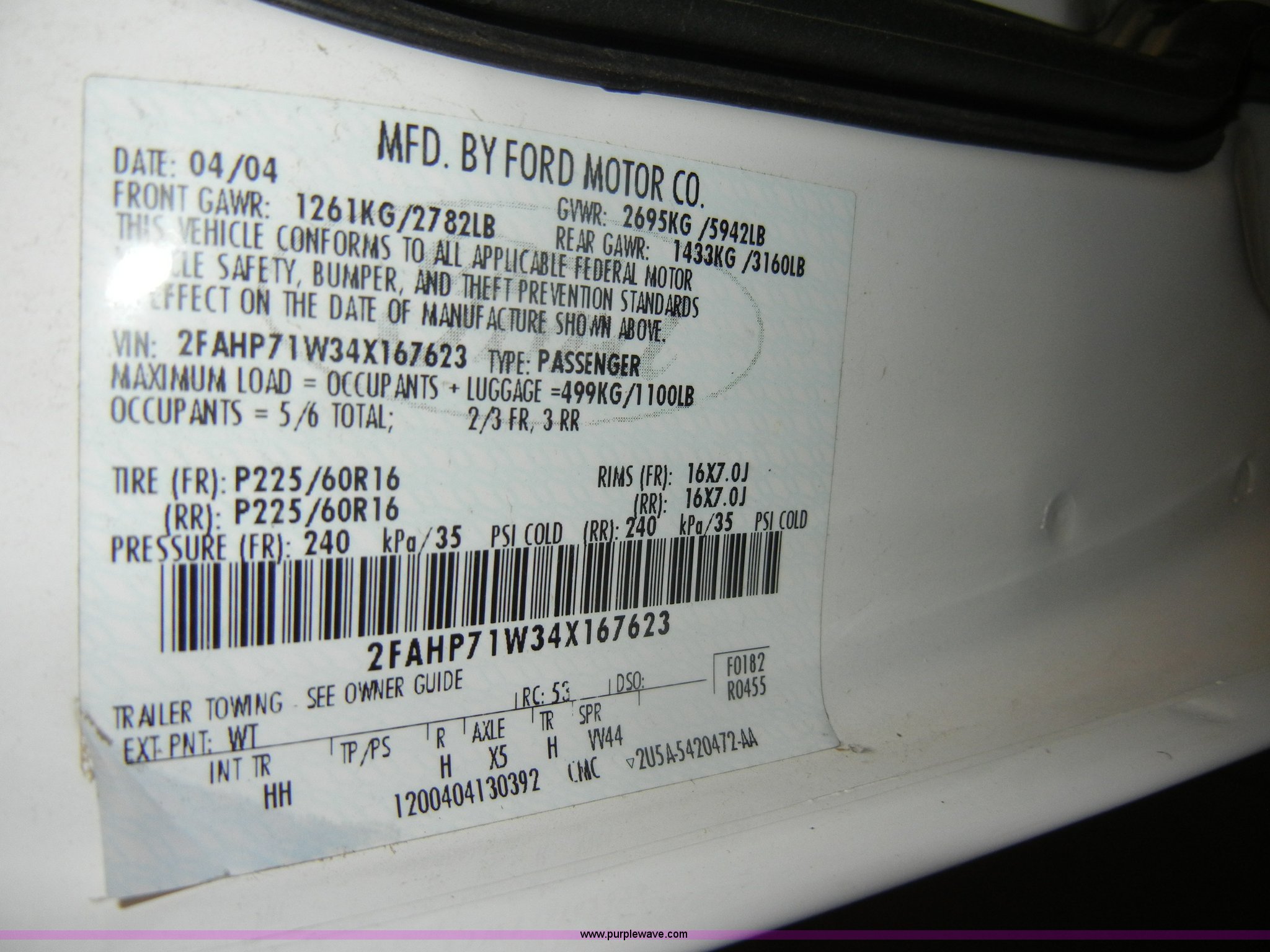 Purple Wave is selling a used Passenger Vehicle in Kansas. This item is a 2004 Ford Crown Victoria Police Interceptor with the following: 99,695 miles on odometer, 4.6L V8 SOHC 16V, Automatic transmission, AC and heat, Tilt steering wheel, Cruise control, AM/FM radio, Power windows, locks, mirrors, and seat, Cloth interior, 225/60R16 tires, Interior/exterior cosmetic damage, Body rust, Dead battery