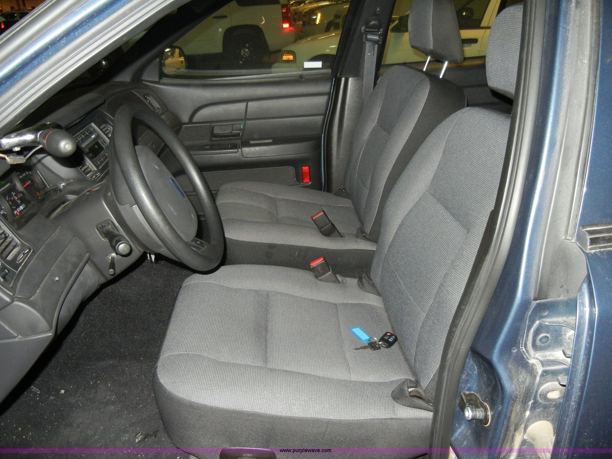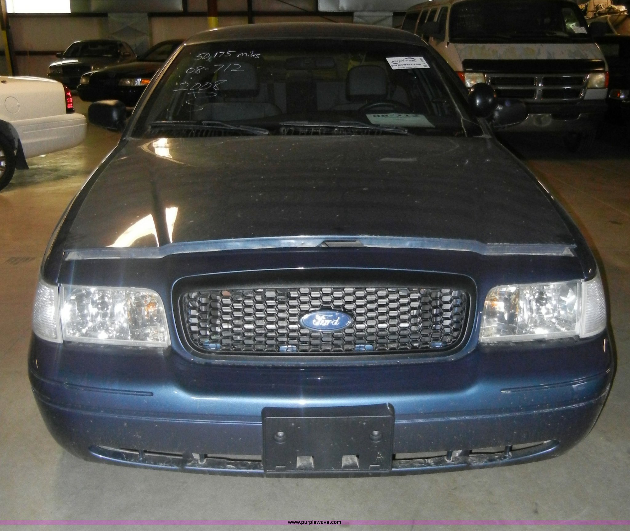 Purple Wave is selling a used Passenger Vehicle in Kansas. This item is a 2008 Ford Crown Victoria Police Interceptor with the following: 50,217 miles on odometer, 4.6L V8 SOHC 16V FFV, Automatic transmission, AC and heat, Tilt steering wheel, Cruise control, AM/FM/CD player, Power windows, locks, mirrors, and seats, Cloth interior, 235/55ZR17 tires, Hail damage, Low tire pressure light on