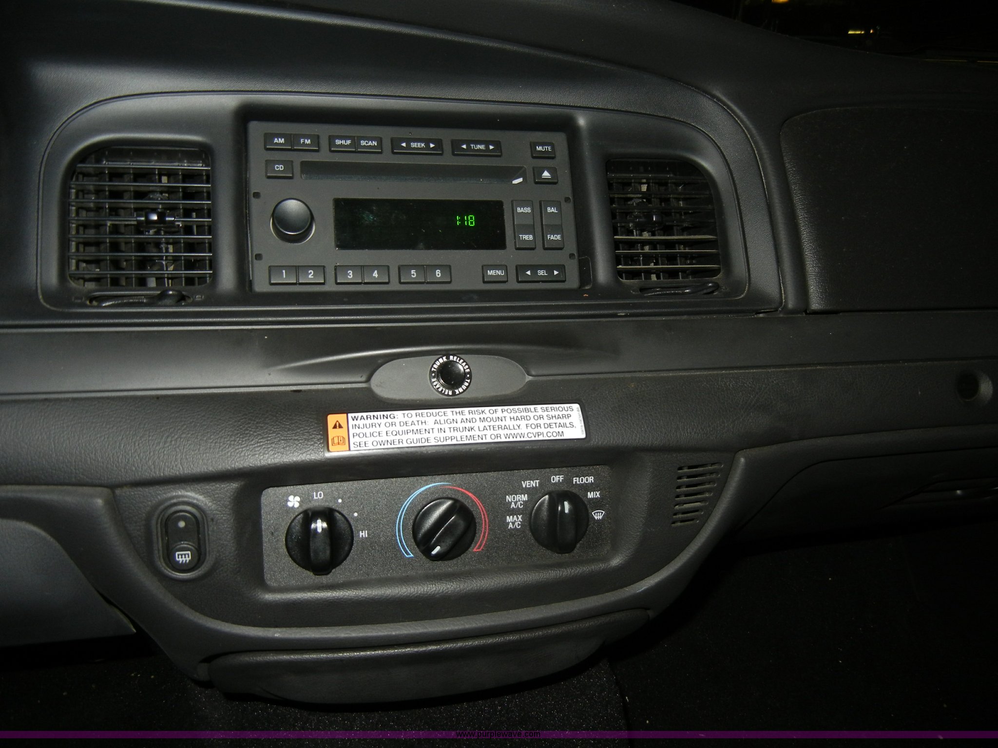 2008 Ford Crown Victoria Police Interceptor. 50,217 miles on odometer, 4.6L V8 SOHC 16V FFV, Automatic transmission, AC and heat, Tilt steering wheel, Cruise control, AM/FM/CD player, Power windows, locks, mirrors, and seats, Cloth interior, 235/55ZR17 tires, Hail damage, Low tire pressure light on. 2FAHP71V38X128981. Shipping quotes available. Kansas Highway Patrol Fleet. 930 NE Strait Ave. Topeka, KS 66616