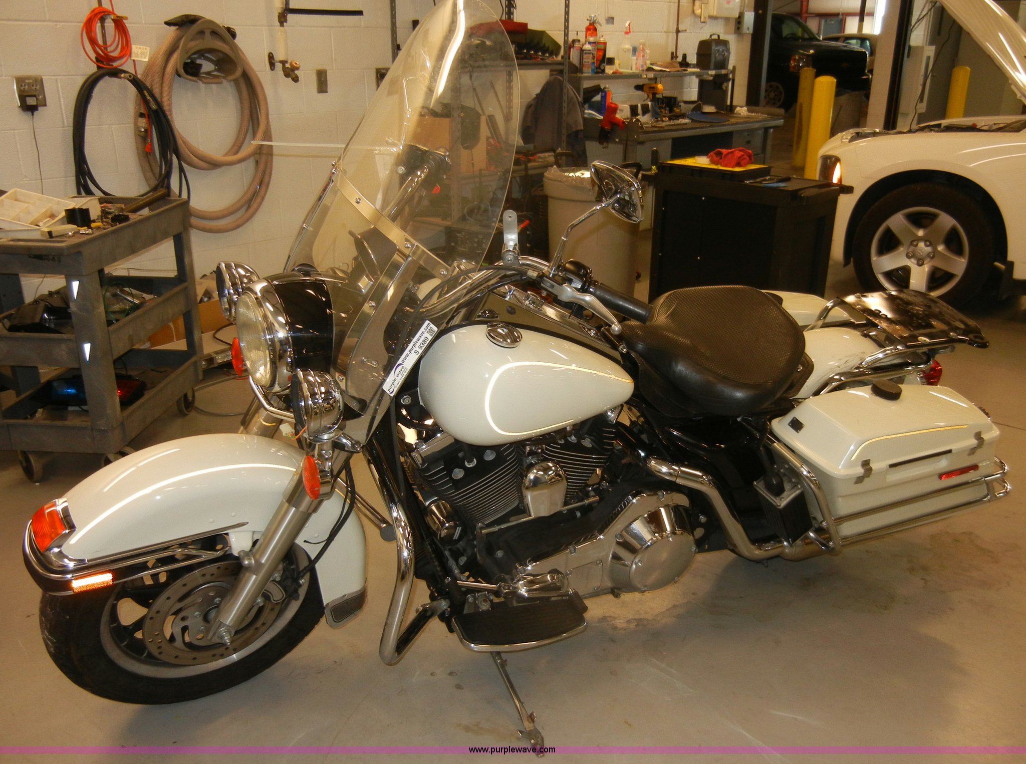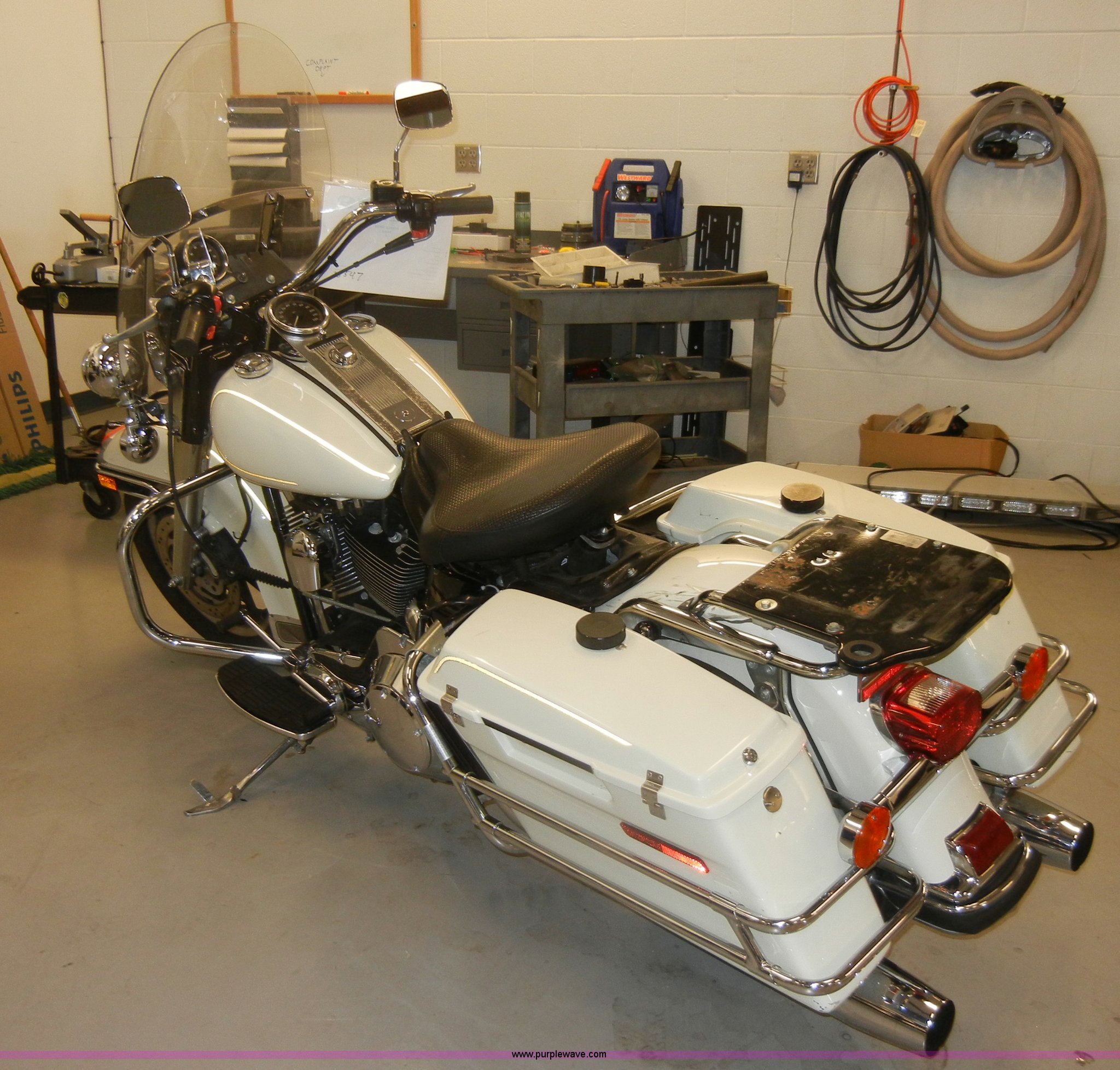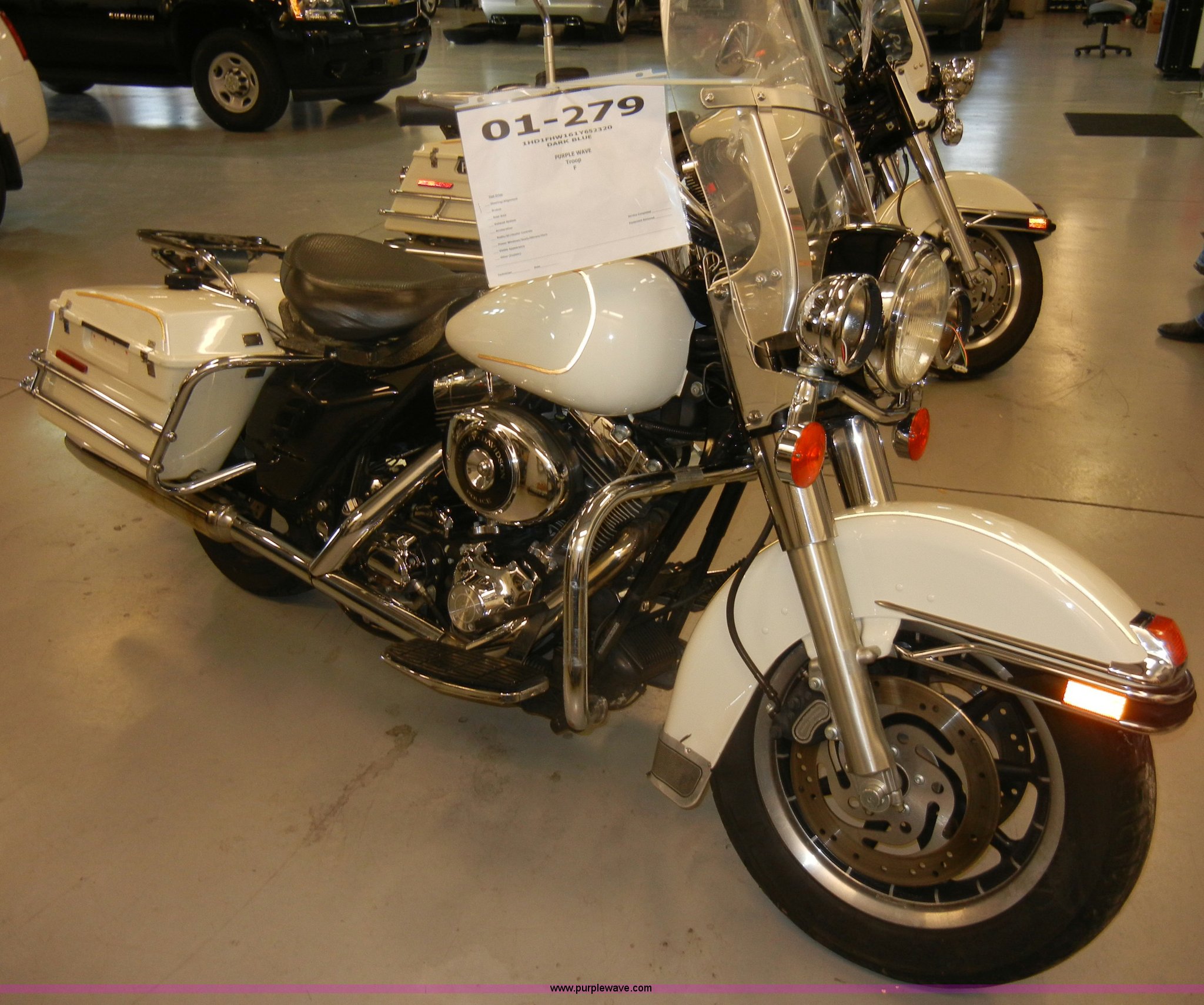 Take a look at this used 2001 Harley-Davidson FLHPI Road King Police motorcycle being sold on April 19th, 2012 in the SOLD! April 19 Kansas Highway Patrol Auction made by Harley-Davidson. Take a look at all of the item information below or take a look at similar auctions for Motorcycles.