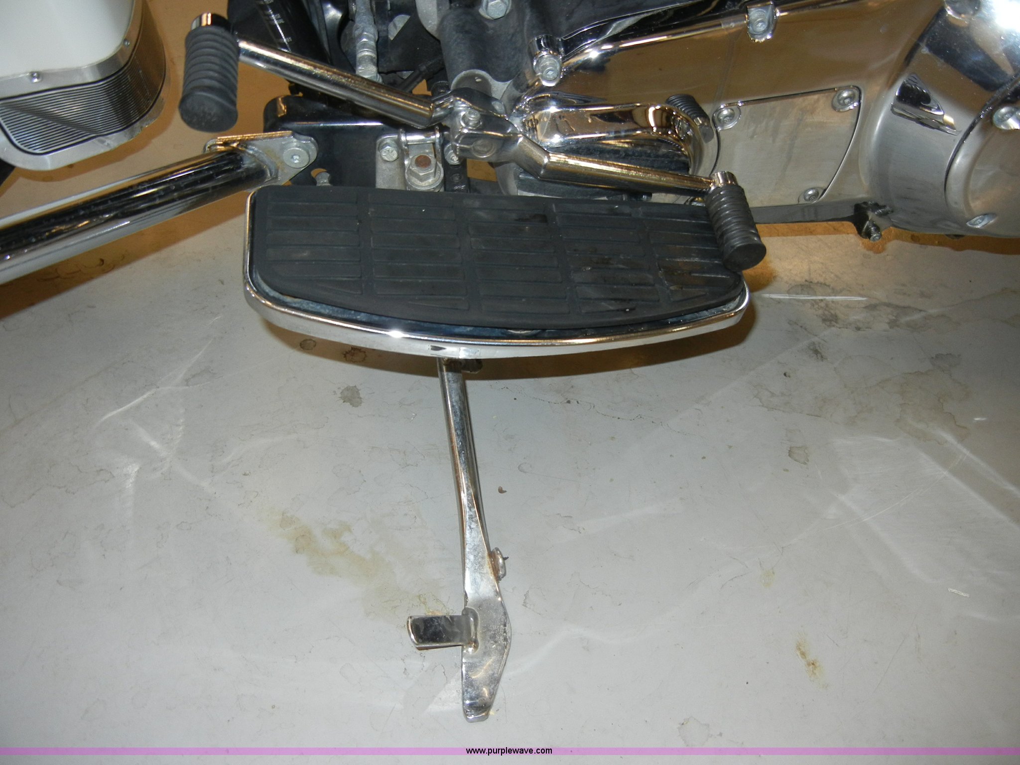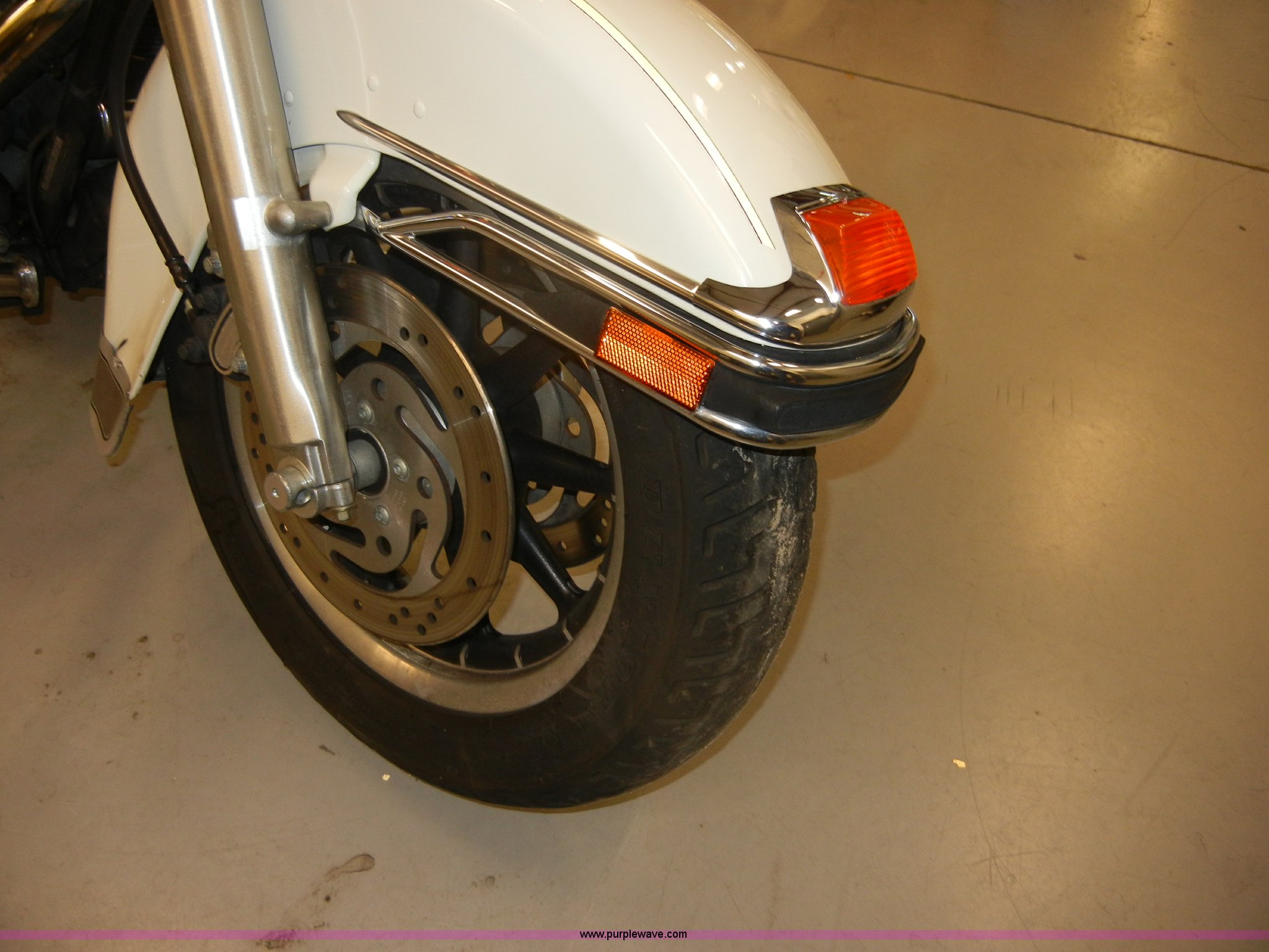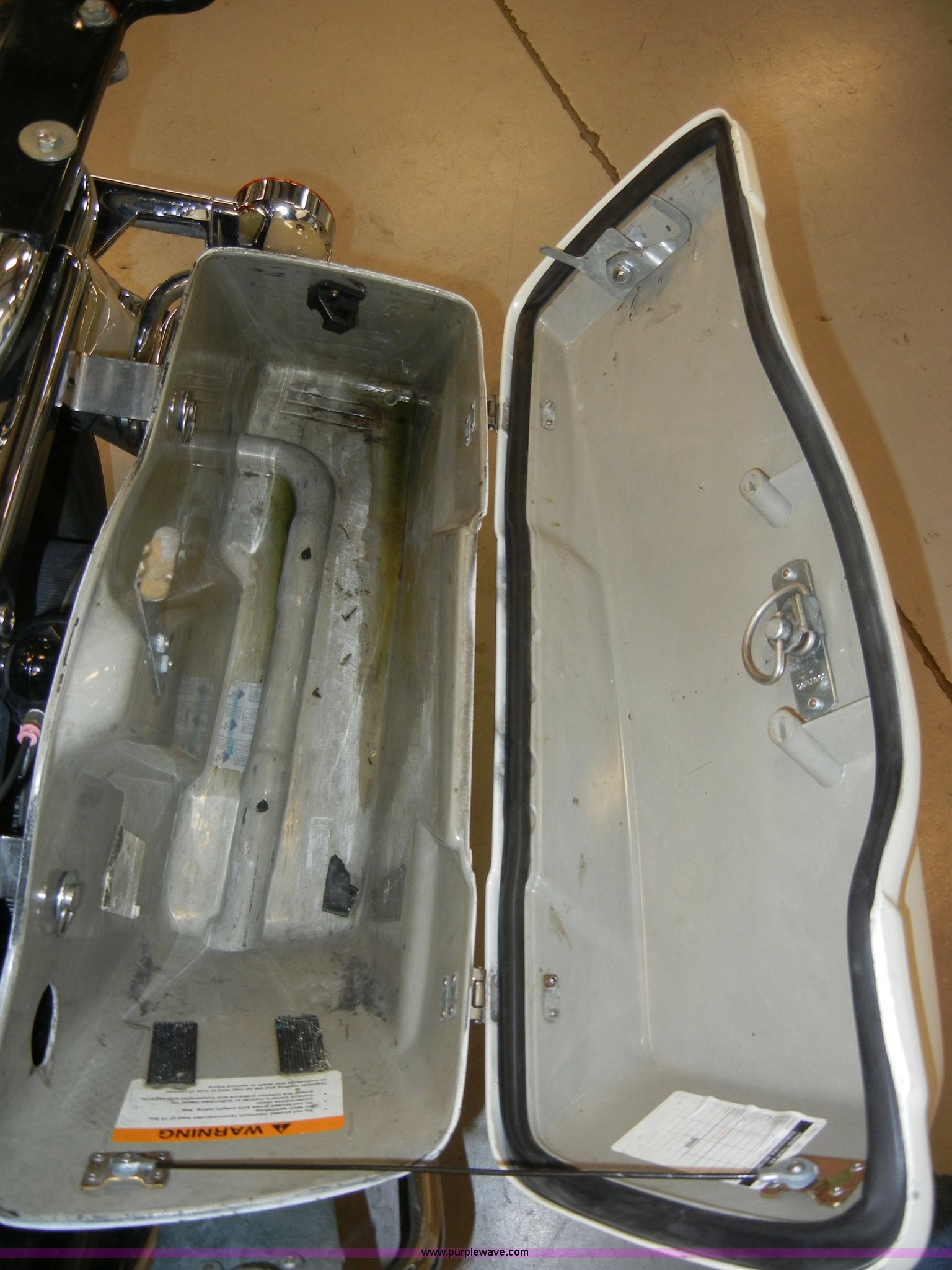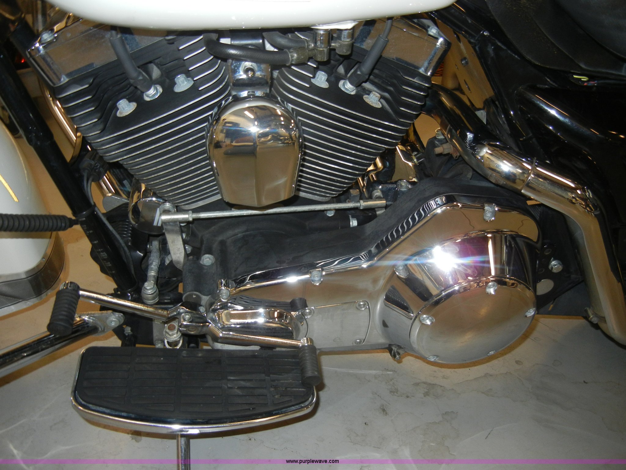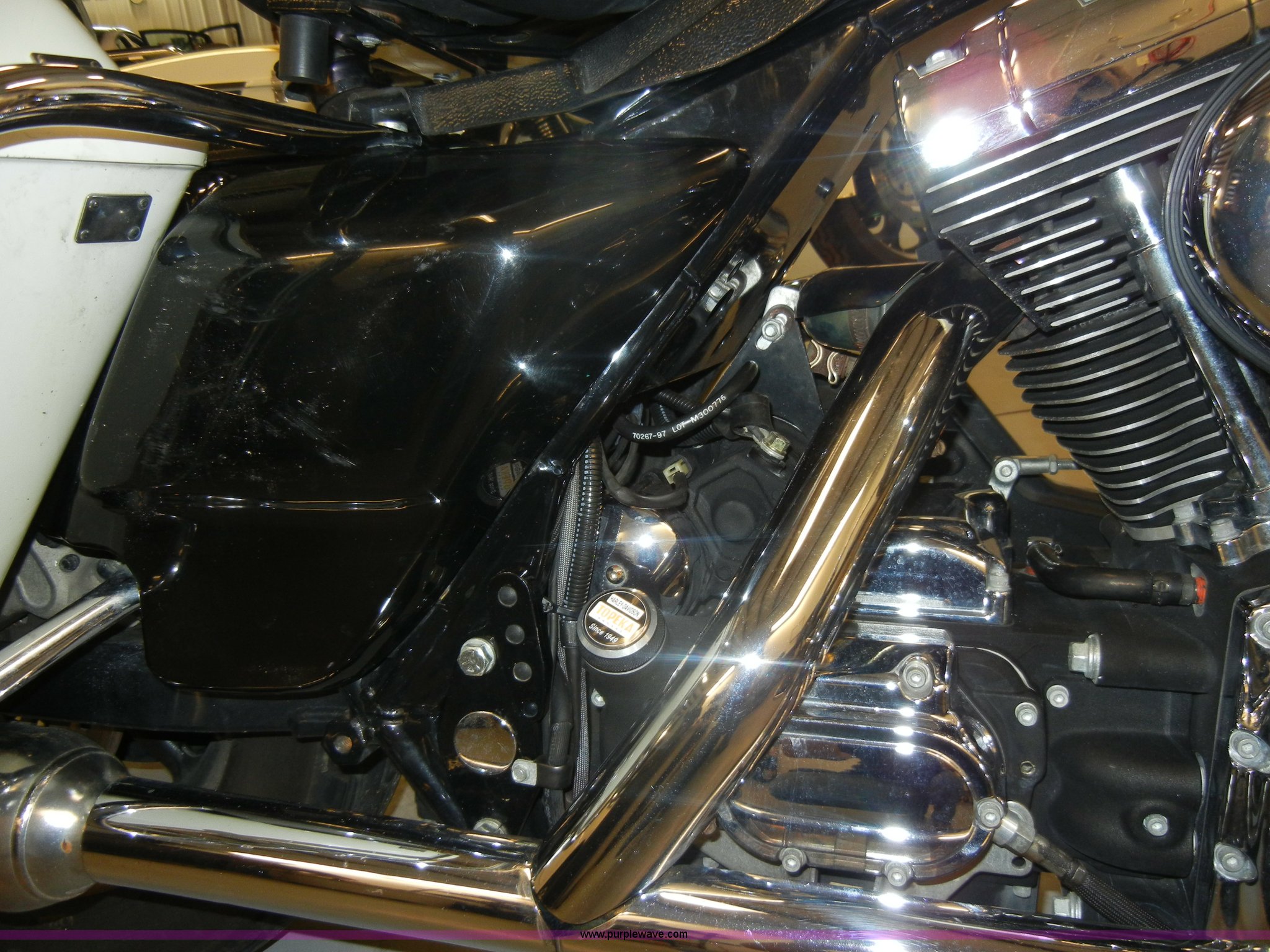 Purple Wave is selling a used Motorcycle in Kansas. This item is a 2001 Harley-Davidson FLHPI Road King Police motorcycle with the following: 36,547 miles on odometer, 1450CC twin cam engine, Saddle bag guards, 90B16 tires, Recently replaced battery, Stripped down model, Front side headlamp covers missing, $300 damage to fuel tank in 11/06, Brakes replaced at 15,684 miles in 06/04, Maintenance records available