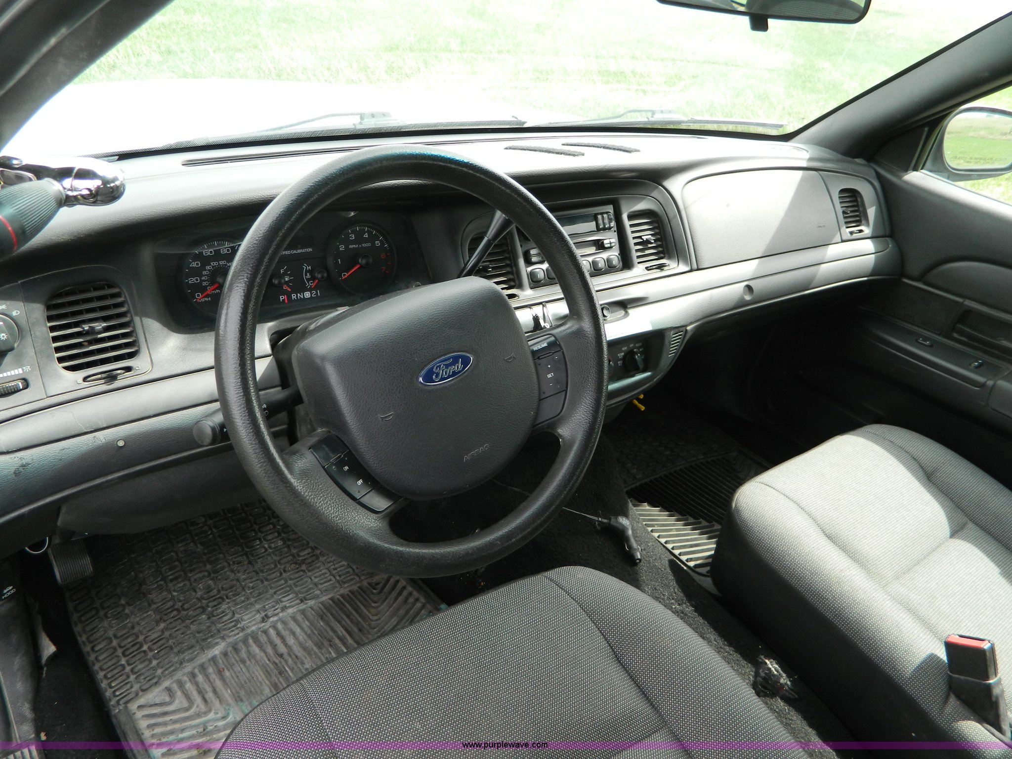 Purple Wave is selling a used Passenger Vehicle in Kansas. This item is a 2006 Ford Crown Victoria Police Interceptor with the following: 147,949 miles on odometer, 4.6L V8 EFI engine, Automatic transmission, AC and heat, Tilt, Cruise, AM/FM/Cassette, Power windows, locks, mirrors, and seats, Cloth interior, Spotlight, P235/55R17 tires, Interior/exterior cosmetic damage, Cracked windshield, Roof plug, Battery needs replaced, Passenger side fender damaged