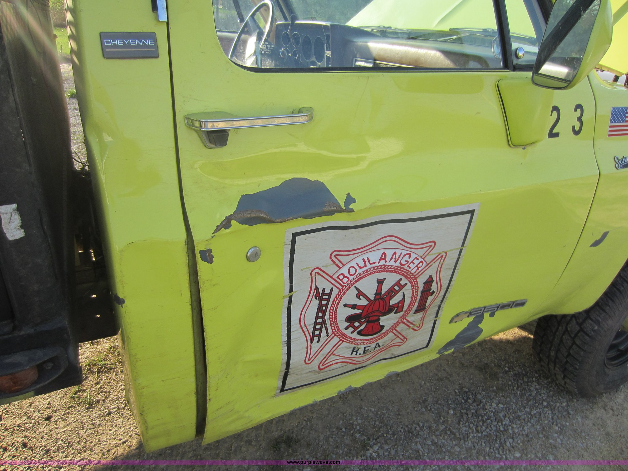 Purple Wave is selling a used Passenger Vehicle in Oklahoma. This item is a 1989 Chevrolet V3500 fire truck with the following: 7,386 miles on odometer, 350 5.7L V8 gas engine, Automatic transmission, Four wheel drive, Heater, AM/FM, Manual windows and locks, Vinyl interior, Light bar, Fog lights, Ramsey front mount 8,000 lb winch, Remote, Needs repair, Flatbed, 300 gallon poly tank, 2" inlet and outlet, 13 HP gas engine, Siren, Electric hose reel with 100' of 1" hose, 265/75R16 tires, Extra passenger door included, Unit# 23