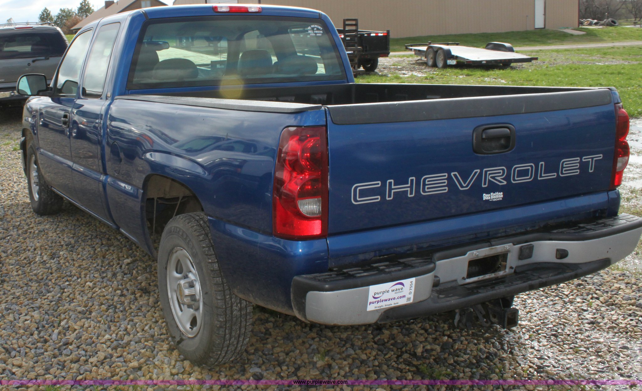 Purple Wave is selling a used 1/2 Ton Pickup or Van in Kansas. This item is a 2003 Chevrolet Silverado C1500 extended cab pickup truck with the following: 58,267 miles on odometer, 4.8L V8 SFI gas engine, Automatic transmission, AC and heat, Tilt, Cruise, AM/FM, Manual windows and locks, Vinyl interior, Front tow hooks, Bed liner, Receiver hitch, Trailer wiring, 235/75R16 tires, Bed scratched and dented, Equip# 3577