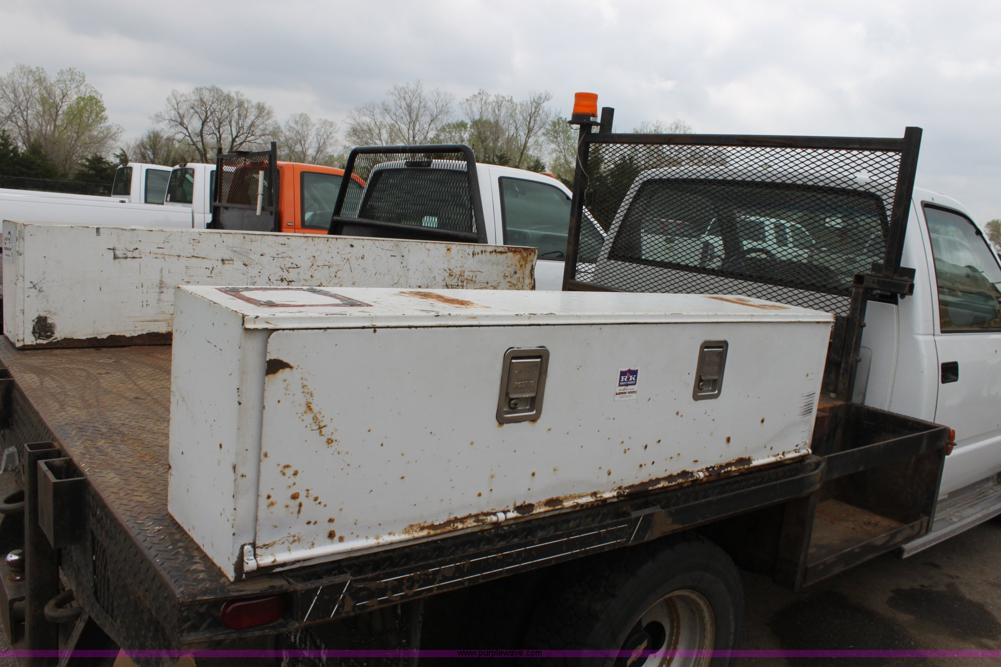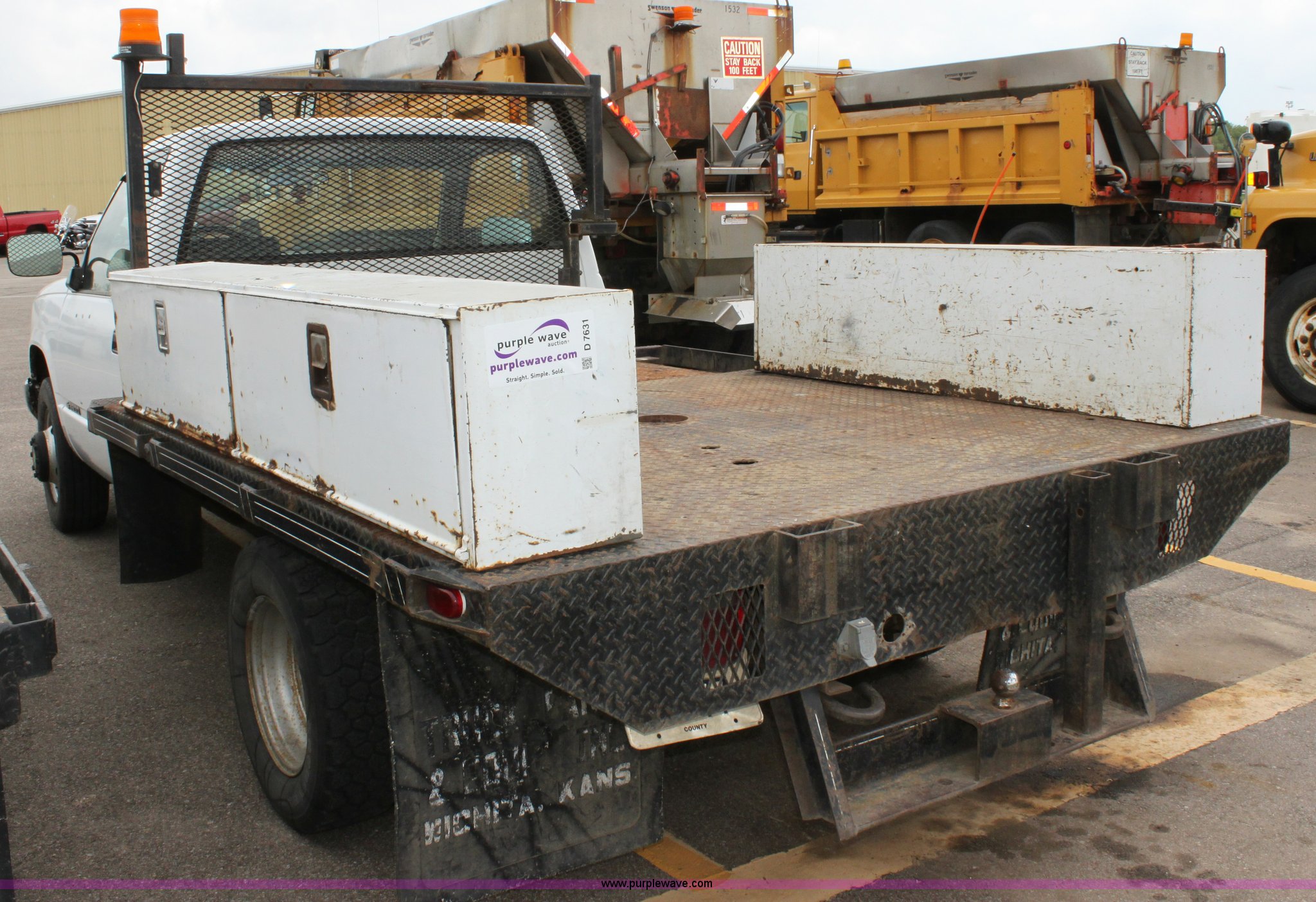 Purple Wave is selling a used Passenger Vehicle in Kansas. This item is a 1991 Chevrolet C3500 pickup truck with the following: 230,409 miles on odometer, 6.2L V8 diesel engine, Automatic transmission, AC and heat, AM/FM, Manual windows and locks, Vinyl interior, Step bars, Flatbed, (2) side toolboxes, Receiver hitch, Trailer wiring, 225/75R16 tires, Dent in hood, Equip# 425