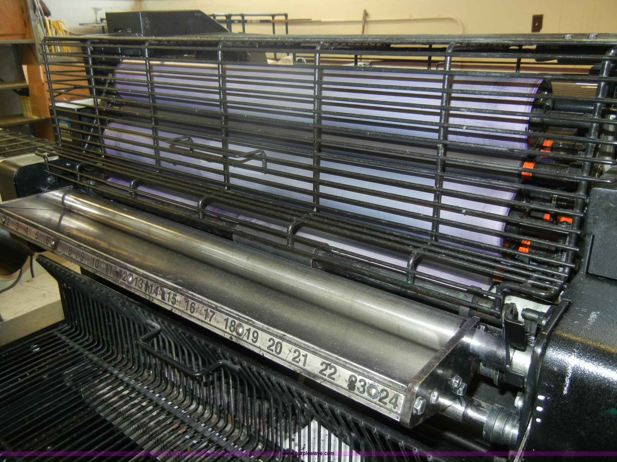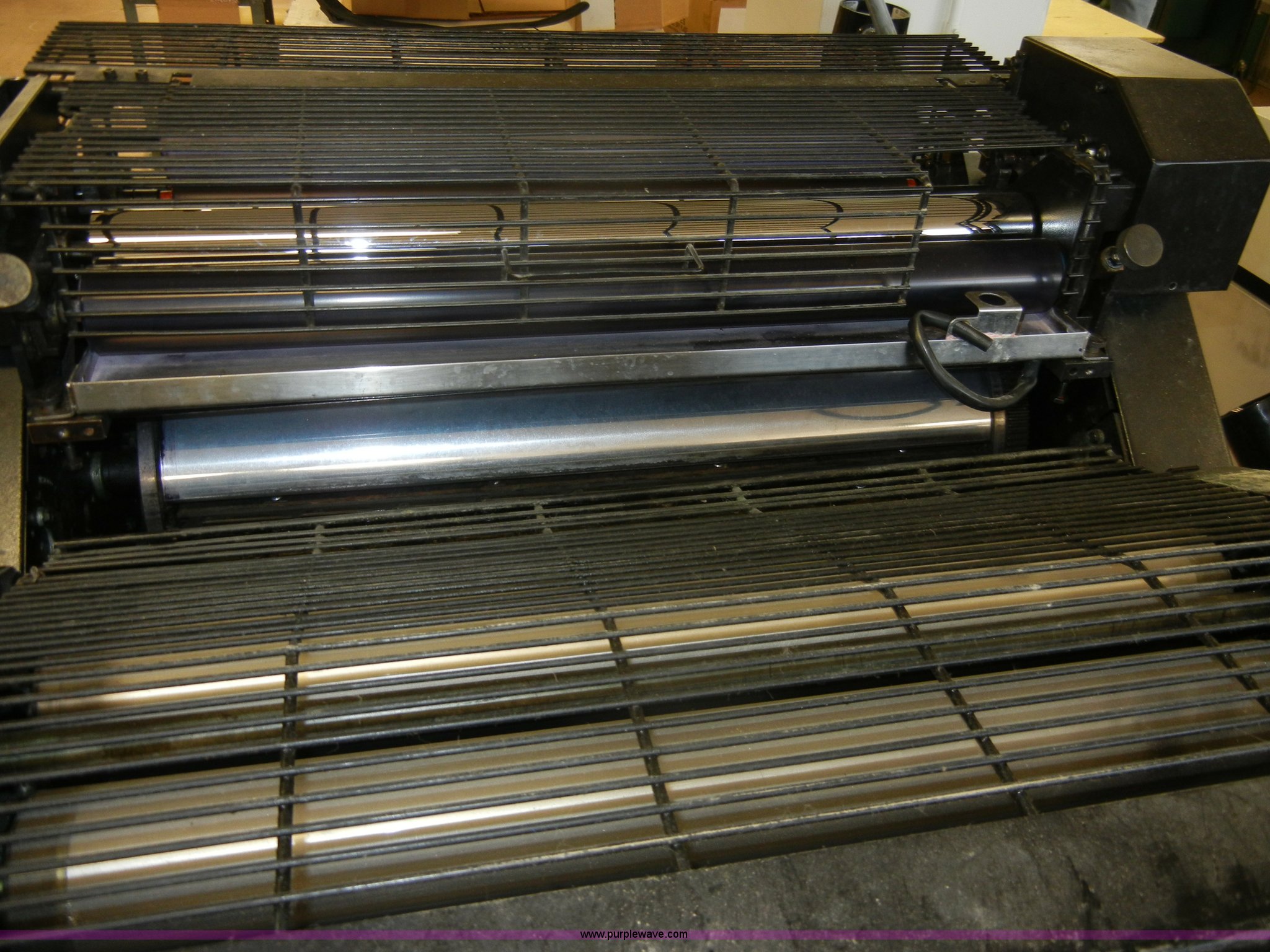 Purple Wave is selling a used Copy or Printing Machine in Kansas. This item is a 1991 AB Dick 9890D duplicator with T-head with the following: Dahlgren watering system, Primary head, One shift usage, Infrared and powder spray attachments, Conveyor belt, Strate Flo envelope feeder, Serial 4520
