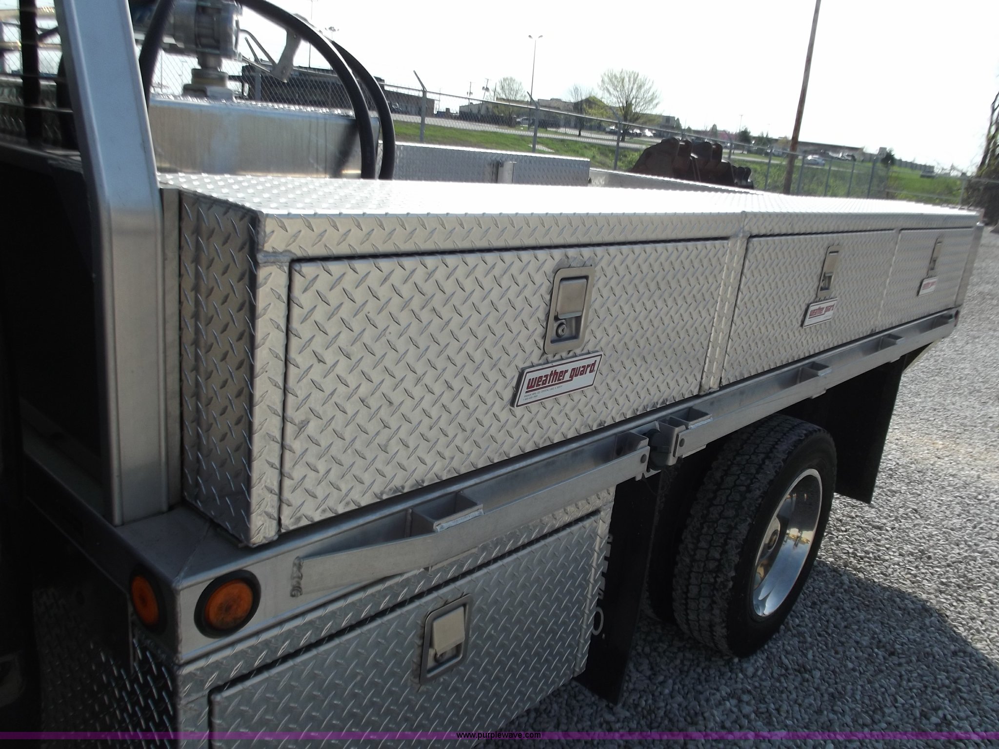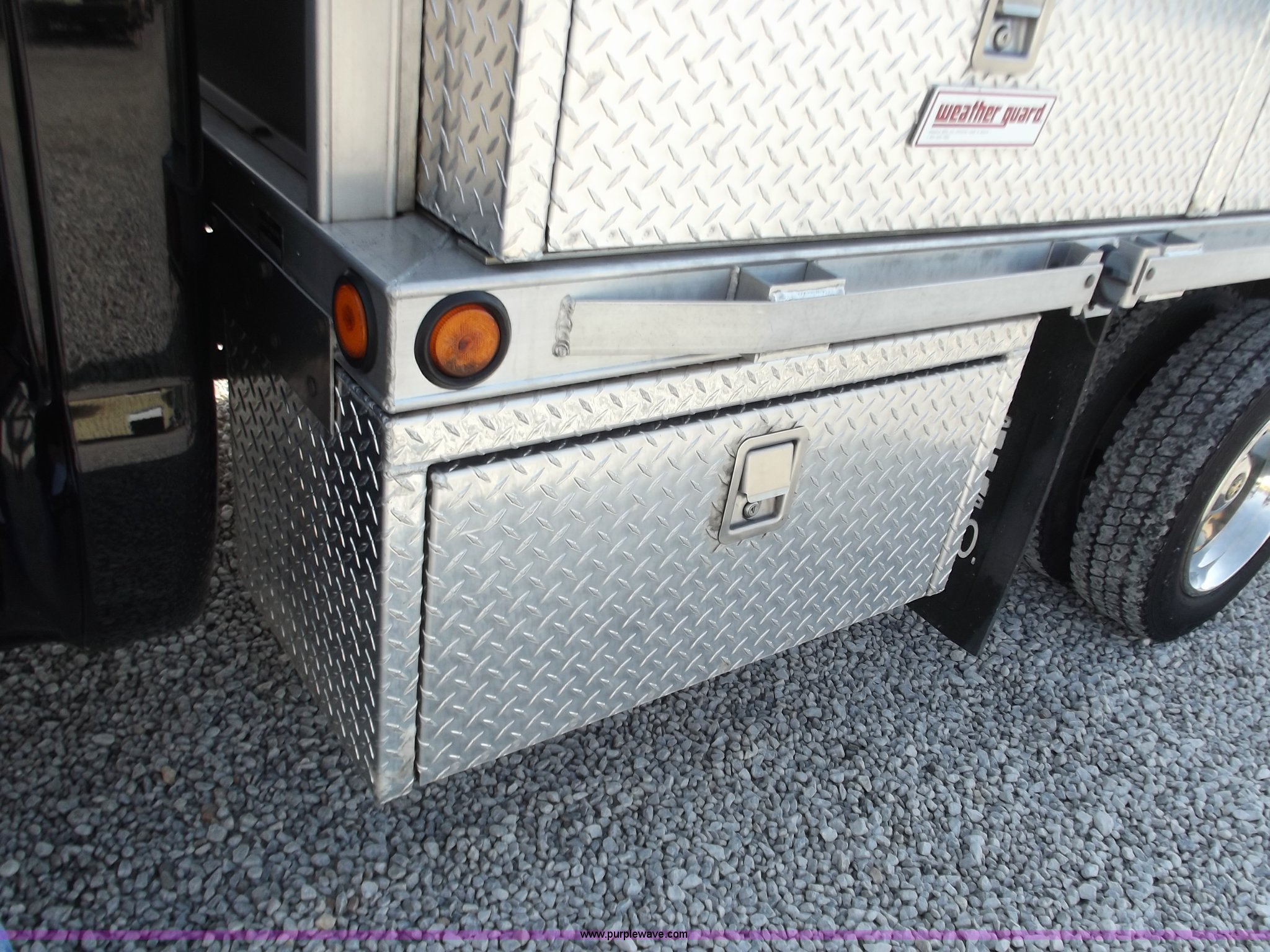 Purple Wave is selling a used Service Truck in Missouri. This item is a 1999 Ford F550 XLT Super Duty service truck with the following: 62,324 actual miles, Powerstroke 7.3L I8 diesel engine, Five speed manual transmission, AC and heat, Tilt, Cruise, AM/FM/Cassette, Power windows and mirrors, Heated mirrors, Cloth interior, Hillsboro Industries 2000 aluminum utility bed, 146"L x 97"W, Aluminum 100 gallon fuel tank, (8) Weatherguard aluminum toolboxes, Headache rack, Rub bars, Stake pockets, Front tow hooks, Receiver hitch, 2 5/16" ball hitch, (2) rear D-rings, Chrome wheels and lugs, 225/70R19.5 tires, 12 ply