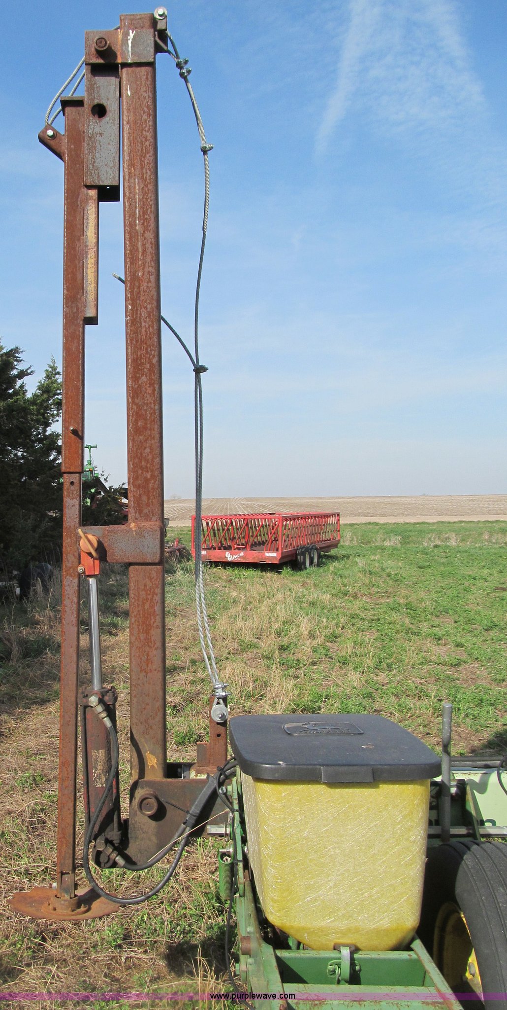 Purple Wave is selling a used Planter in Nebraska. This item is a John Deere 7100 12 row planter with the following: Approx. 30'W, 30" spacing, 7300 drive system, Orthman heavy duty bar, Orthman lift assist wheels, John Deere 250 monitor, Individual seed hoppers, Mechanical row meters, Ground driven, 12 finger pickups, Rebuilt by John Deere, less than 100 acres use, 12 radial John Deere bean, Extra down pressure springs, Orthman row opener row cleaners, Notched disk, Keeten seed firmers, S&I closing system, Updated gauge wheels, Liquid fertilizer, (2) 100 gallon tanks, Electric pump, Seed firmer application, Rear insecticide boxes used for storage, Some missing, Power Flo 5850-101E pump, Hydraulic markers, 17NJ male hydraulic fittings, Front adjustable jack stands, Three point hookup, Right marker cable will be replaced, (4) 7.60-15 tires, (2) 9.5L-15 transport tires, Tires worn