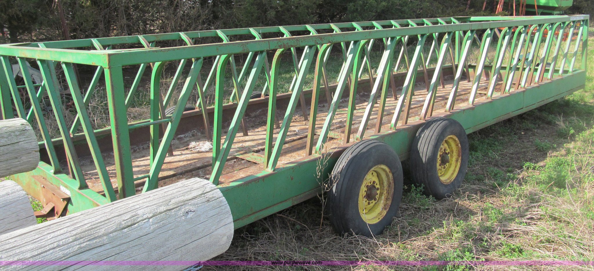 Purple Wave is selling a used Livestock Equip. in Nebraska. This item is a Phoenix FT24 portable hay trailer feeder wagon with the following: Tandem axle, 24'L, Rear hitch, Grated floor center for drainage, Standard pin hitch, Pin not included, 7.60-15 tires, 8 ply, P225/70R15 front tires, Steerable front axle, 7'11"W + tires, Serial 9612005