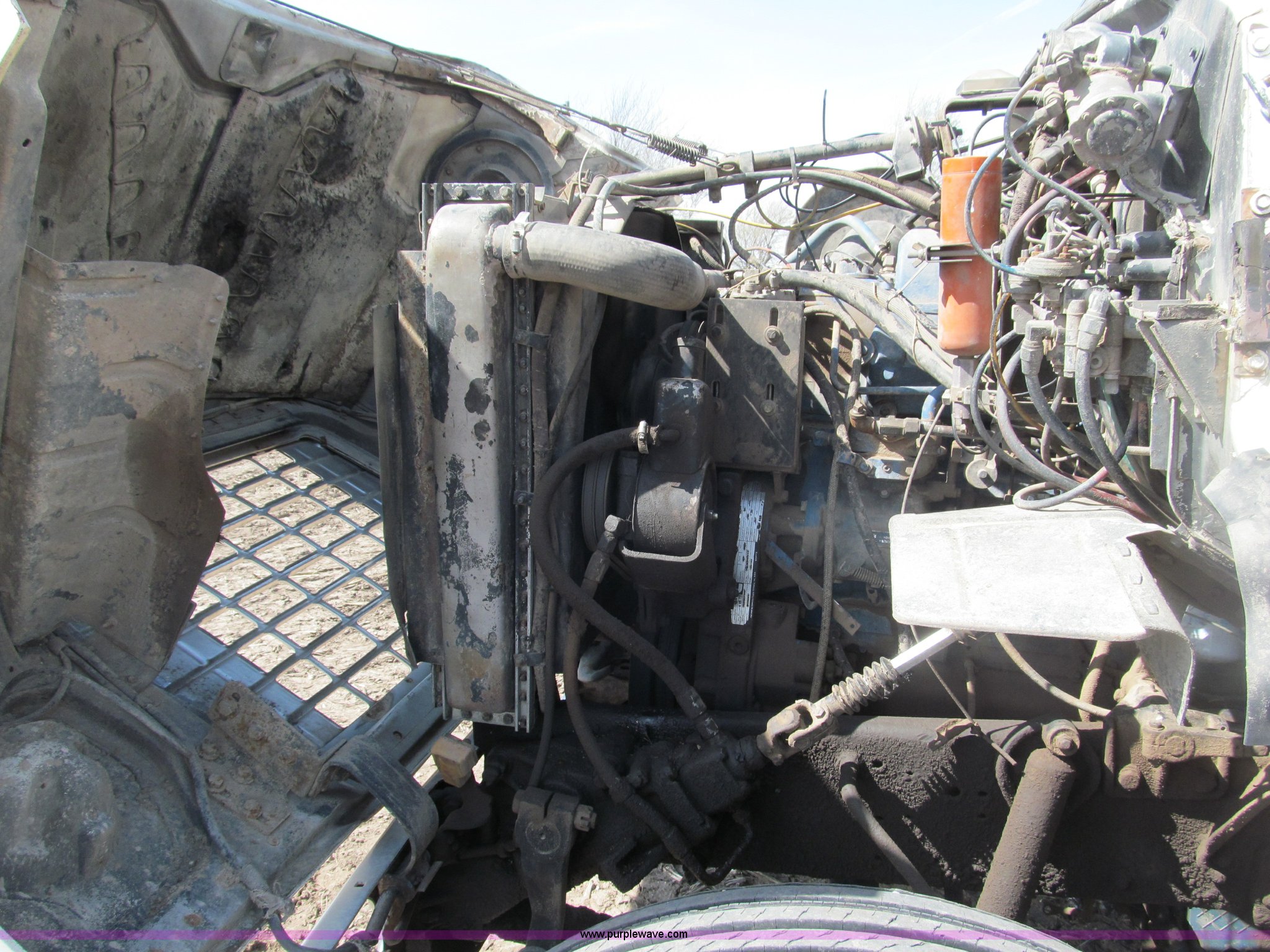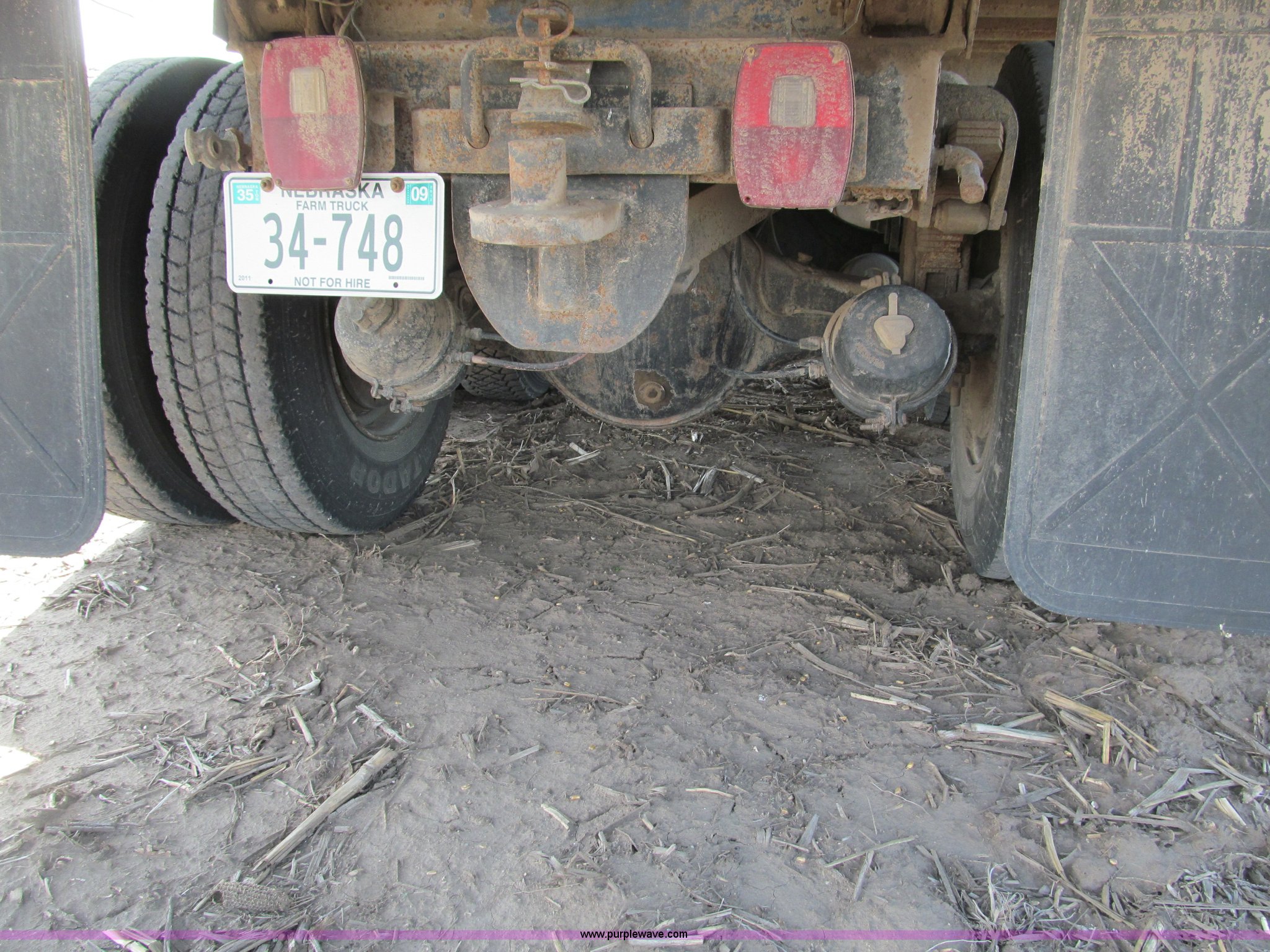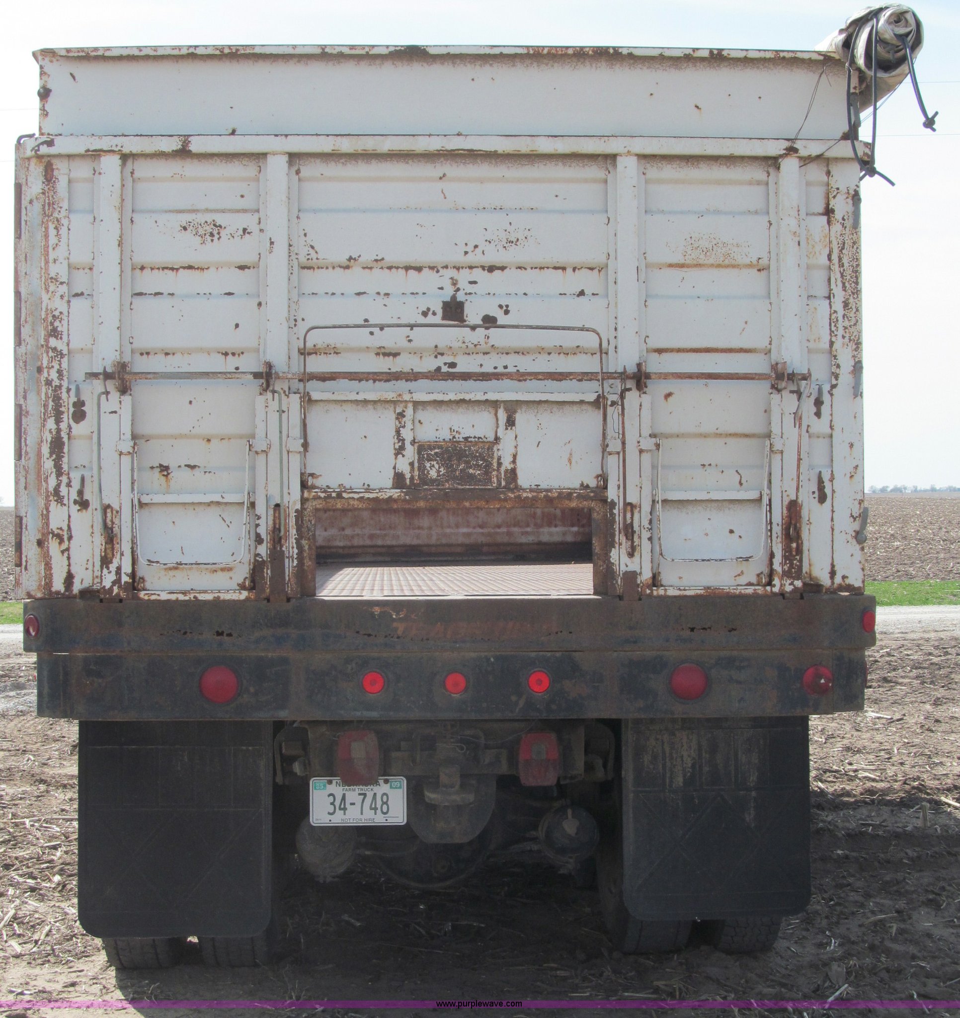 1977 Ford 9000 tandem axle grain truck. 234,988 miles on odometer, Cummins NTC290 diesel engine Small cam, Serial 10603244, Fuller Roadranger RT-1110 10 speed manual transmission, Differential lock, Heater, AM radio, Bostrom air ride seat Serial 2832147, Hood mounted convex mirror, Air horn, Dual circuit air brakes, Throttle lock, Power steering Front seal on pump leaks, Tradewind 22'L x 94"W grain box Harsh hoist RL-112 rigid lift (2) three stage lift cylinders, Serial 11356, Steel floor and sides, Roll up tarp overhead with handle, Chain and metal box stiffeners, PTO, Dual fuel tanks, Block heater, Side ladder, 48"W x 20"L x 20"H storage box, Rear pintle hitch, Trailer wiring, Rear glad hand and hand control Unknown operating condition, 11R22.5 tires, Front and rear mud flaps, Ether cold start, Serviced every year, Windshield cracked, Interior/exterior cosmetic damage. W90UVX87817. Shipping quotes available. Winter Farms. 1701 Rd 5. Grafton, NE 68365