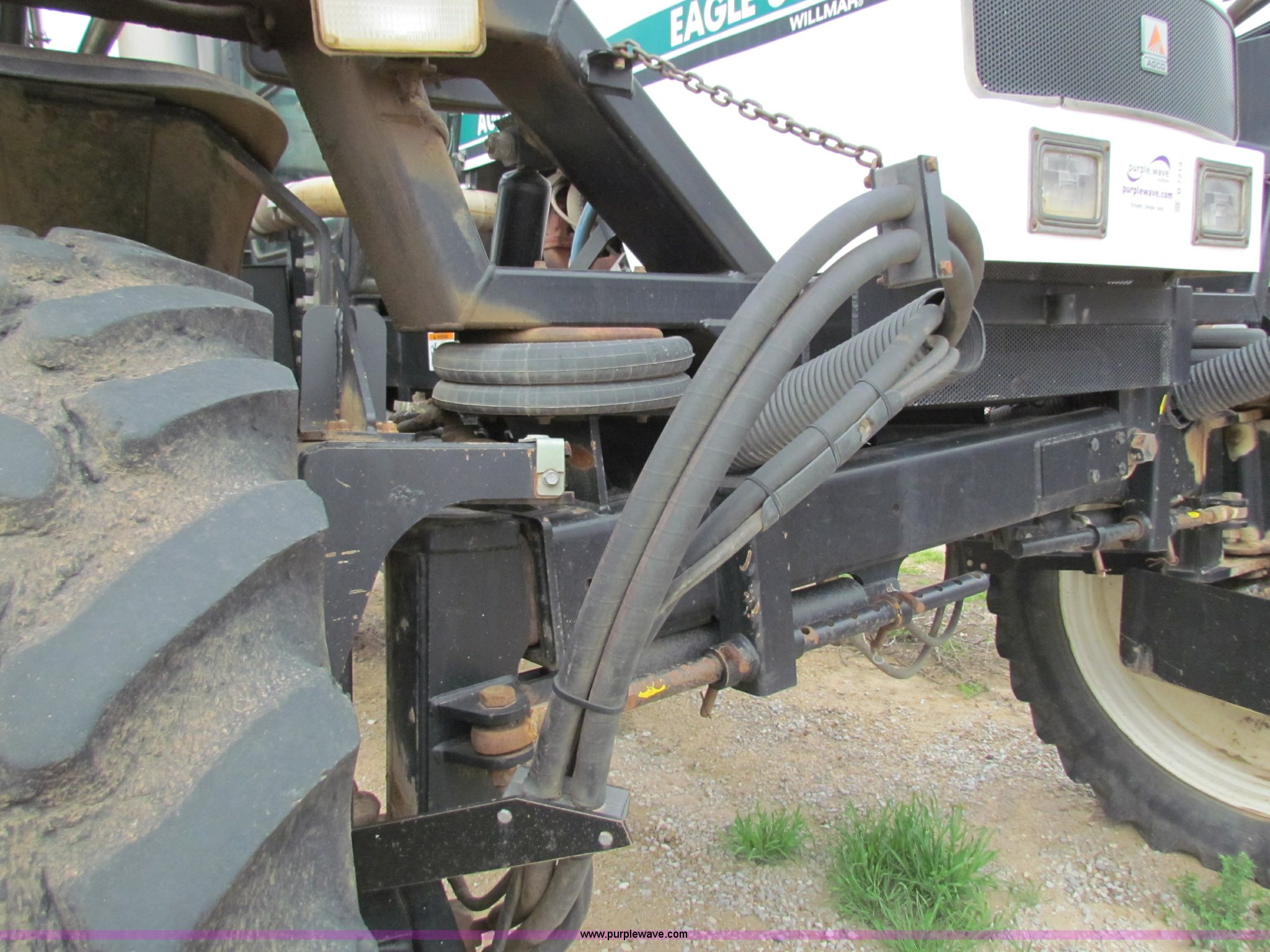 Purple Wave is selling a used Applicator Self Propelled in Kansas. This item is a 2002 Willmar Eagle 8500 sprayer with the following: 1,572 hours on meter, Cummins six cylinder diesel engine, Hydrostatic transmission, 1,000 gallon stainless steel tank, 90' boom, 10 gallon per acre nozzles, Foam markers, New foam system parts included, 14.9R46 tires, Baffle inside tank needs welded, Front end needs bushings, Serial 3500JL85120