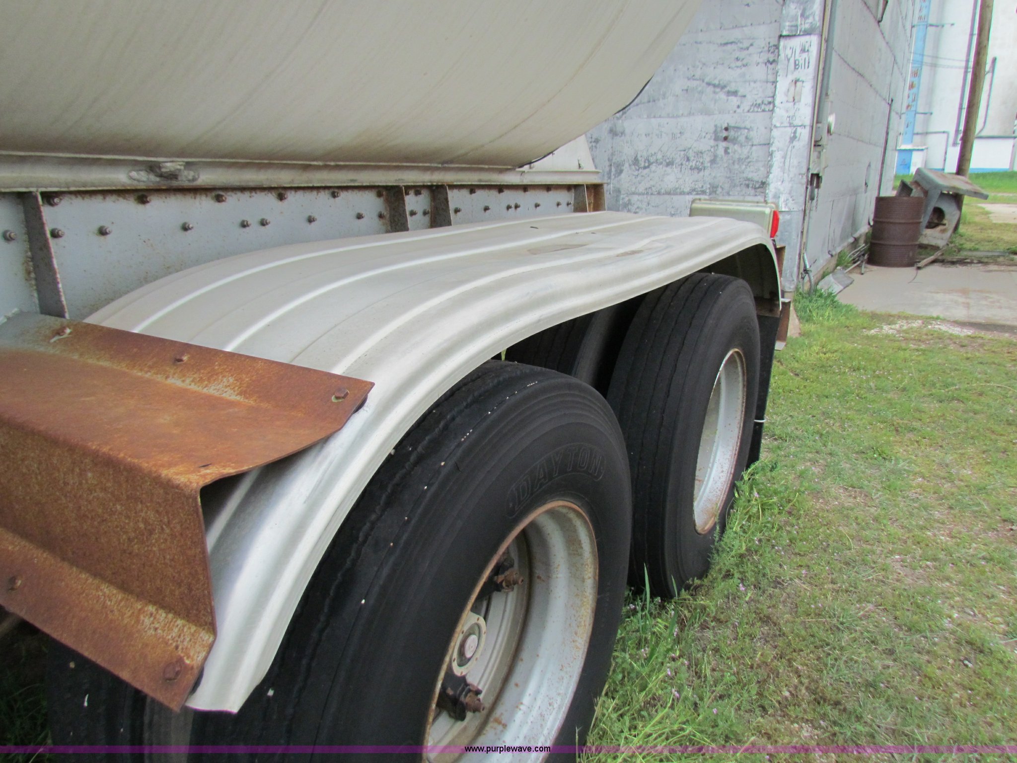 Purple Wave is selling a used Tank Trailer in Kansas. This item is a 1973 Trailmobile aluminum tanker trailer with the following: 9,000 gallon, 56,000 lbs max load, Hopper PTO pump, Four baffles, 11R22.5 tires, Model F11S4CCI, Pin hole in bottom of trailer