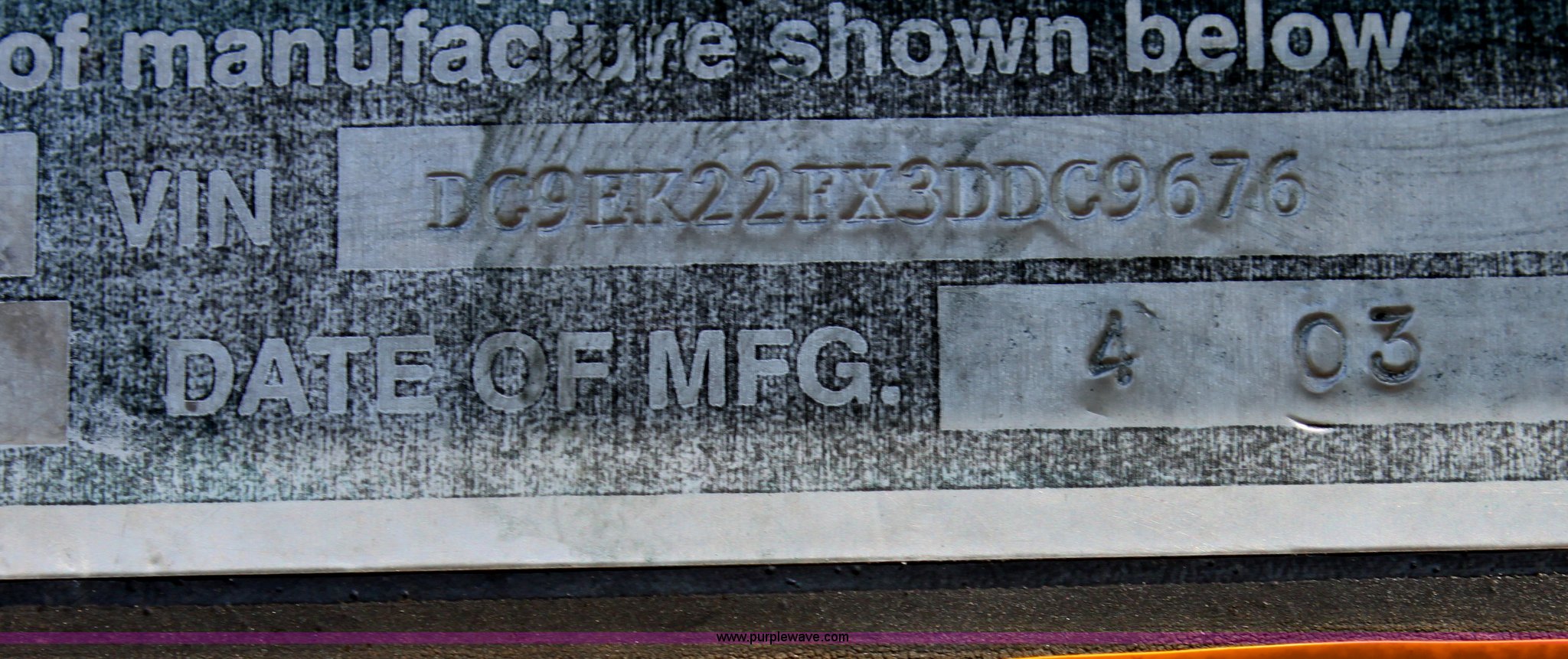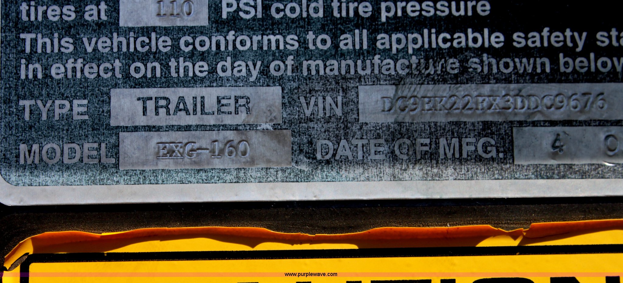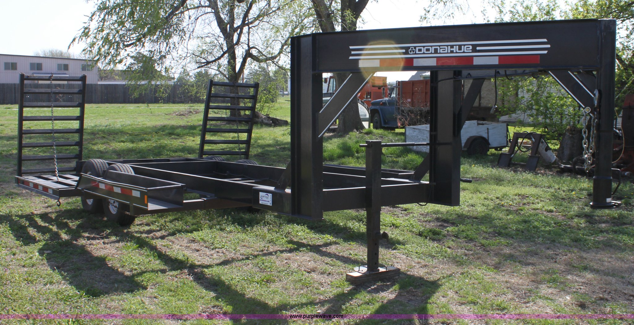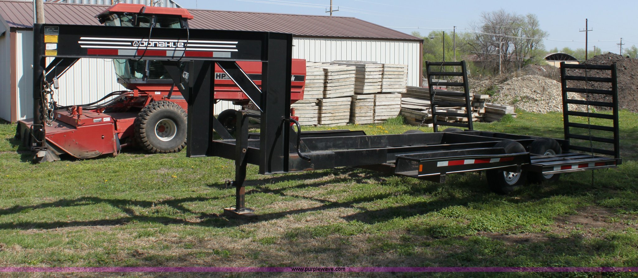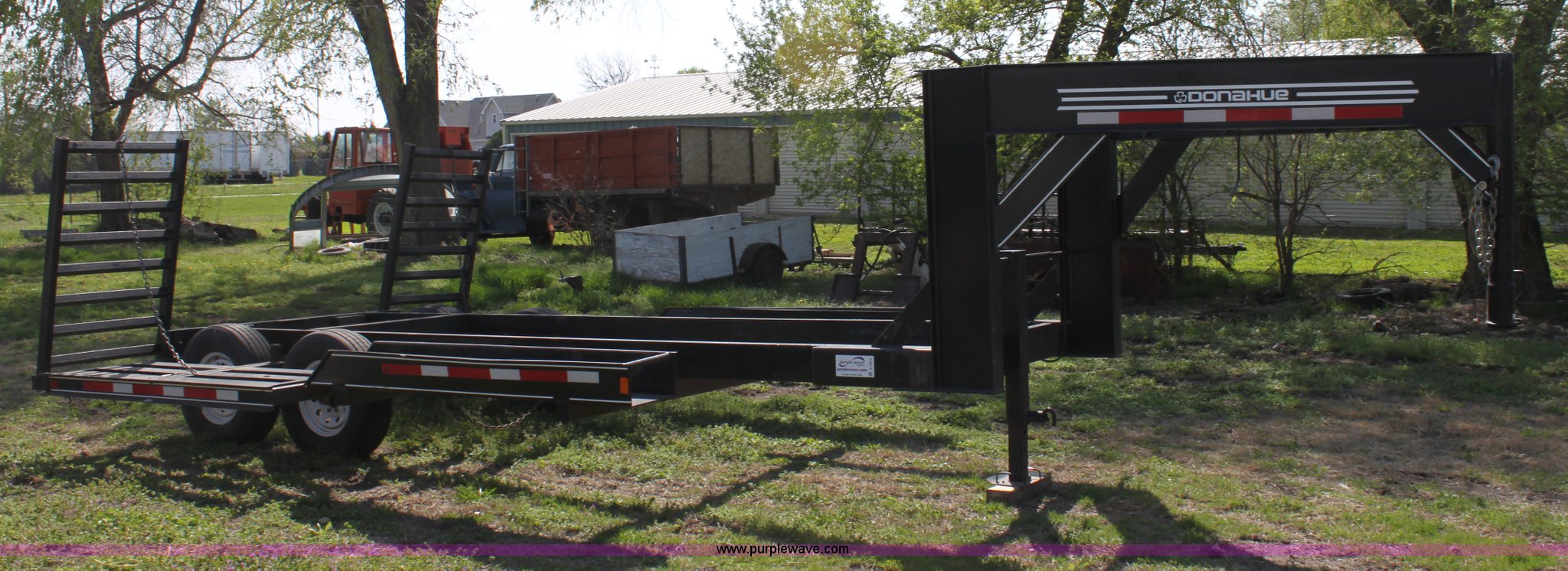 Purple Wave is selling a used Ag Equip. or Header Trailer in Kansas. This item is a 2003 Donahue EXG160 tandem axle swather trailer with the following: GVWR 16,100 lbs, Gooseneck hitch, 5' fold down ramps, Steel deck and wheel troughs, Adjustable rear wheel troughs, Dual braking axles, 235/85R16 tires