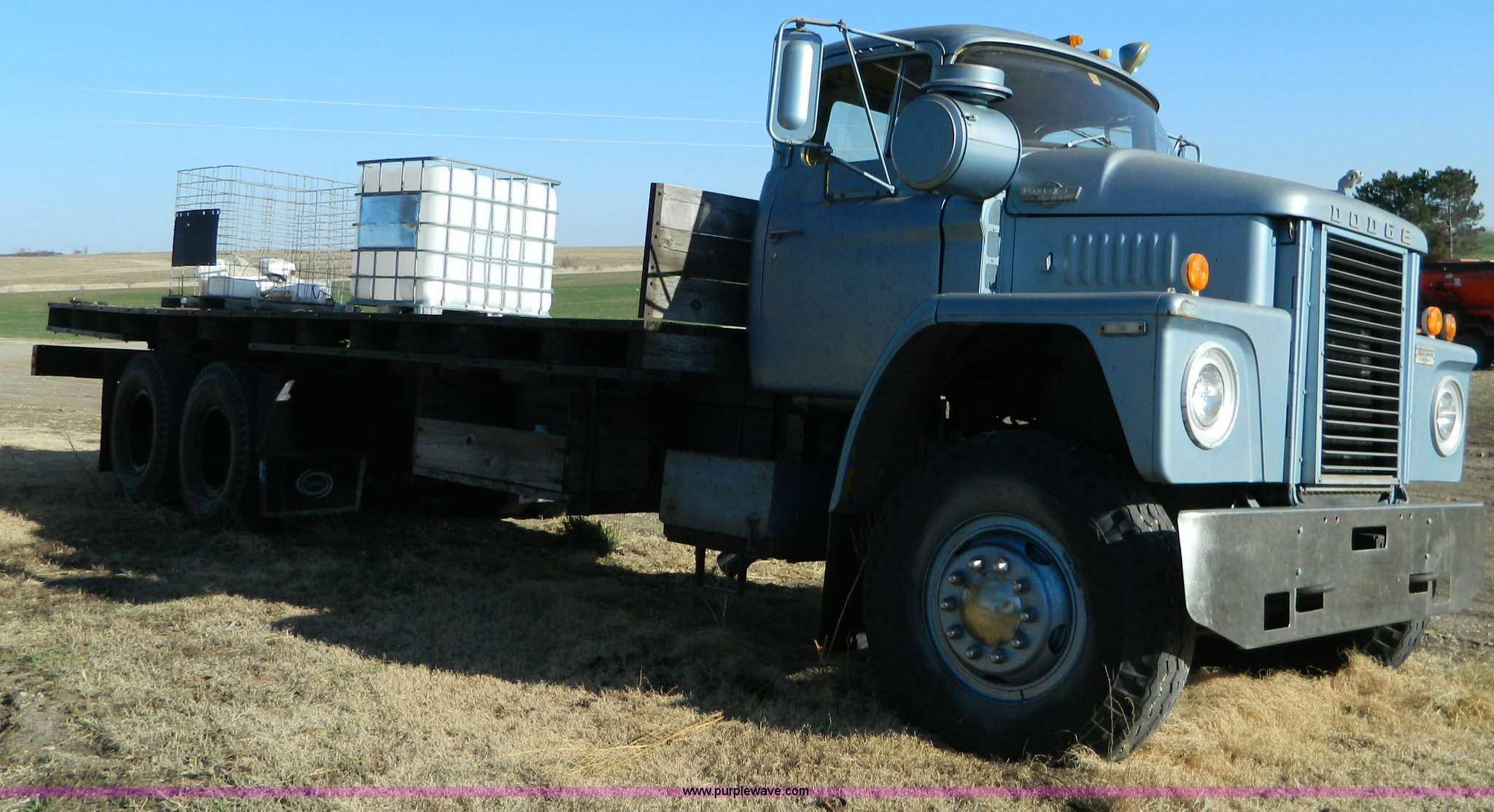 Purple Wave is selling a used Flat Bed Truck in Kansas. This item is a 1975 Dodge military truck with the following: 14,094 miles on odometer, Actual mileage, 2,500 engine hours on meter, Cummins C800 555 diesel engine, Allison automatic transmission, 24' flatbed, Air brakes, Low gear ratio, Top speed 40 mph, Originally used as aircraft refueling rig, GVW 58,000 lbs, Interior/exterior cosmetic damage