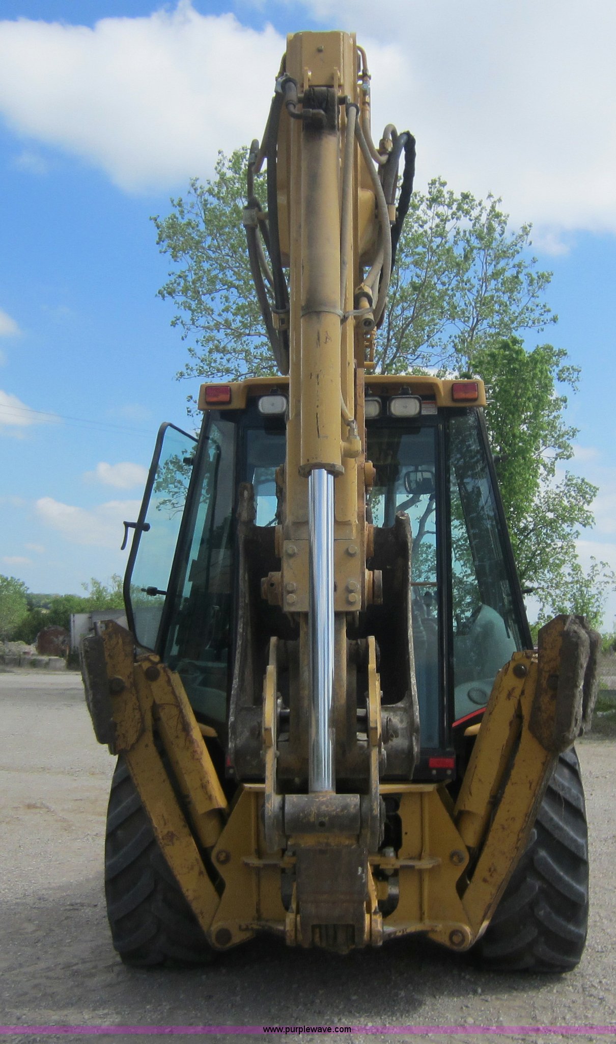 Purple Wave is selling a used Tractor Loader Backhoe in Kansas. This item is a 2002 Caterpillar 420D IT backhoe with the following: 3,949 hours on meter, Hours will vary, Caterpillar 3054T four cylinder diesel engine, 88 HP, Shuttle shift four speed transmission, Four wheel drive, Rear differential lock, 24" backhoe bucket, Quick attach, 14'4" dig depth, Manual thumb, Front and rear auxiliary hydraulics, Extend-A-Hoe, 1.25 cu. yd. bucket, Cab with AC and heat, AM/FM/Cassette, Parking brake, Rear joystick controls, Recently replaced batteries, 21,605 lbs. base operating weight, Front windshield cracked, Broken door handle, Serial CAT0420DPBLN02378