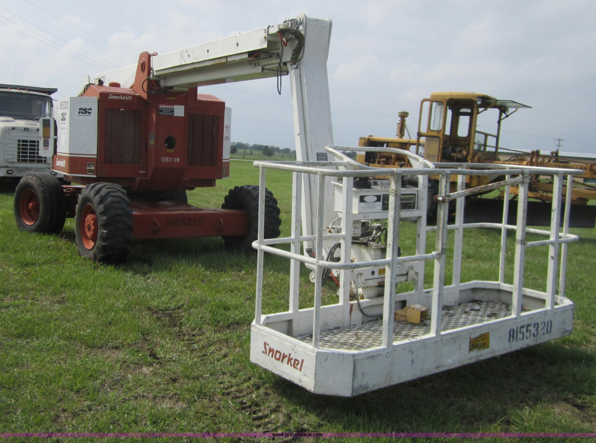 Purple Wave is selling a used Boom Lift in Kansas. This item is a Snorkelift ATB60 boom lift with the following: 5,213 hours on meter, Cummins four cylinder diesel engine, 60' lift, 500 lbs load capacity, 30" x 92" platform, Upper and lower boom controls, 15-19.5 tires, foam filled, Model ATB-60ALCU, Serial 9107170292