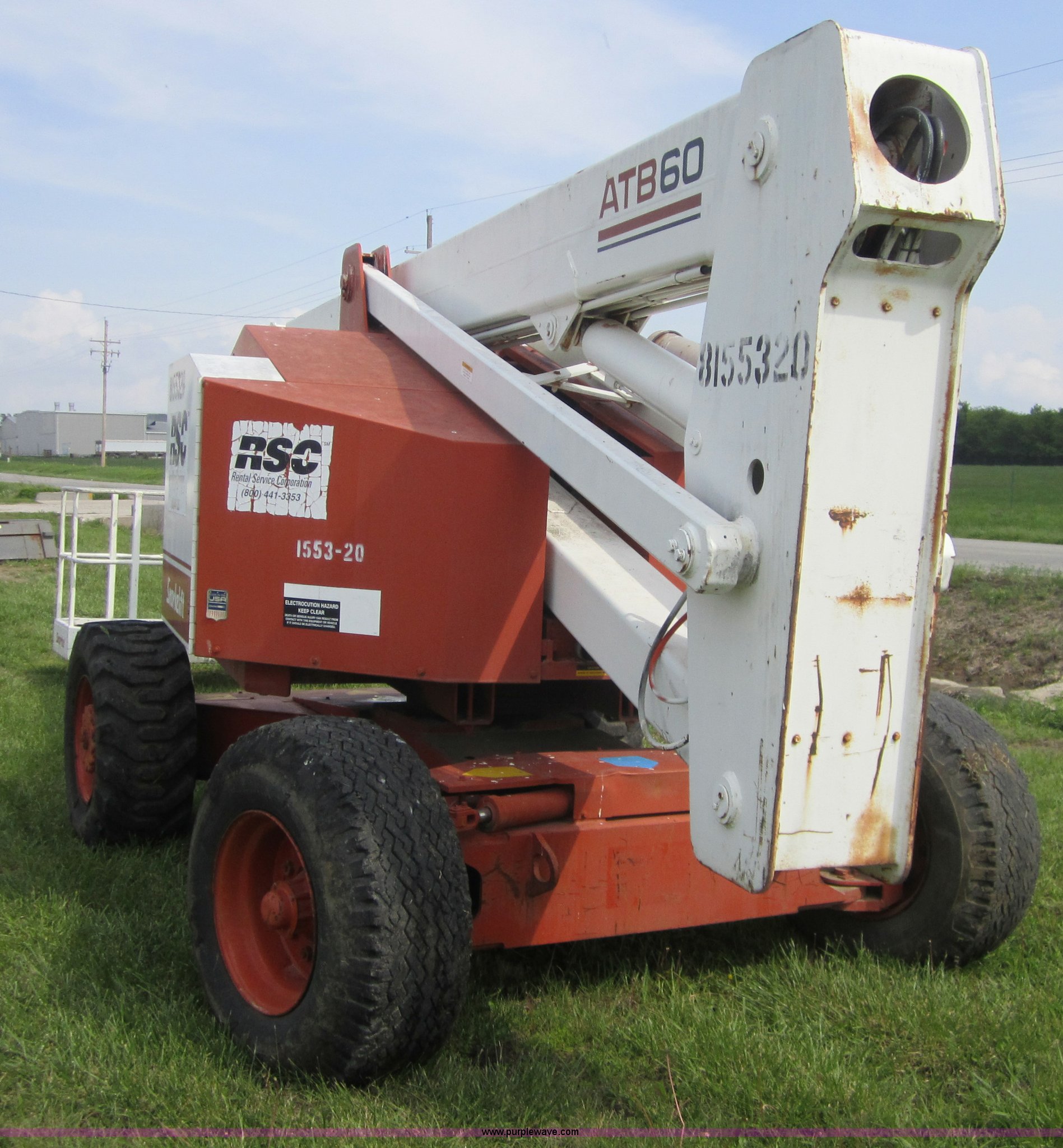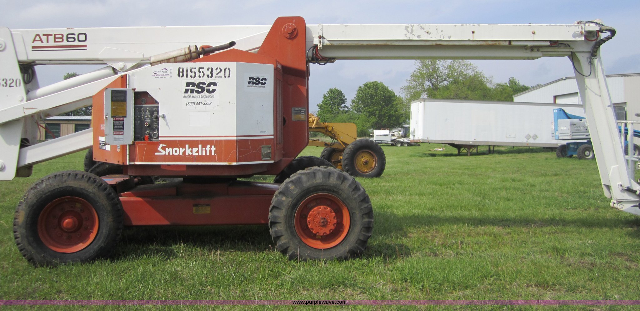 Take a look at this used Snorkelift ATB60 boom lift being sold on April 26th, 2012 in the SOLD! April 26 Construction Equipment Auction made by Snorkelift. Take a look at all of the item information below or take a look at similar auctions for Aerial Lifts.