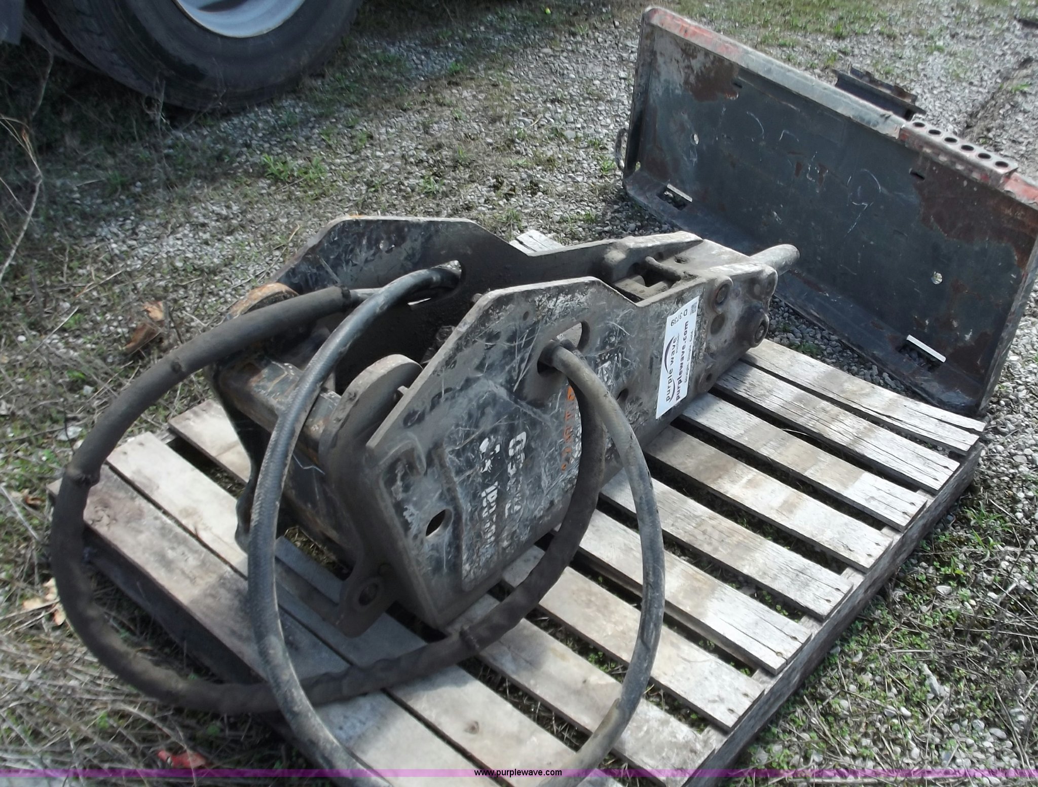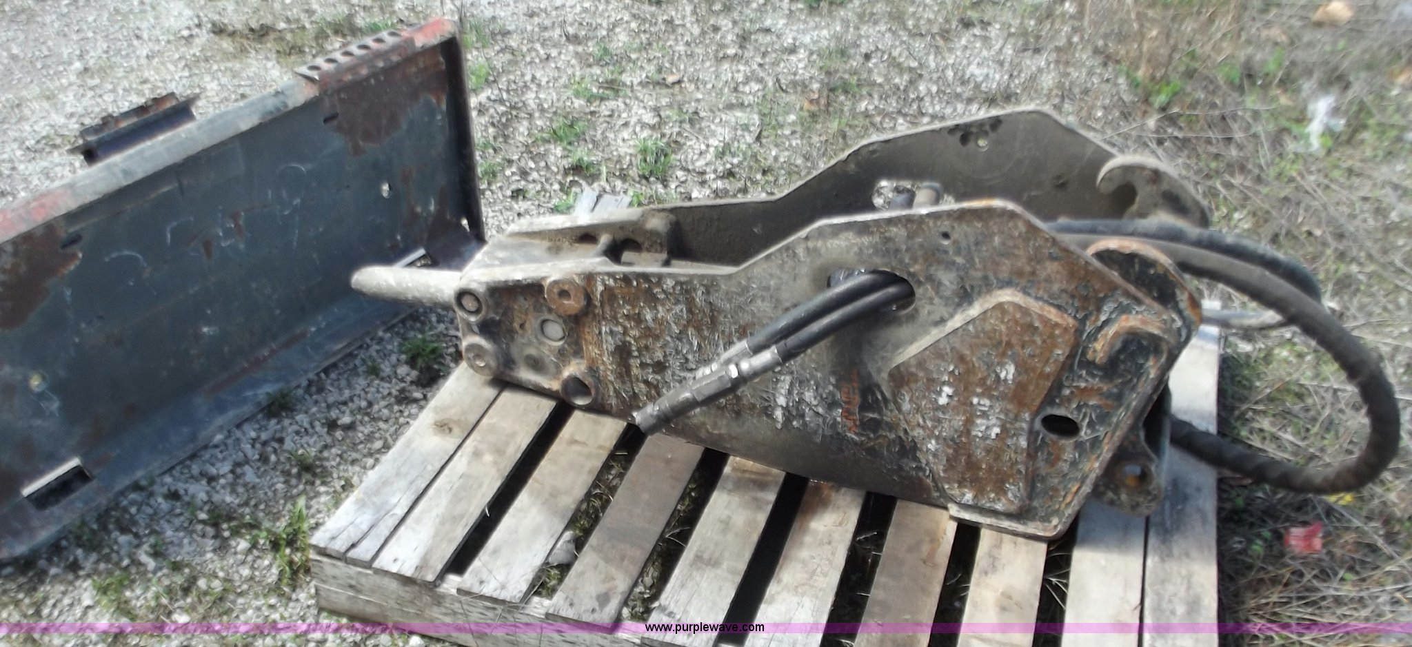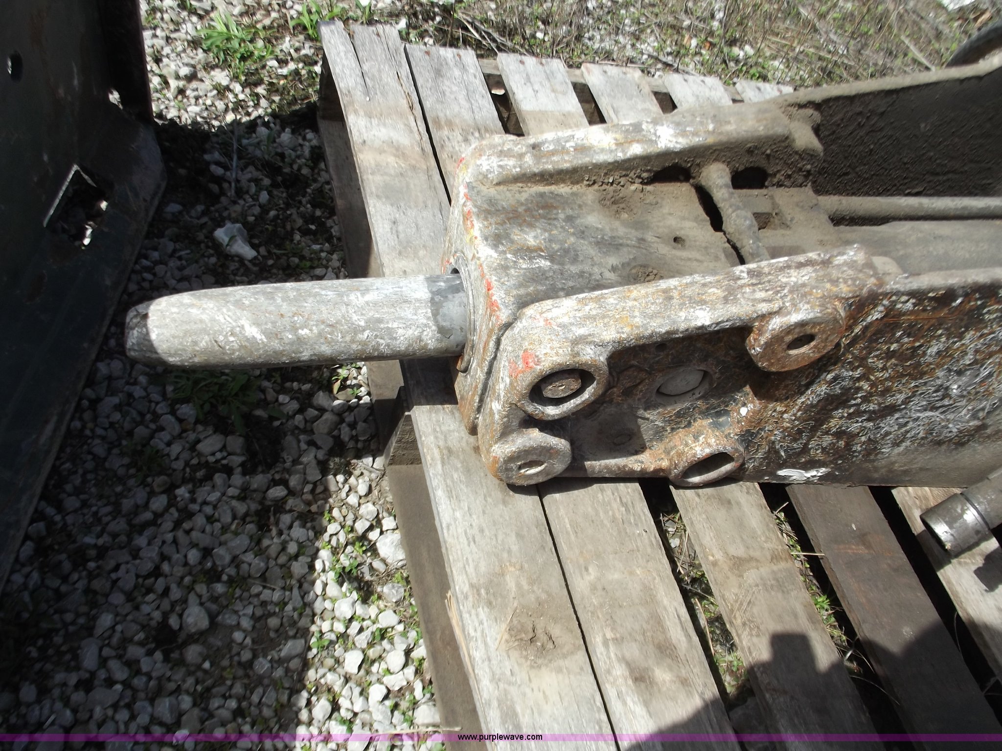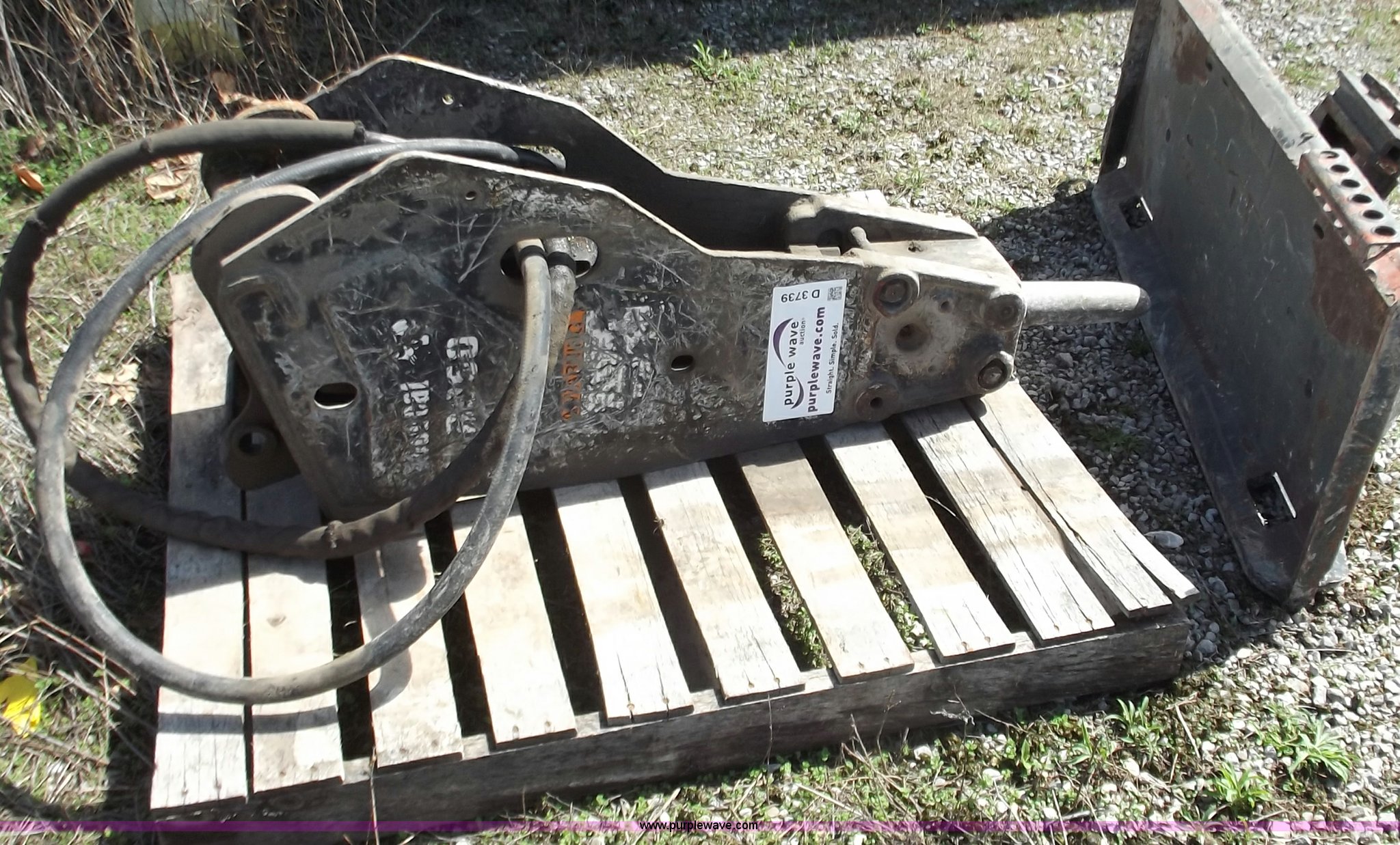 Purple Wave is selling a used Excavator Attach. in Missouri. This item is a Bobcat B950 breaker with the following: Quick attach for mini excavator, Attach plate for skid steer, 950 ft lbs, Last used on Bobcat 435 excavator, item B3738