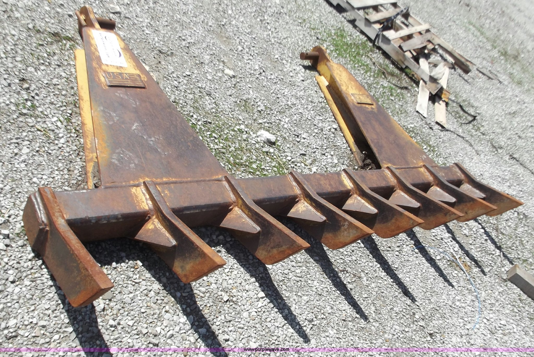 USA root rake attachment. (8) 1.25"W x 14"L teeth, Last used on Case 850H dozer, item D3735. Shipping quotes available. Thompson Construction. 3614 W Arrow. Marshall, MO 65340