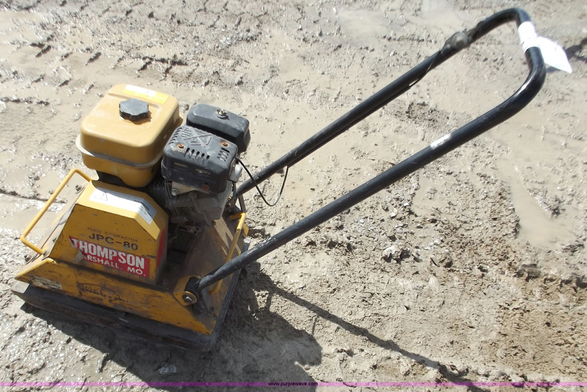 Northern Industrial JPC-80 walk behind plate compactor. Robin Subaru 6 HP gas engine, 175 lbs. base operating weight, 1,590 lbs centrifugal force. Shipping quotes available. Thompson Construction. 3614 W Arrow. Marshall, MO 65340