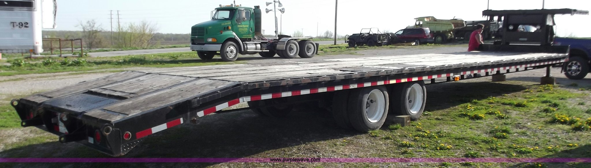 Purple Wave is selling a used Equip. Trailer in Missouri. This item is a 2006 Rolls Rite 30KHD 42' gooseneck trailer with the following: 37' flat deck, 5' dove tail, 6' top deck, 102" width, (14) strap winches, Dual chain and boomer, Dual jacks, Front and rear storage compartments, 30,000 lb capacity, (2) 15,000 lb axles, 12" centers, Rub rail and stake pockets, Gusset frame, Electric brakes, Electric safety brake-away system, Winch bracket, Work lights, 215/75/17.5 tires, 14 ply