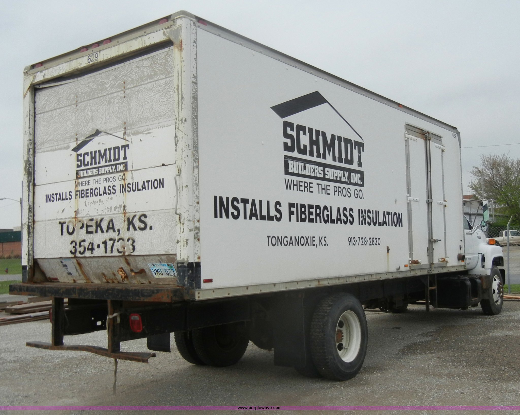 Purple Wave is selling a used Box Truck in Kansas. This item is a 1996 Chevrolet Kodiak insulation truck with the following: 188,275 miles on odometer, Caterpillar 3116 6.6L six cylinder diesel engine, 200 HP, Remanufactured engine, Model 3116 DITA, Serial 7HJ08722, Six speed manual transmission, Heater, AM/FM, Manual windows and locks, Vinyl bench seat, (2) 50 gallon fuel tanks, Block heater, Supreme 22.5' box, Serial VF22090096T14853, Unisul Volu-Matic, Hose, Side entry door, Front tow hooks, 10R22.5 tires, Driver door handle missing, does not open, Interior/exterior cosmetic damage, Rear roll up door inoperable, Unit# 56