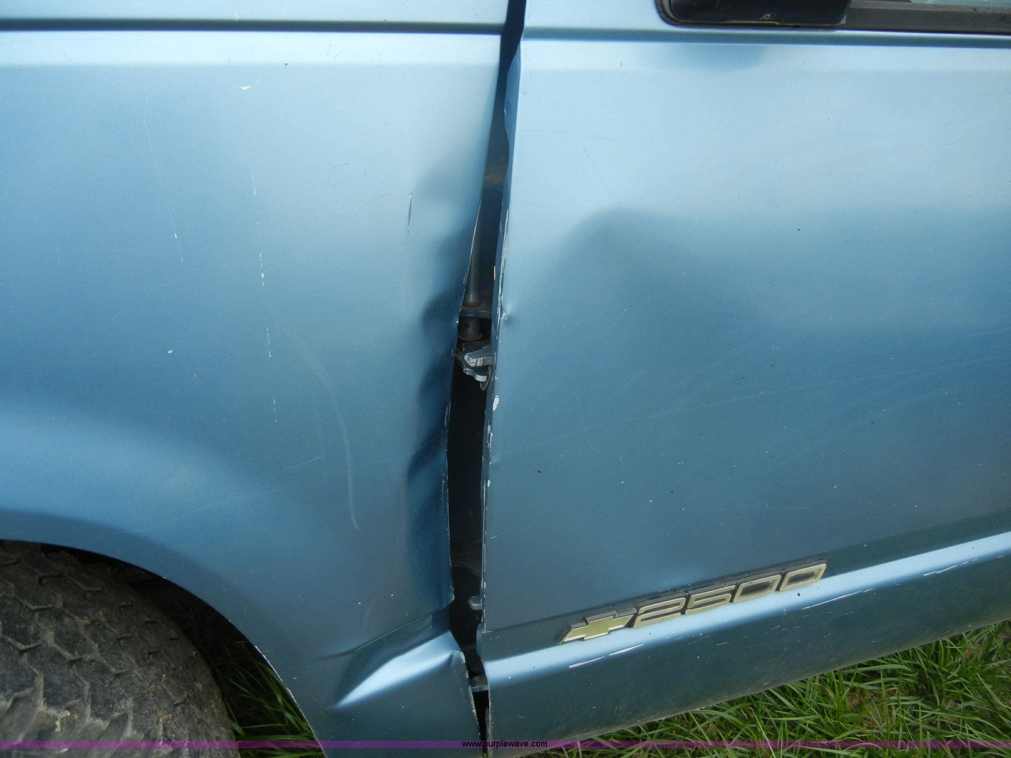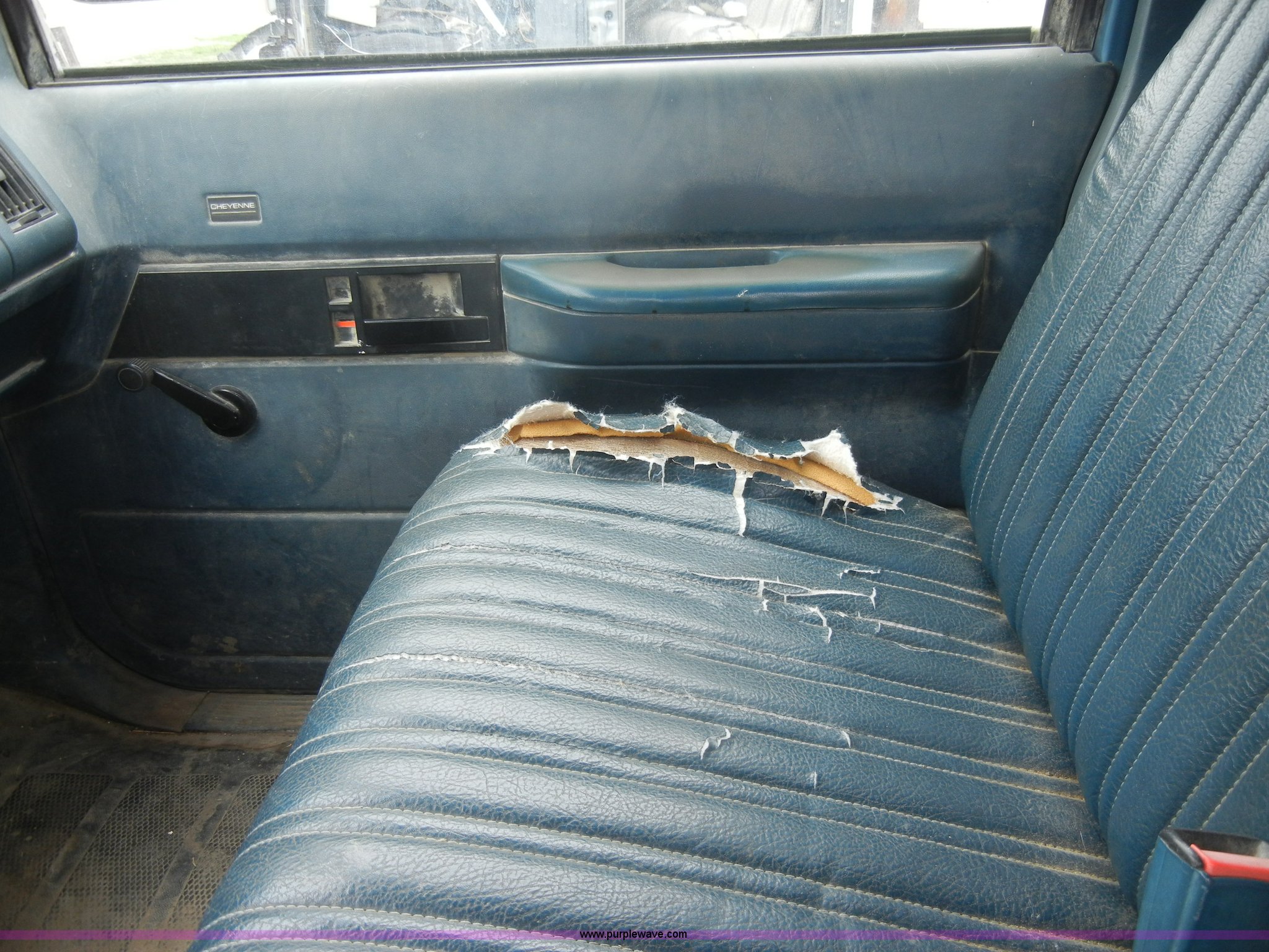 Purple Wave is selling a used Passenger Vehicle in Kansas. This item is a 1988 Chevrolet K2500 Cheyenne extended cab pickup truck with the following: 276,503 miles on odometer, 6.2L V8 diesel engine, Automatic transmission, Four wheel drive, AC and heat, AM/FM, Manual windows and locks, Vinyl bench seats, Gooseneck ball, Receiver hitch with ball, 265/75R16 tires, Interior/exterior cosmetic damage, Dead battery, Cracked windshield, Headliner needs repaired, Paint peeling, Dents and scratches