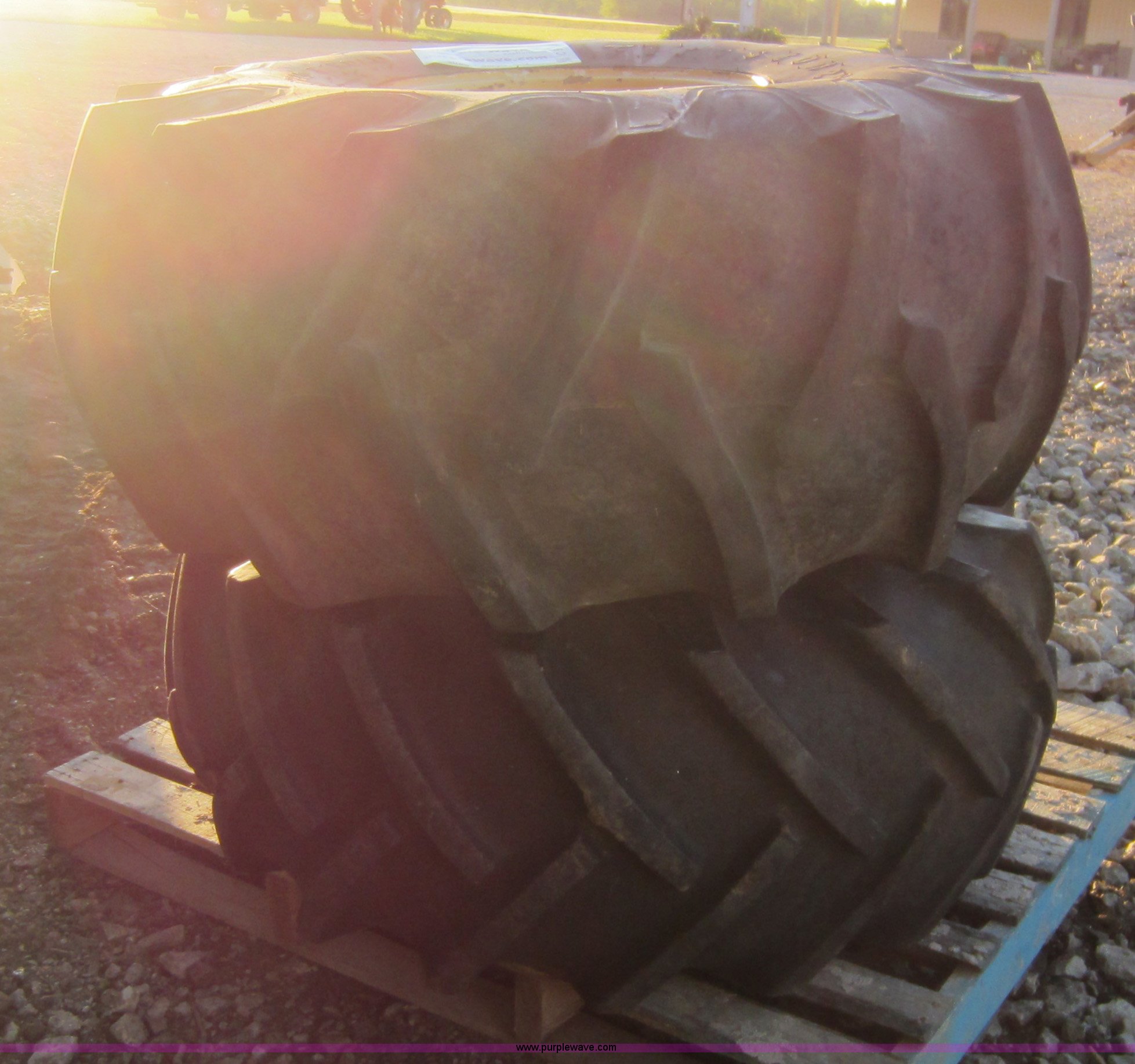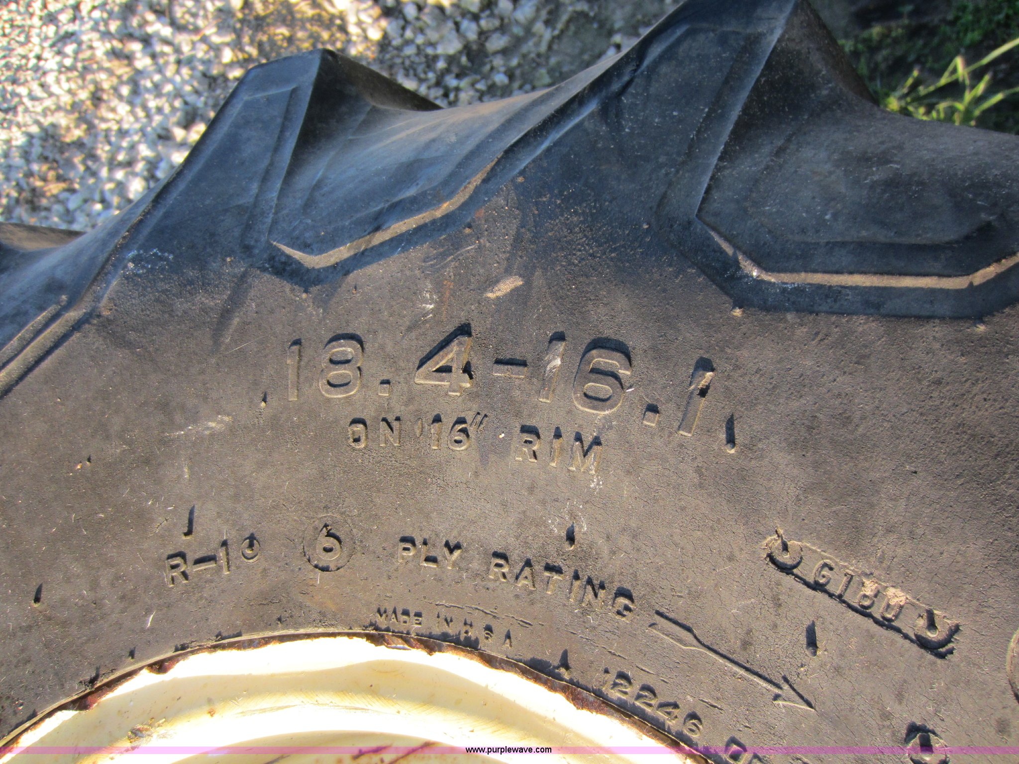 Purple Wave is selling a used Industrial Tires or Tracks in Kansas. This item is a (2) Firestone combine tires with the following: 18.4-16, Removed from New Holland TR85