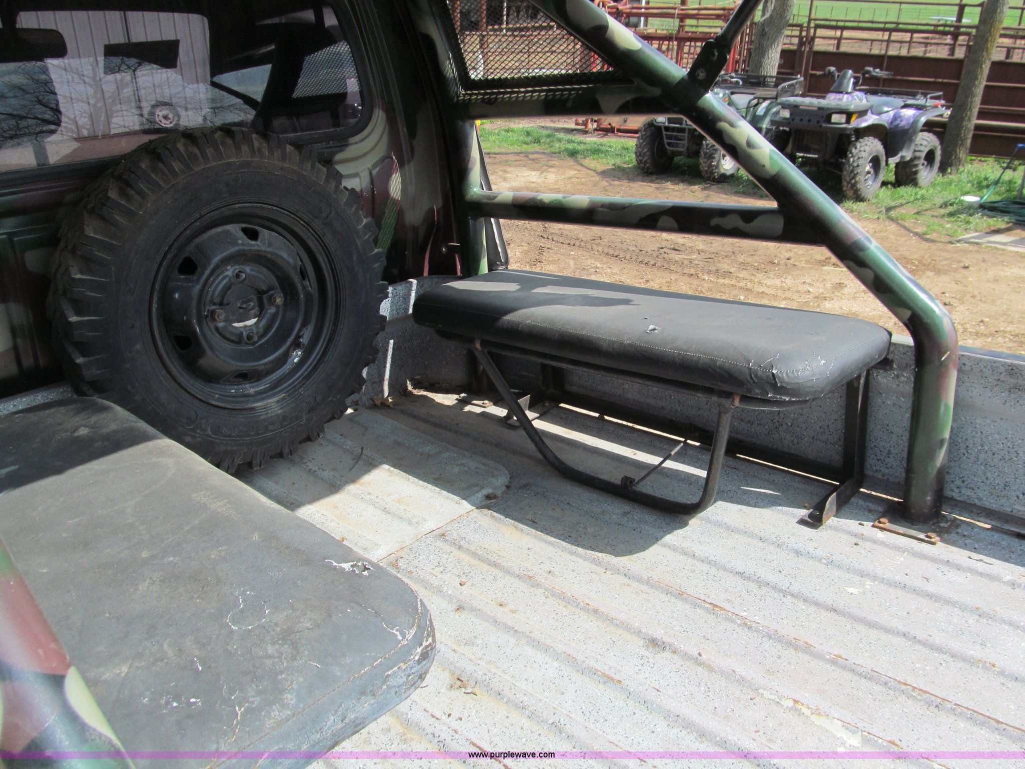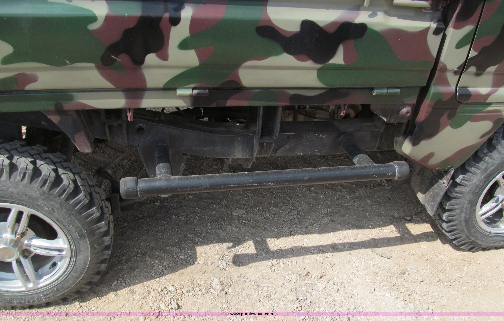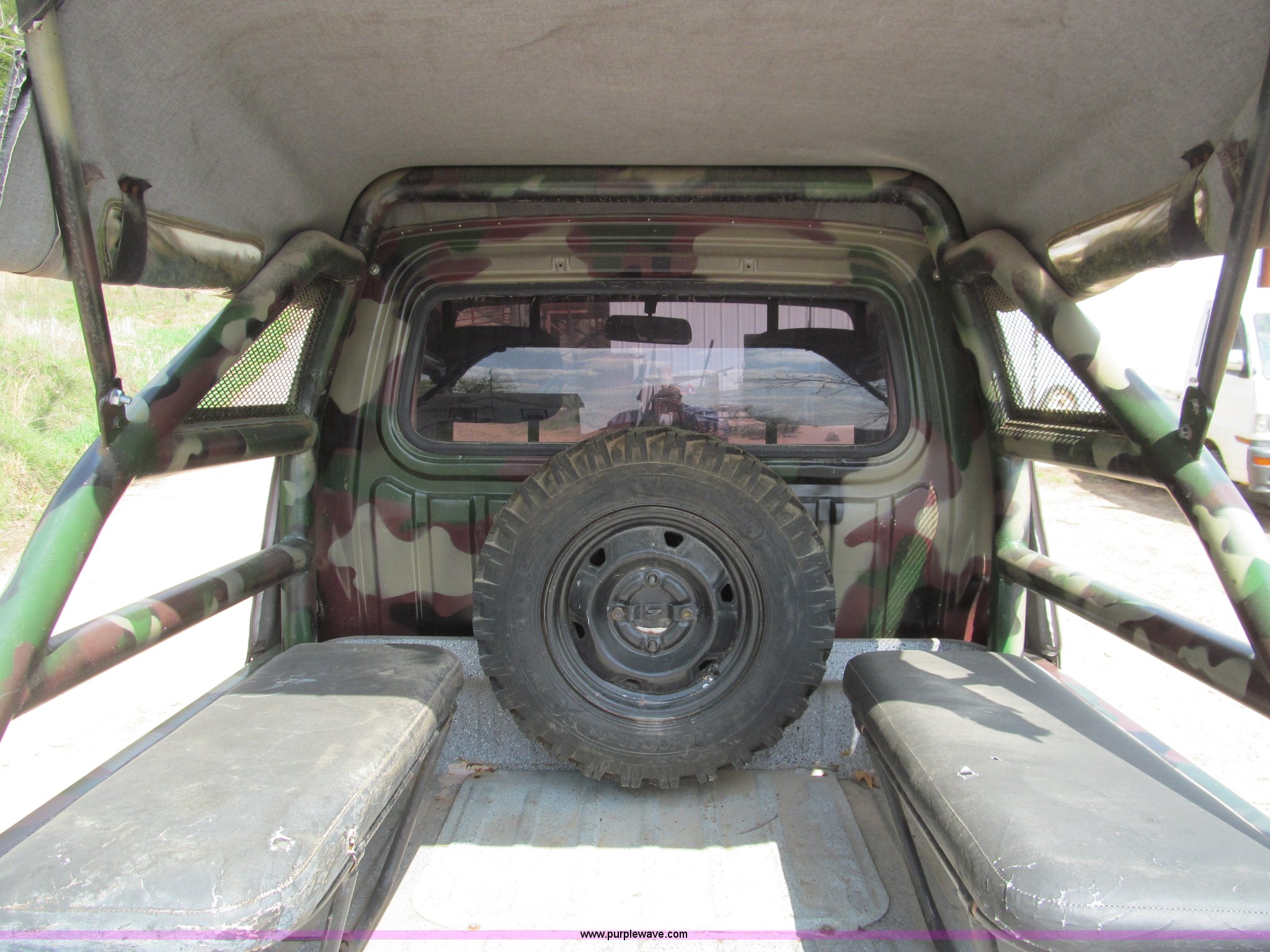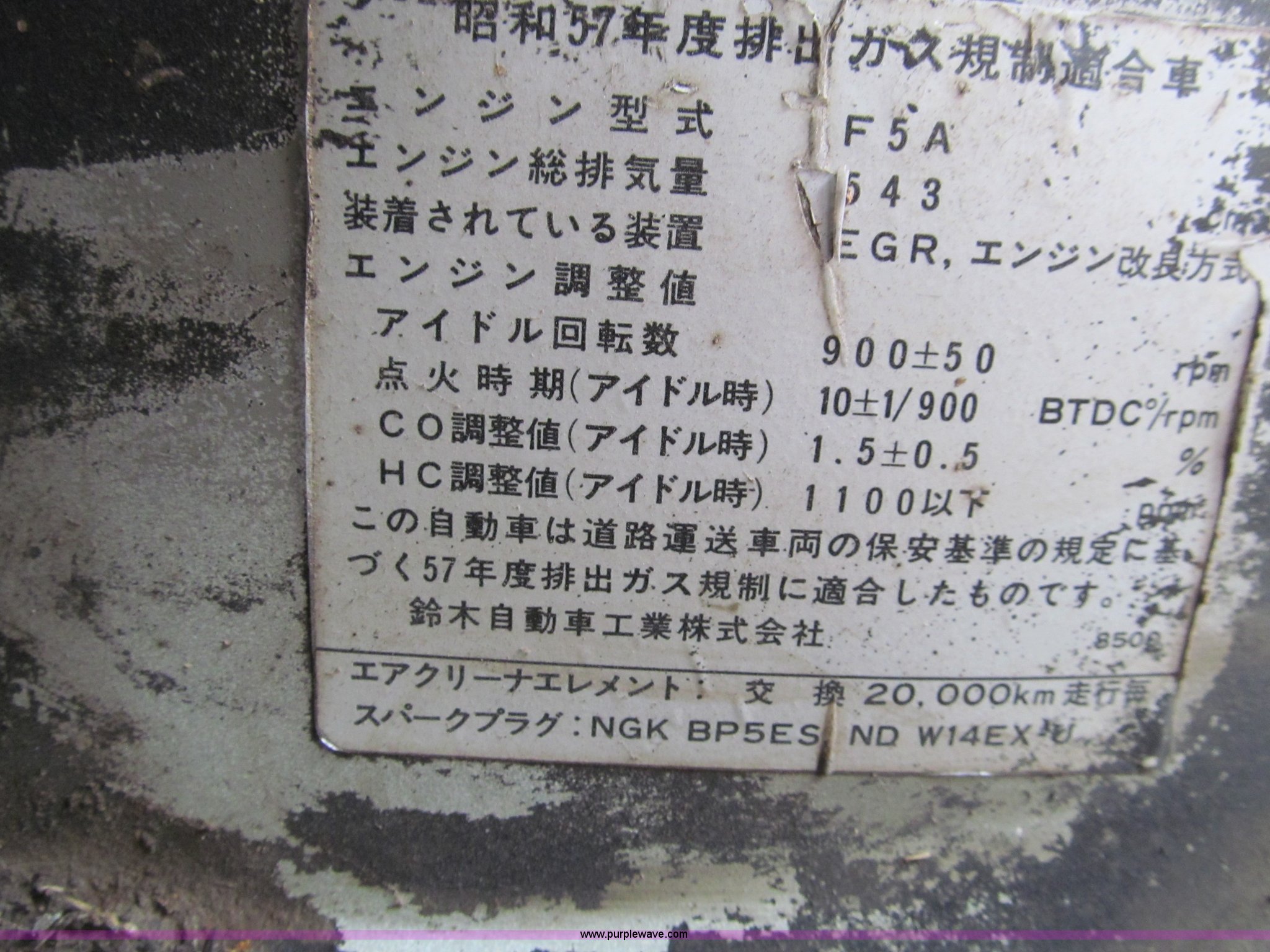 Purple Wave is selling a used Utility Vehicle in Missouri. This item is a Suzuki utility vehicle with the following: 90,178 km on odometer, Three cylinder gas engine, Five speed manual transmission with Hi-Low range, Four wheel drive, Left hand drivers operation, Heater, Manual windows and locks, Vinyl interior, 6'4" x 4'7" bed, Fold down sides, 6.40/6.50-13 tires