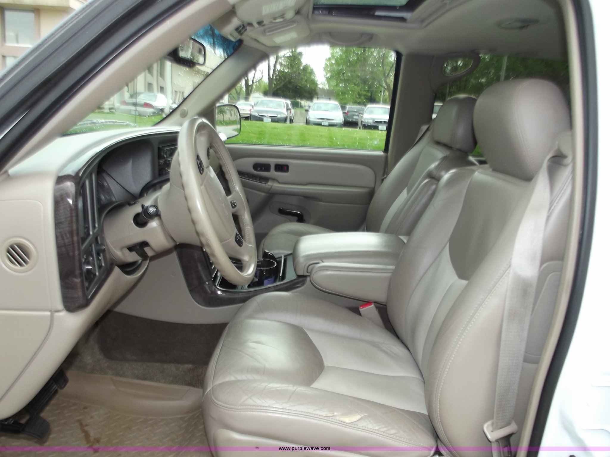 Purple Wave is selling a used Passenger Vehicle in Missouri. This item is a 2003 GMC Yukon Denali 1500 XL AWD SUV with the following: 149,403 miles on odometer, 6.0L V8 SFI engine, Automatic transmission, All wheel drive, Tow package, AC and heat, Tilt, Cruise, AM/FM/CD, Power windows, locks, mirrors, and seats, Heated seats, Heated mirrors, Leather interior, Sunroof, Dual headrest monitors, Adjustable foot pedals, Keyless entry, Rear air, Second row captain seats, Third row seating, OnStar, Auto dimming rear view mirror, Luggage rack on roof, Running boards, Tinted windows, Auto ride suspension, Self leveling rear shocks, service suspension light is on, Receiver hitch, Trailer wiring, 17" polished aluminum wheels, 3.73 gear ratio