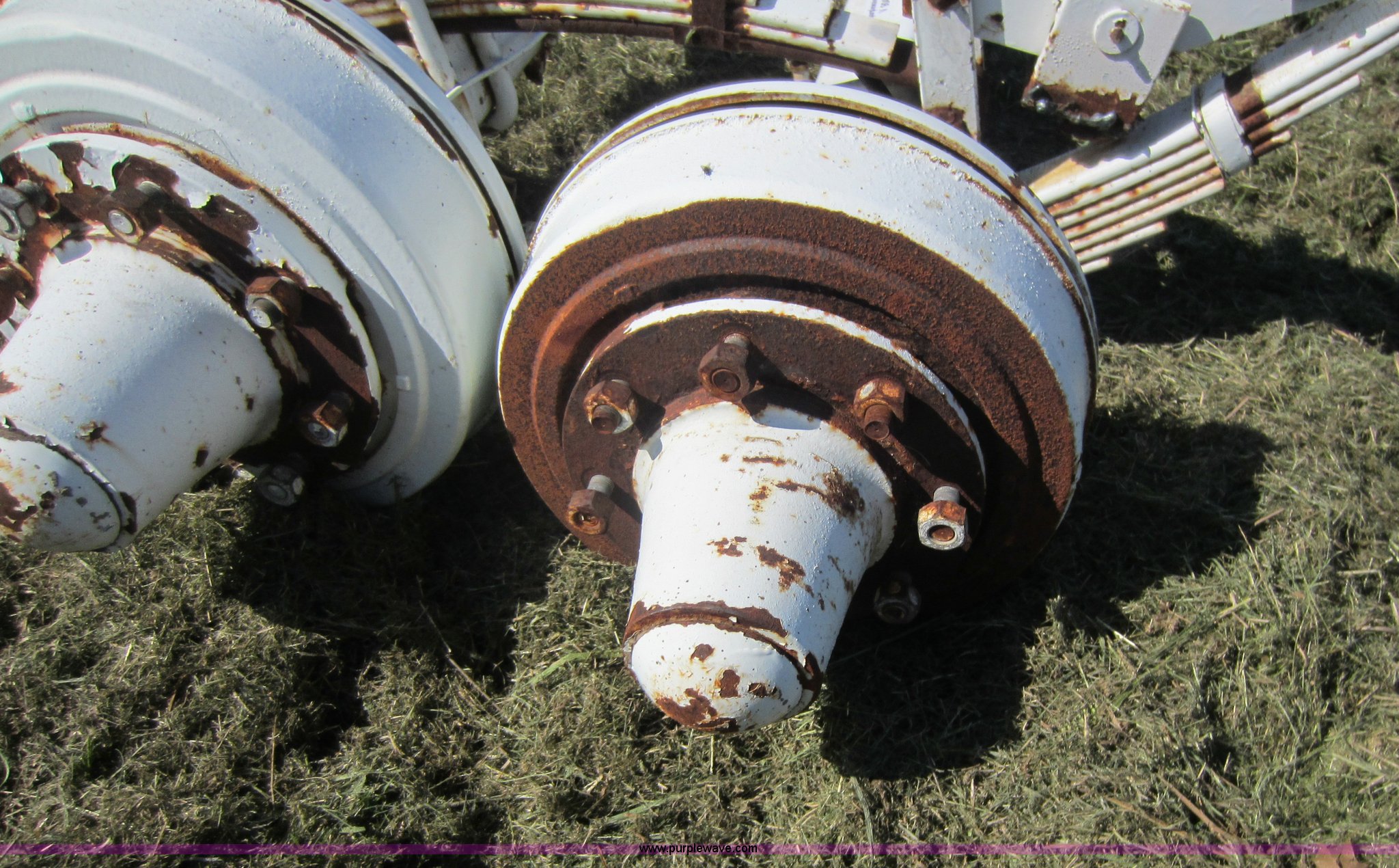 Purple Wave is selling a used Automotive Parts or Acces. in Kansas. This item is a (2) 8-bolt axles with the following: Leaf springs