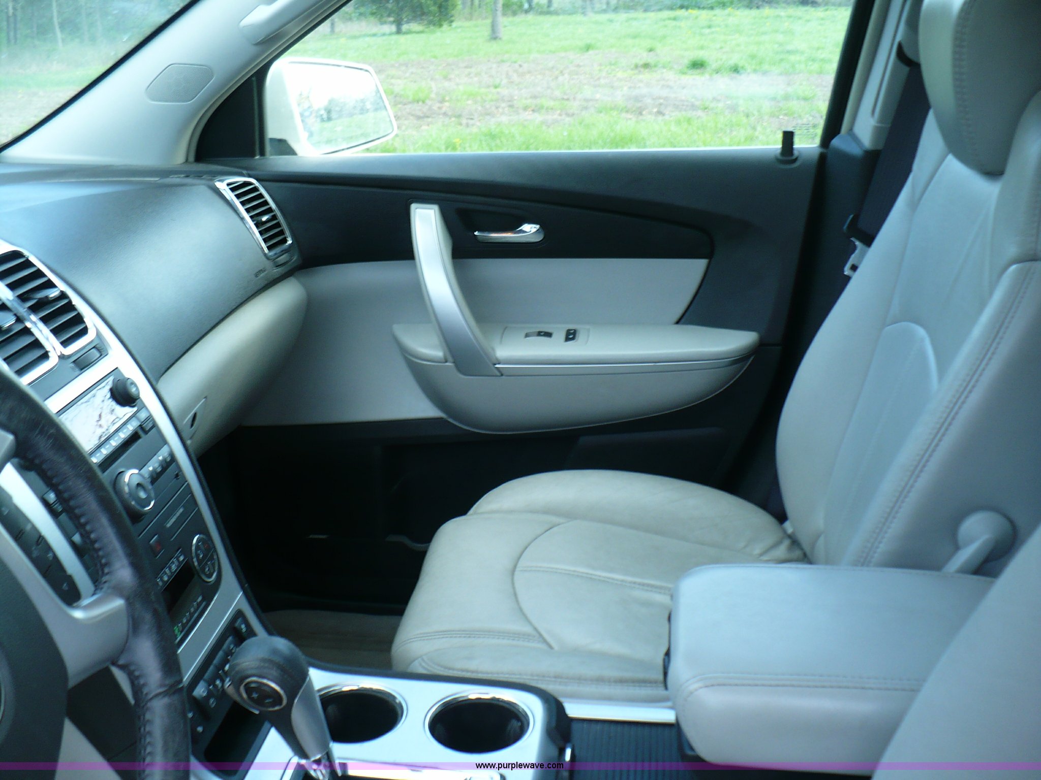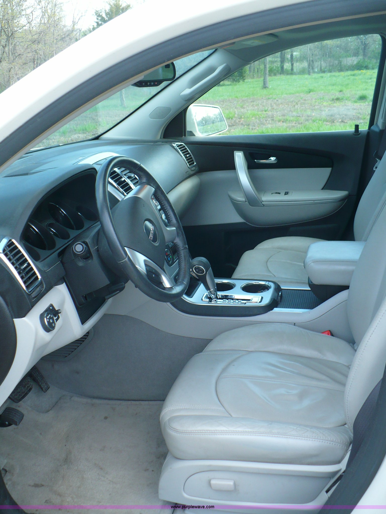 Purple Wave is selling a used Passenger Vehicle in Missouri. This item is a 2008 GMC Acadia SLT SUV with the following: 75,503 miles on odometer, 3.6L V6 SFI engine, Automatic transmission, Front wheel drive, AC and heat, Tilt, Cruise, AM/FM/Cassette, Bose sound system, 6 CD changer, XM radio, Power windows, locks, mirrors, and seats, Heated seats, Leather interior, Steering variable assist, Remote keyless entry, Sunroof, Aluminum wheels, P255/60R19 tires