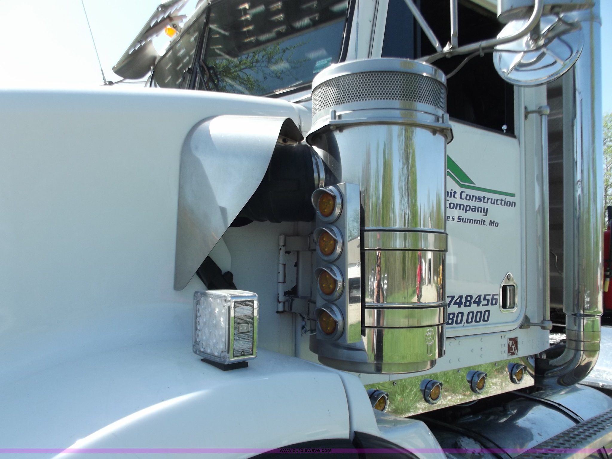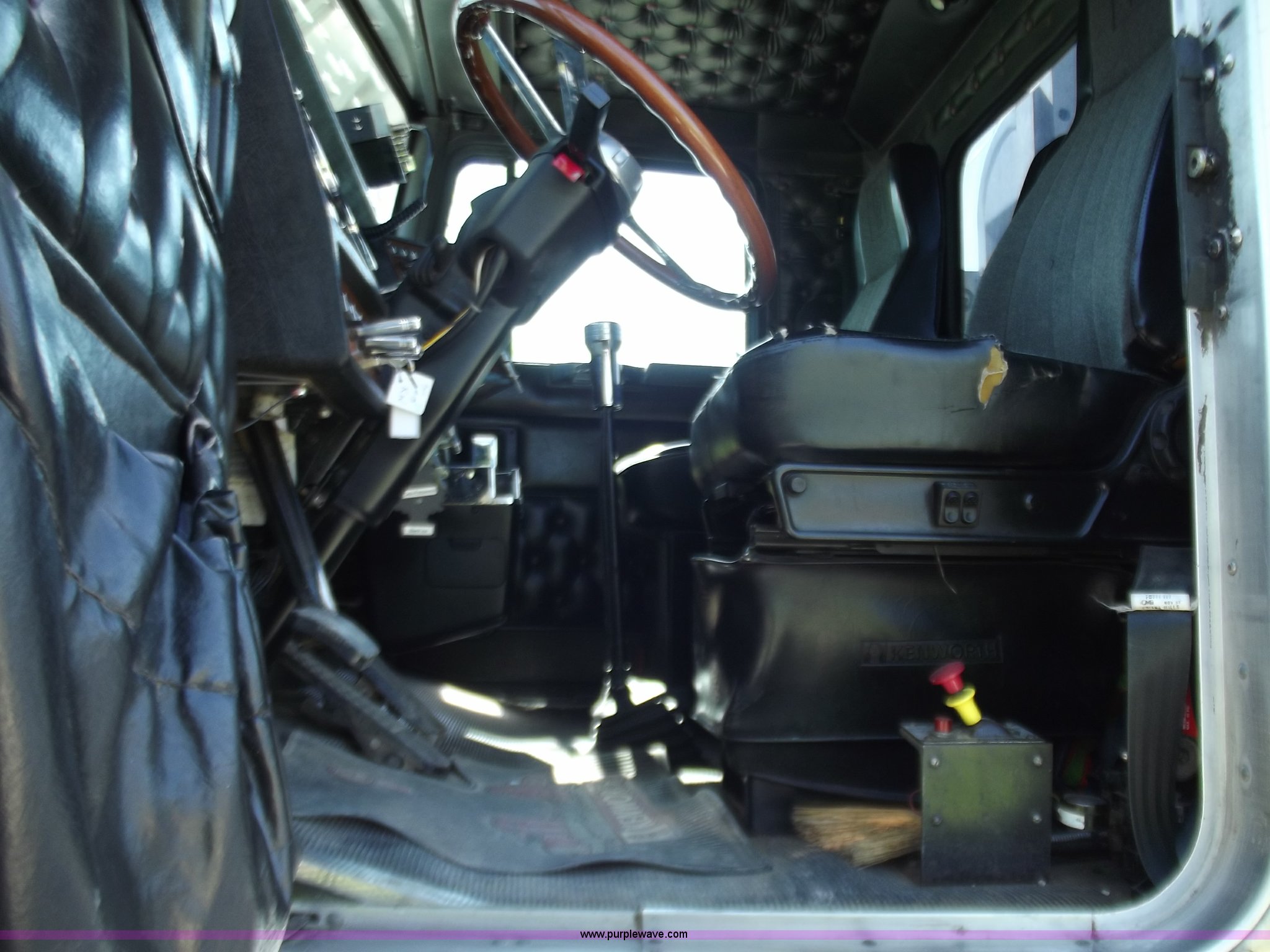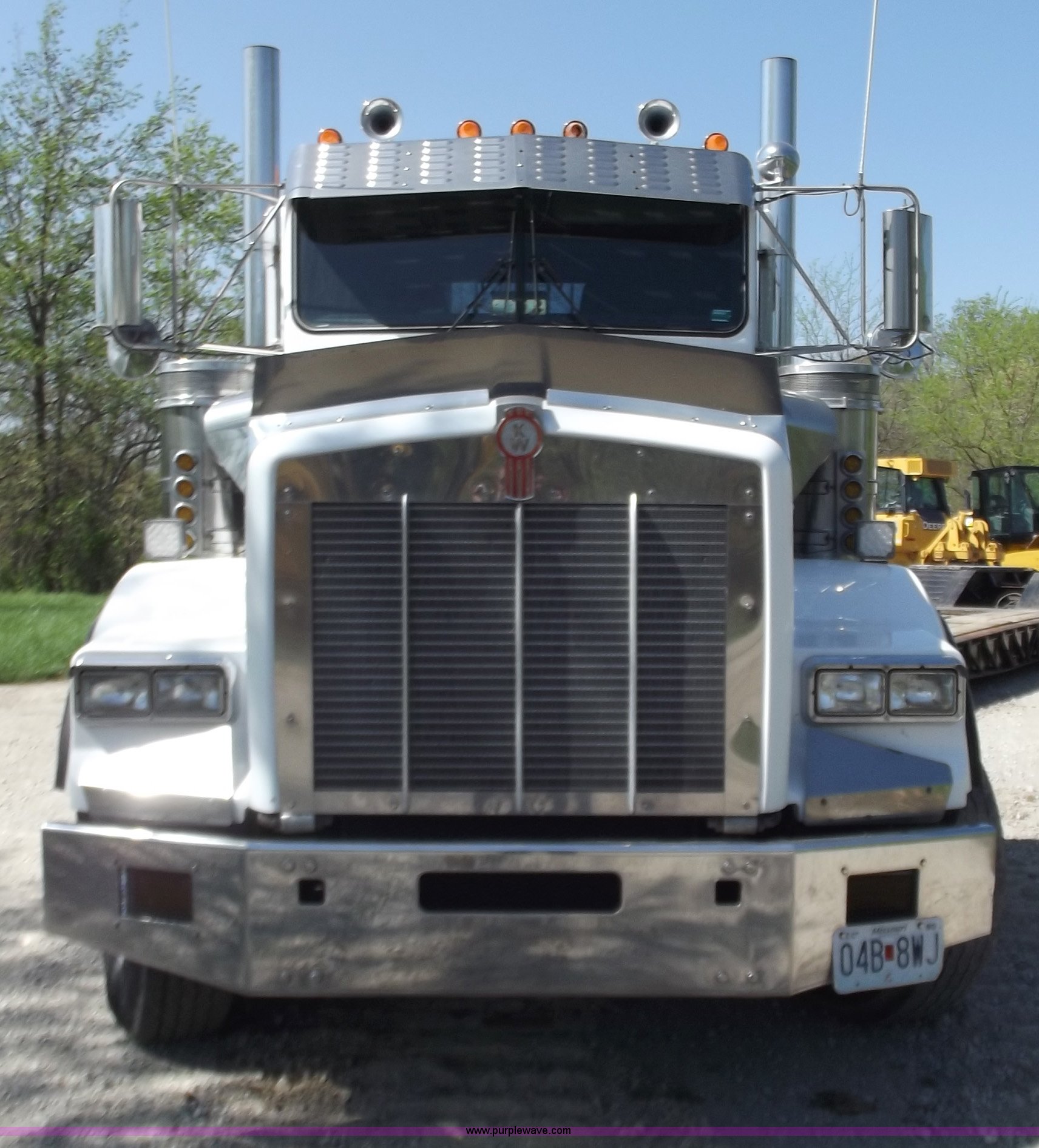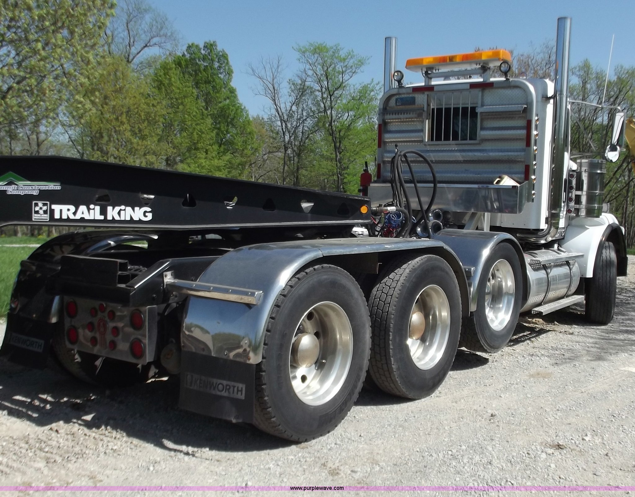 Purple Wave is selling a used Truck Tractor in Missouri. This item is a 1999 Kenworth T800 triple axle semi truck with the following: 411,832 miles on odometer, Cummins N14 14.0L diesel engine, Manual transmission, RTL01671, Twin screw, AC and heat, Tilt, Cruise, AM/FM/CD, Passenger daylight door, Air ride seat, Power passenger window, Heated mirrors, Cobra 29 LTD Classic CB radio, Air ride cab, Exterior visor, Chrome bumper, Block heater, 120 and 56 gallon fuel tanks, Dual rear exhaust stacks, Aluminum deck plate, Merritt headache racks, Window, Storage, Chain hanger, Star Bar yellow safety light, Bug shield, Wet kit, Dump valves, Air suspension, Air brakes, Jake brake, Pressure Pro tire monitoring system, Aluminum wheels, Wheel nut covers, 11R24.5 rear tires, 315/80R22.5 front tires, 285/75/24.5 tag axle tires, 4.11 gear ratio, Trailer not included