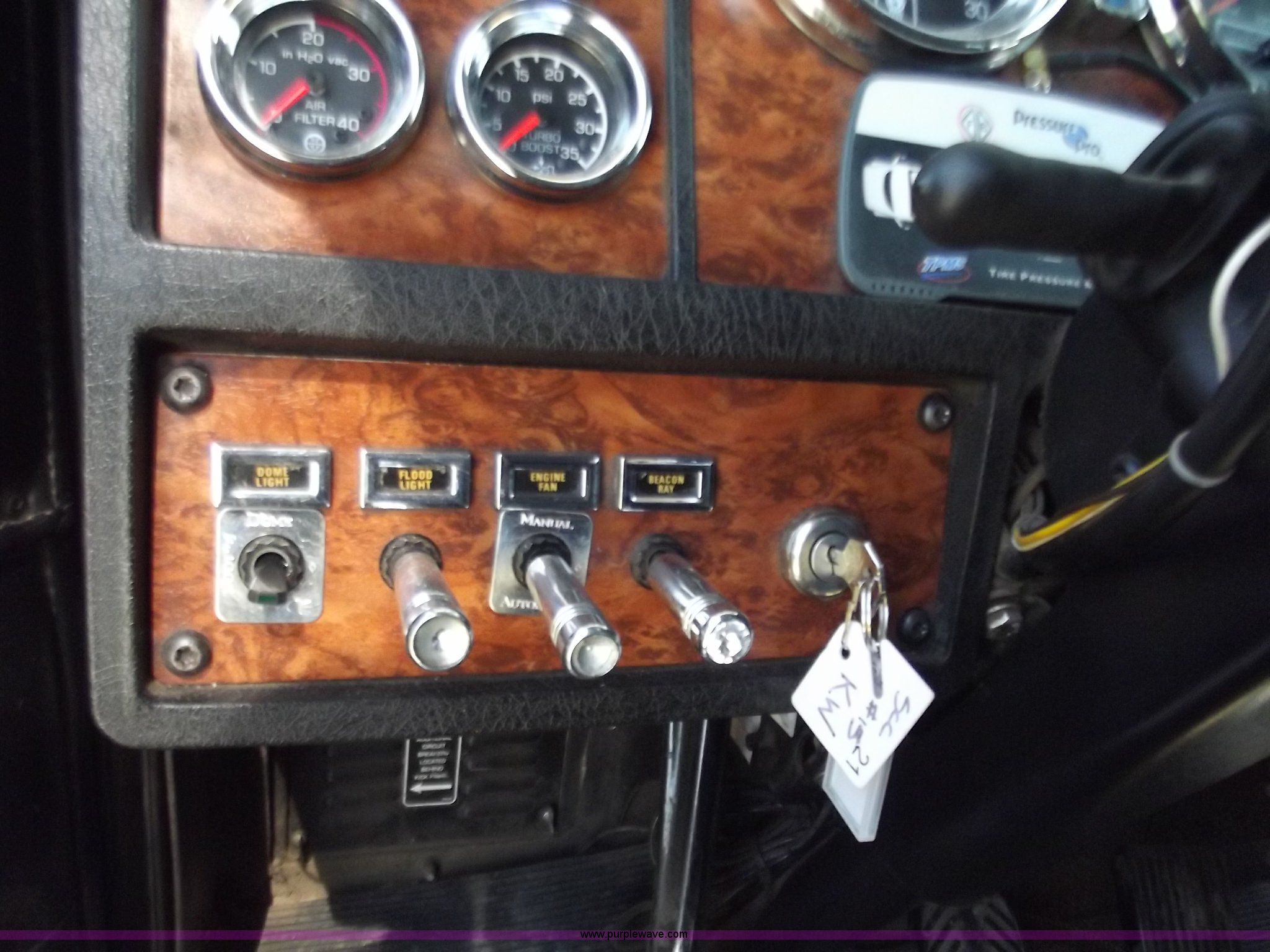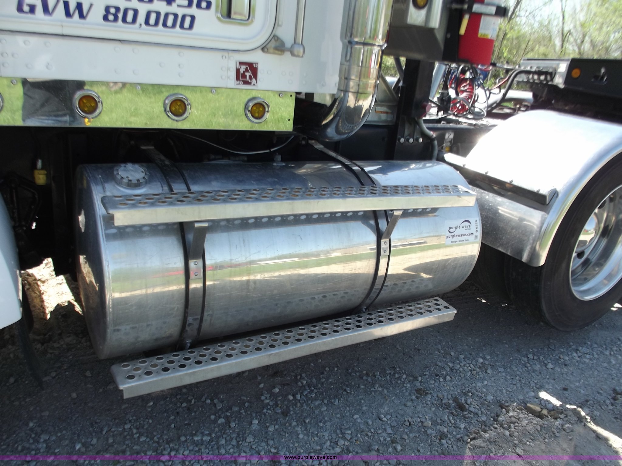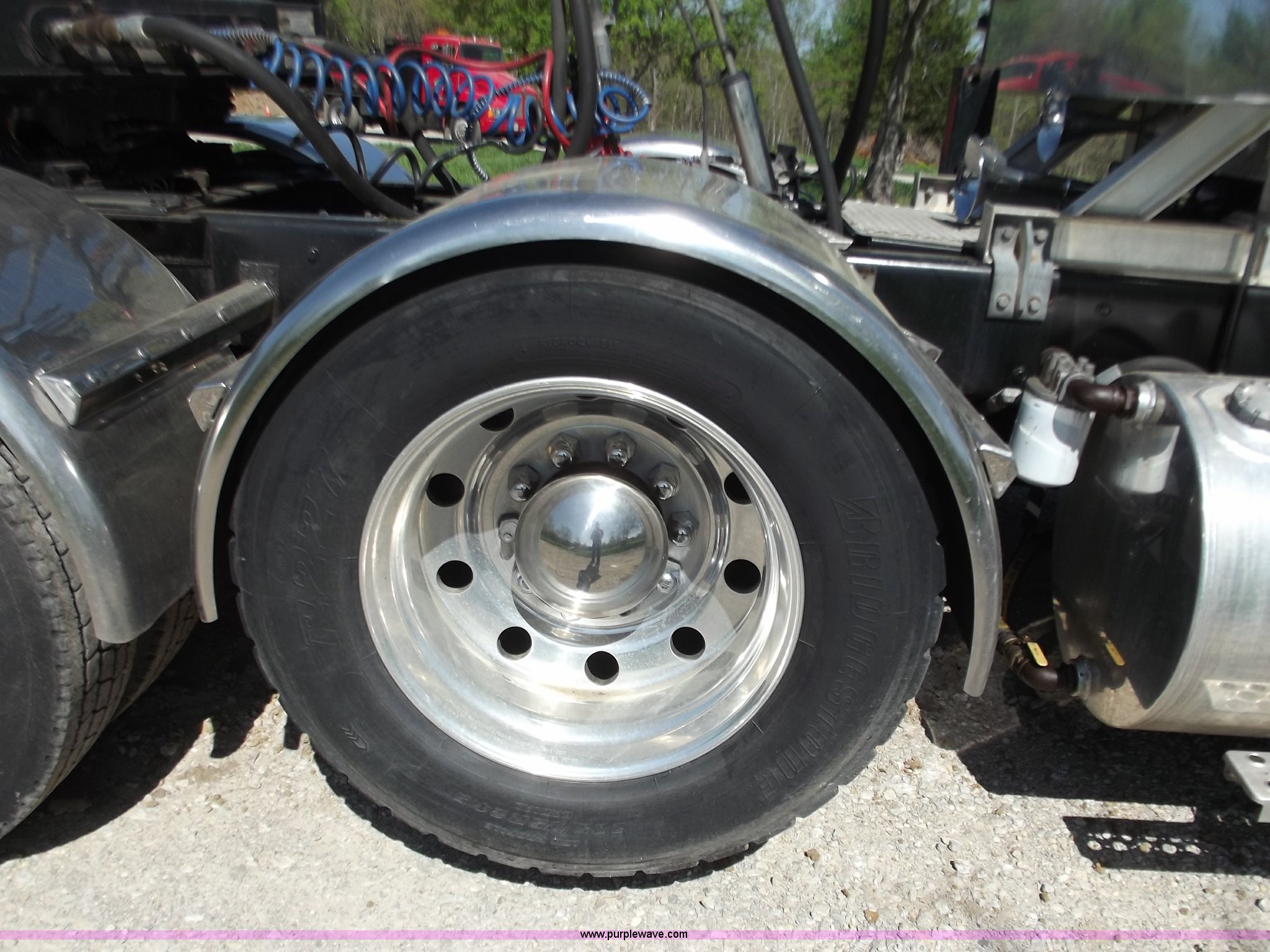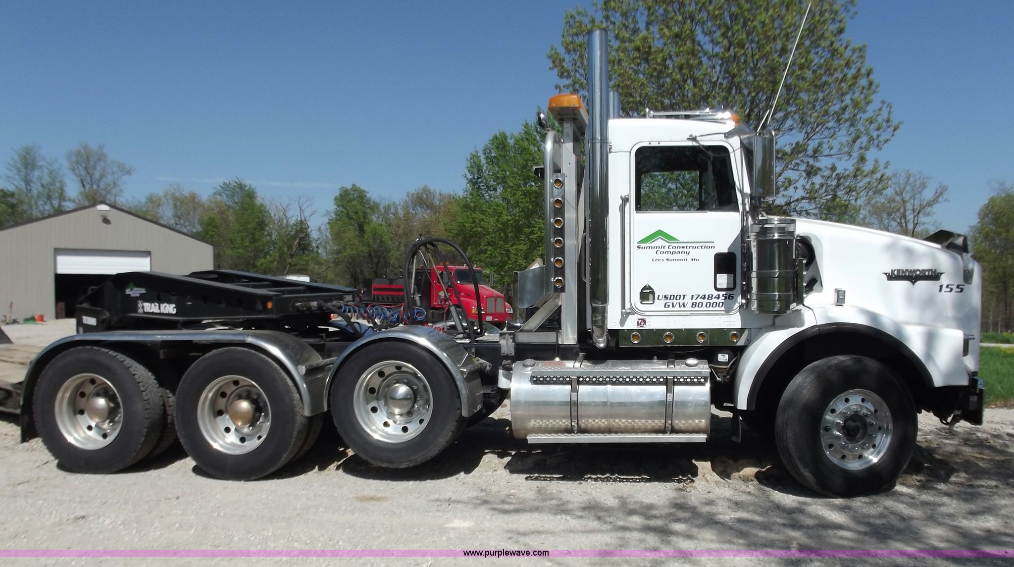 Purple Wave is selling a used Truck Tractor in Missouri. This item is a 1999 Kenworth T800 triple axle semi truck with the following: 411,832 miles on odometer, Cummins N14 14.0L diesel engine, Manual transmission, RTL01671, Twin screw, AC and heat, Tilt, Cruise, AM/FM/CD, Passenger daylight door, Air ride seat, Power passenger window, Heated mirrors, Cobra 29 LTD Classic CB radio, Air ride cab, Exterior visor, Chrome bumper, Block heater, 120 and 56 gallon fuel tanks, Dual rear exhaust stacks, Aluminum deck plate, Merritt headache racks, Window, Storage, Chain hanger, Star Bar yellow safety light, Bug shield, Wet kit, Dump valves, Air suspension, Air brakes, Jake brake, Pressure Pro tire monitoring system, Aluminum wheels, Wheel nut covers, 11R24.5 rear tires, 315/80R22.5 front tires, 285/75/24.5 tag axle tires, 4.11 gear ratio, Trailer not included