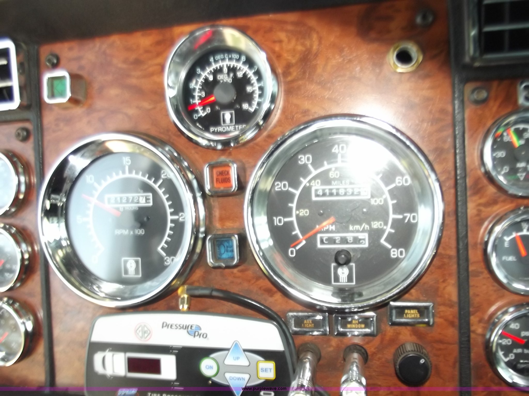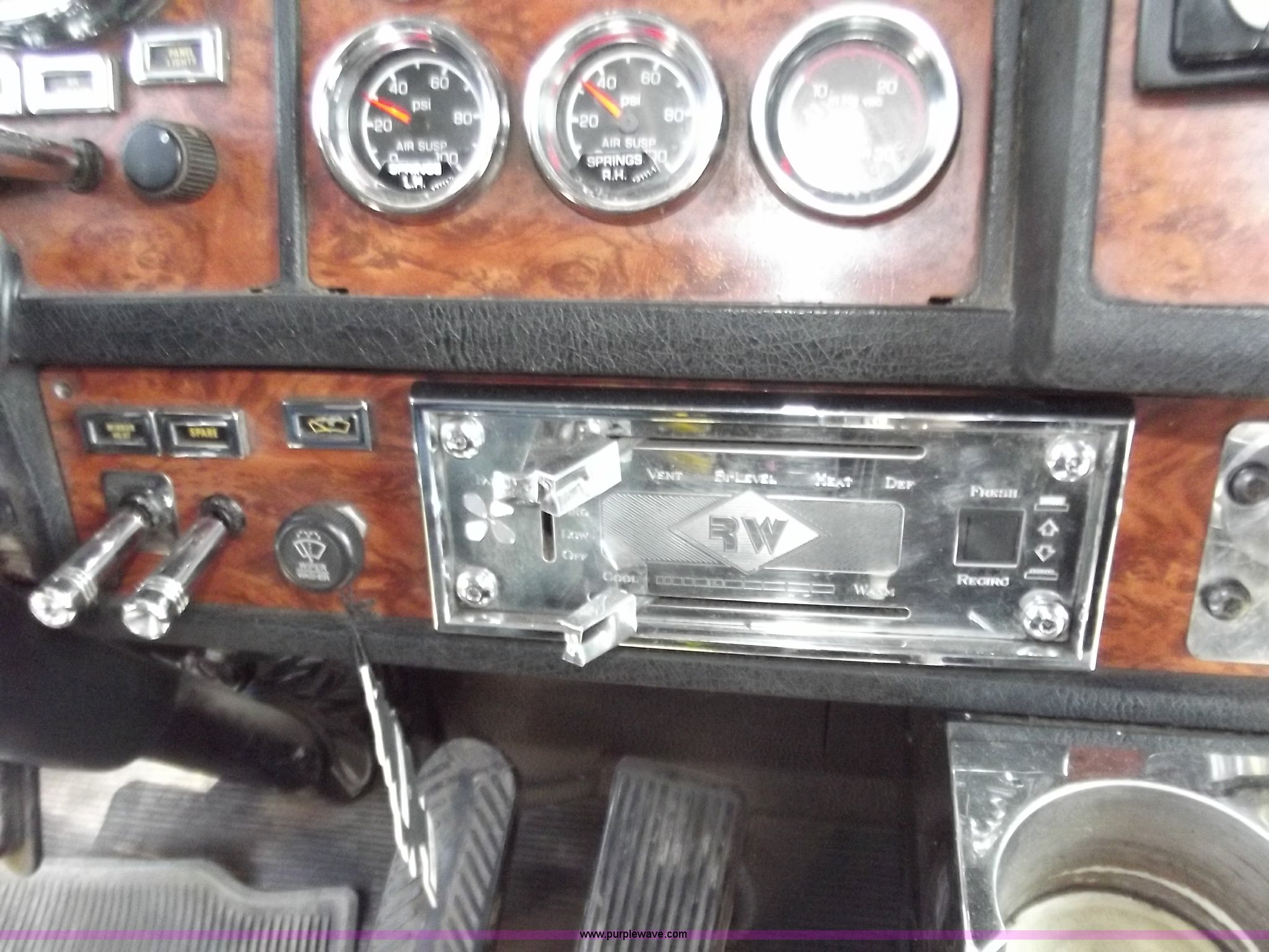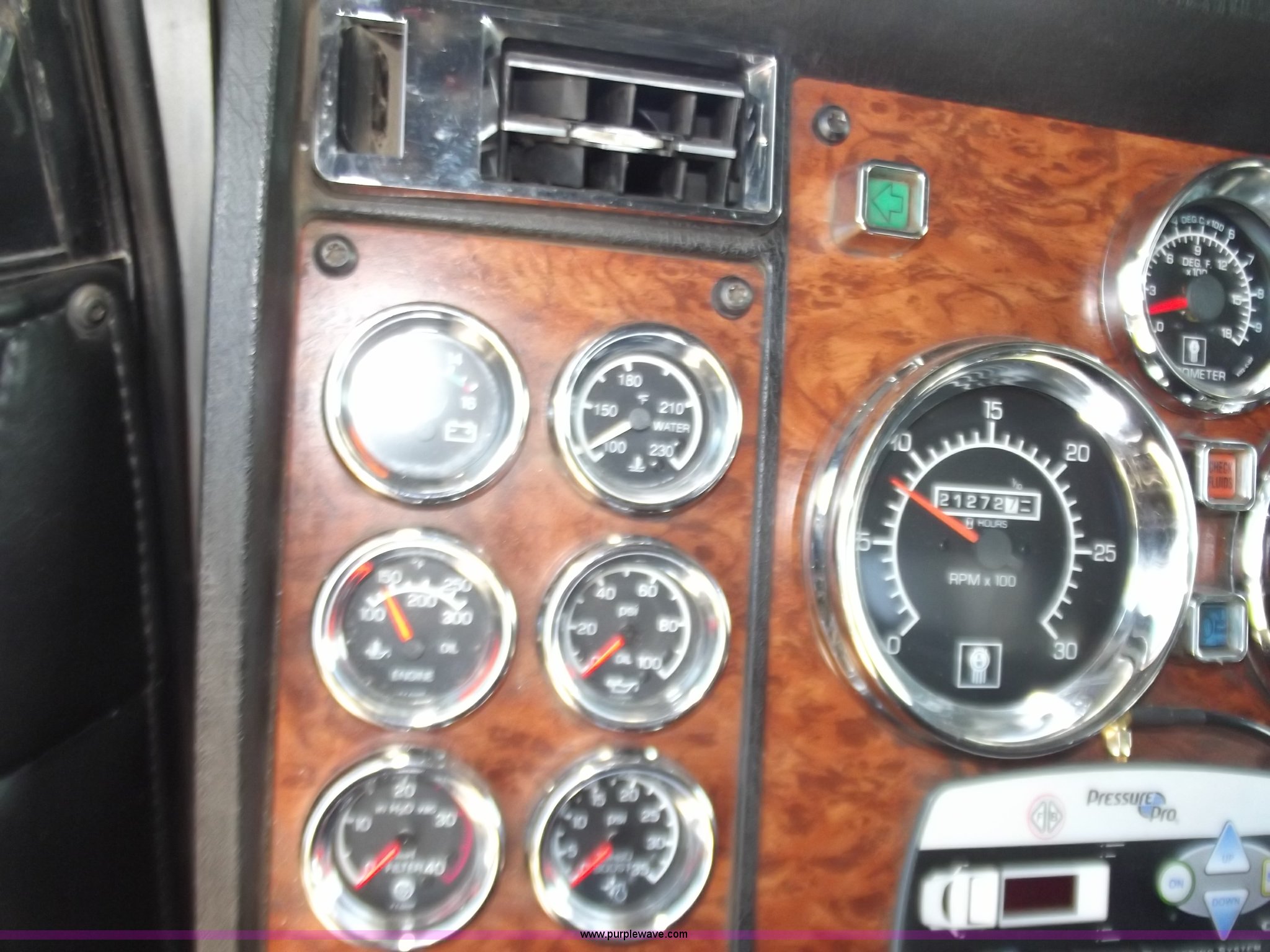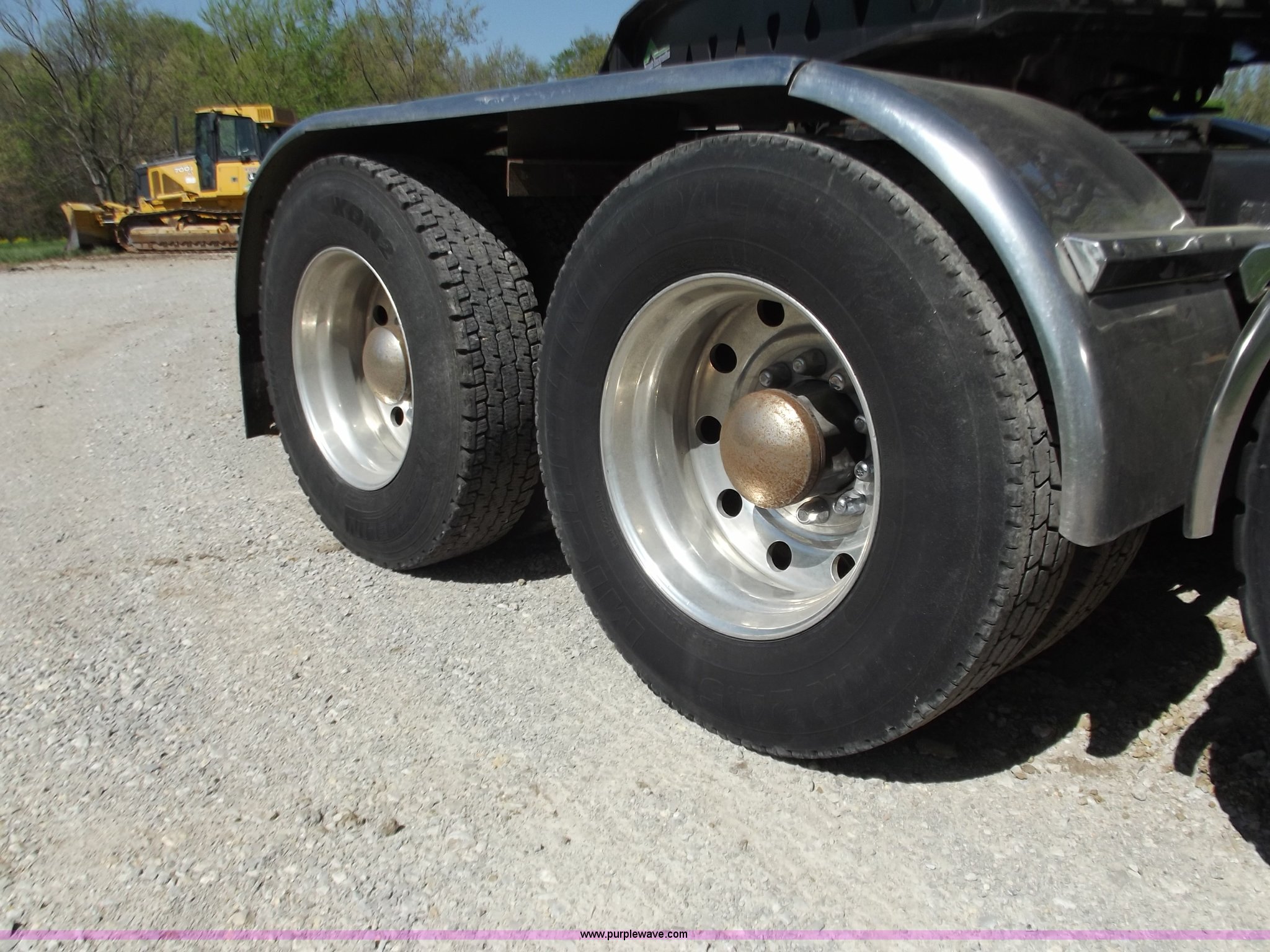 Purple Wave is selling a used Truck Tractor in Missouri. This item is a 1999 Kenworth T800 triple axle semi truck with the following: 411,832 miles on odometer, Cummins N14 14.0L diesel engine, Manual transmission, RTL01671, Twin screw, AC and heat, Tilt, Cruise, AM/FM/CD, Passenger daylight door, Air ride seat, Power passenger window, Heated mirrors, Cobra 29 LTD Classic CB radio, Air ride cab, Exterior visor, Chrome bumper, Block heater, 120 and 56 gallon fuel tanks, Dual rear exhaust stacks, Aluminum deck plate, Merritt headache racks, Window, Storage, Chain hanger, Star Bar yellow safety light, Bug shield, Wet kit, Dump valves, Air suspension, Air brakes, Jake brake, Pressure Pro tire monitoring system, Aluminum wheels, Wheel nut covers, 11R24.5 rear tires, 315/80R22.5 front tires, 285/75/24.5 tag axle tires, 4.11 gear ratio, Trailer not included