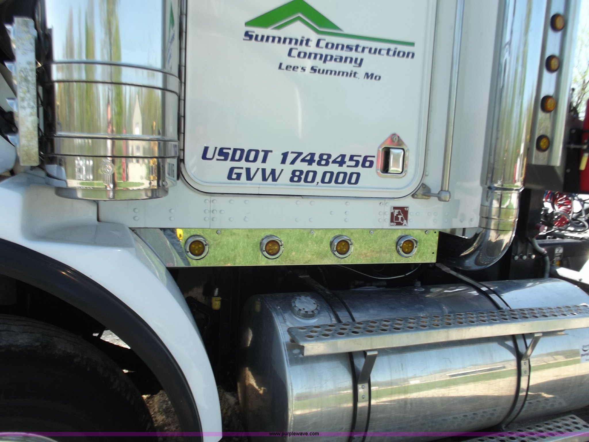 1999 Kenworth T800 triple axle semi truck. 411,832 miles on odometer, Cummins N14 14.0L diesel engine, Manual transmission RTL01671, Twin screw, AC and heat, Tilt, Cruise, AM/FM/CD, Passenger daylight door, Air ride seat, Power passenger window, Heated mirrors, Cobra 29 LTD Classic CB radio, Air ride cab, Exterior visor, Chrome bumper, Block heater, 120 and 56 gallon fuel tanks, Dual rear exhaust stacks, Aluminum deck plate, Merritt headache racks Window, Storage, Chain hanger, Star Bar yellow safety light, Bug shield, Wet kit, Dump valves, Air suspension, Air brakes, Jake brake, Pressure Pro tire monitoring system, Aluminum wheels, Wheel nut covers, 11R24.5 rear tires, 315/80R22.5 front tires, 285/75/24.5 tag axle tires, 4.11 gear ratio, Trailer not included. 3WKDD60X2XF822236. Shipping quotes available. Summit Construction Company. 15000 S Hamilton Rd. Greenwood, MO 64034
