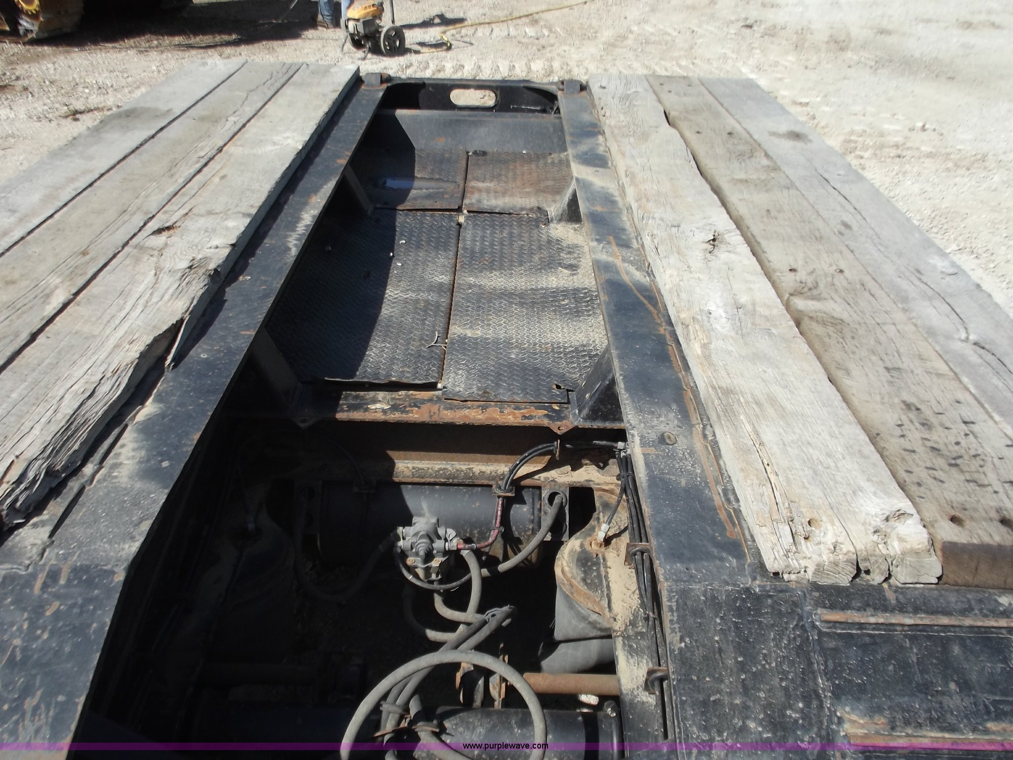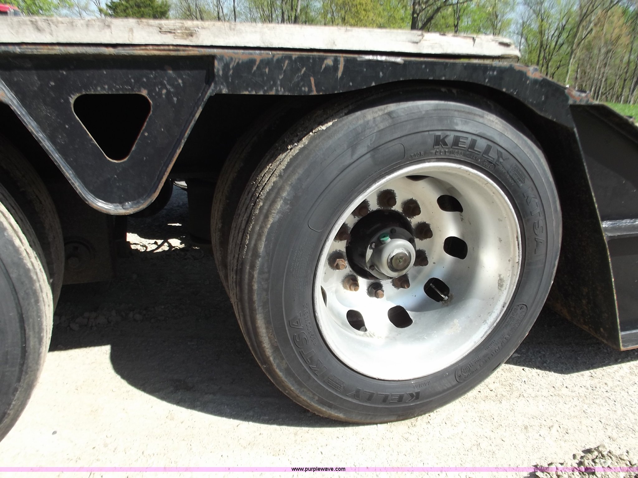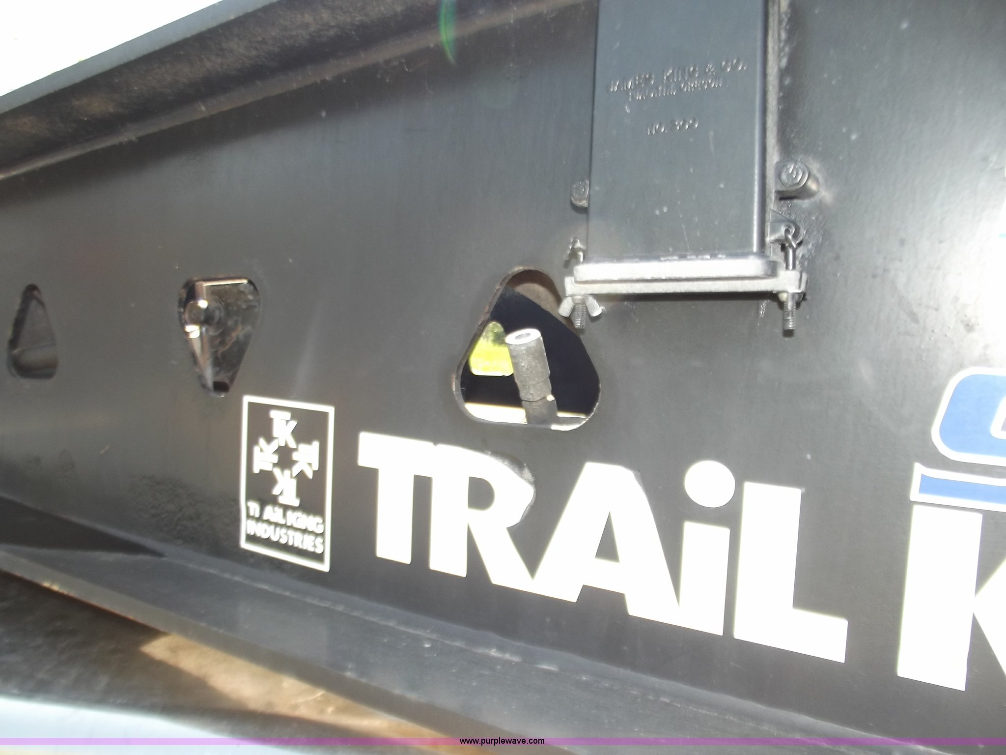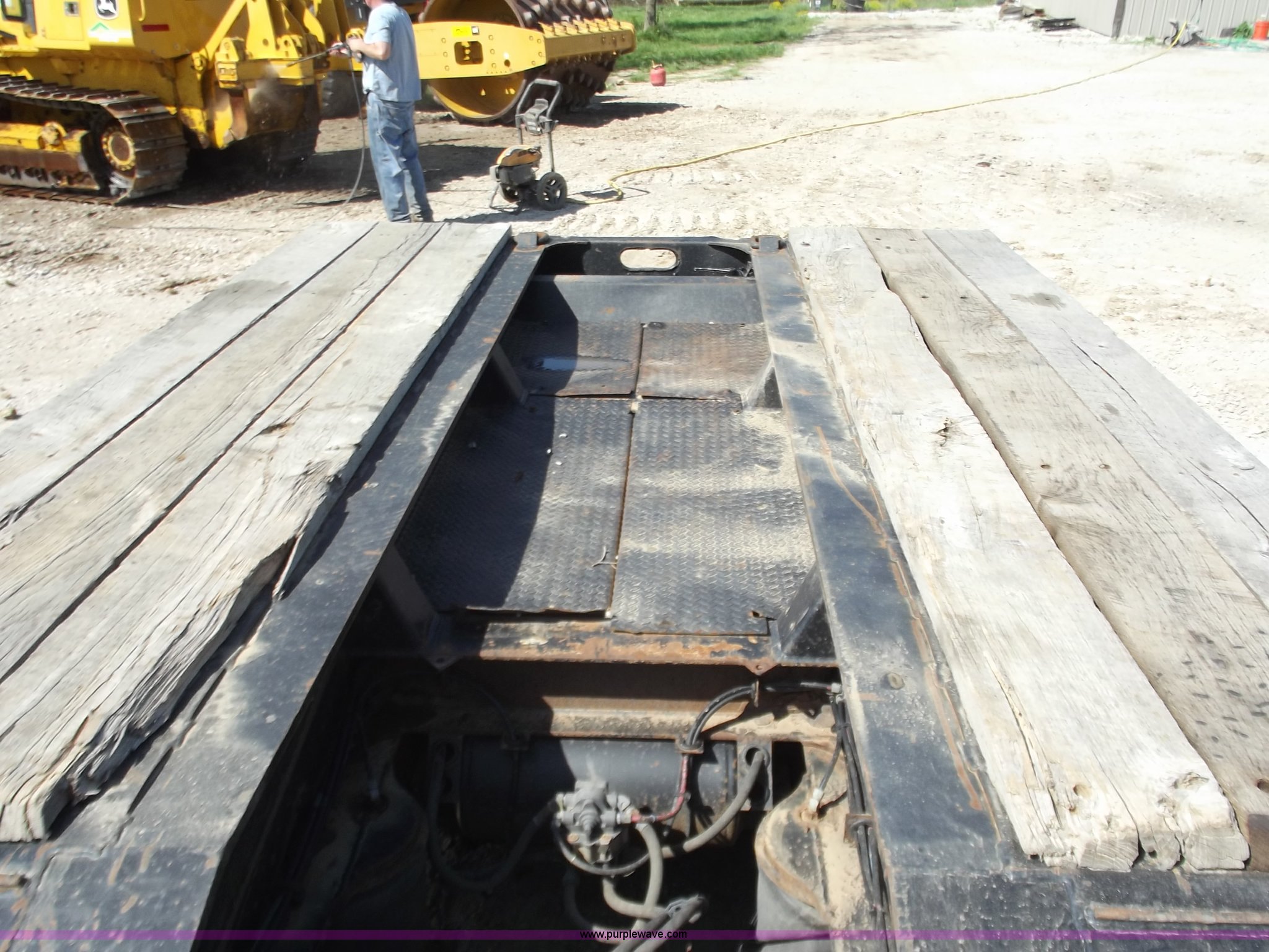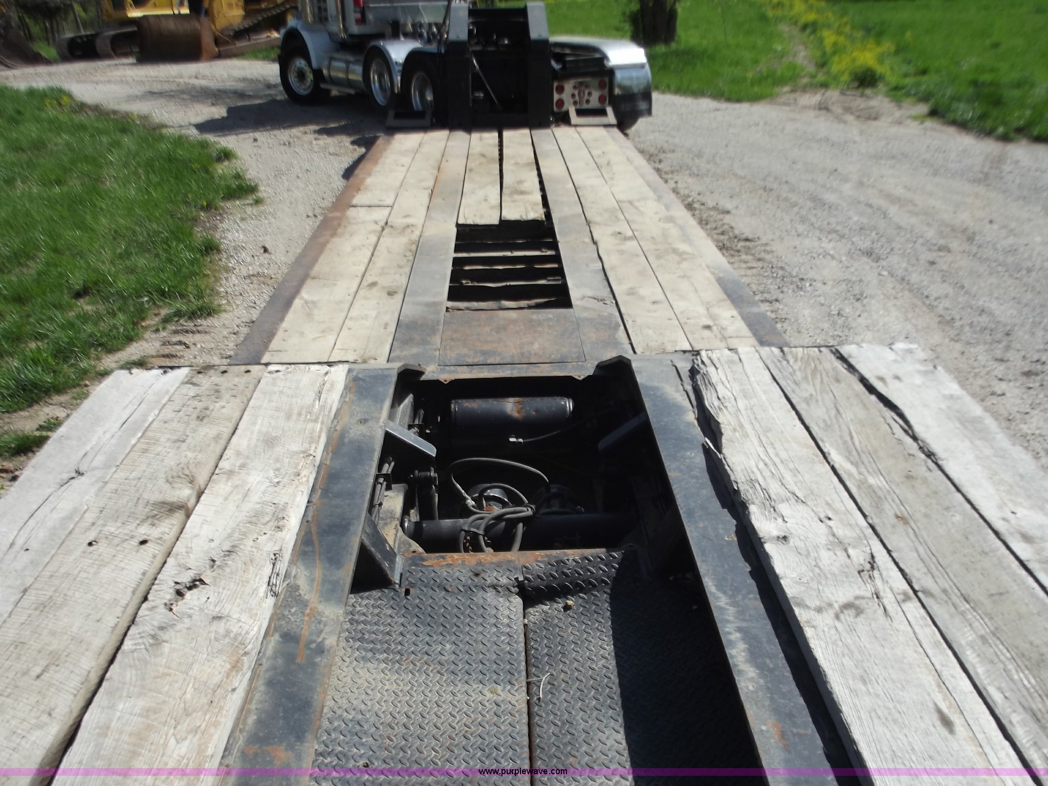 Purple Wave is selling a used Equip. Trailer in Missouri. This item is a 1999 Trail King 50 ton lowboy trailer with the following: Model TK100HDG-533, GVWR 133,320 lbs, GAWR 20,280 lbs, 100,000 lbs concentrated load rating, 40'L, 24' flat deck, 12' top deck above tires, 4' ramp, 24" fold down ramps, 14" to 26" fold out extenders, Air suspension, Air brakes, Aluminum wheels, 225/70R22.5 tires, Oversize load sign on rear, One air bag will need replaced