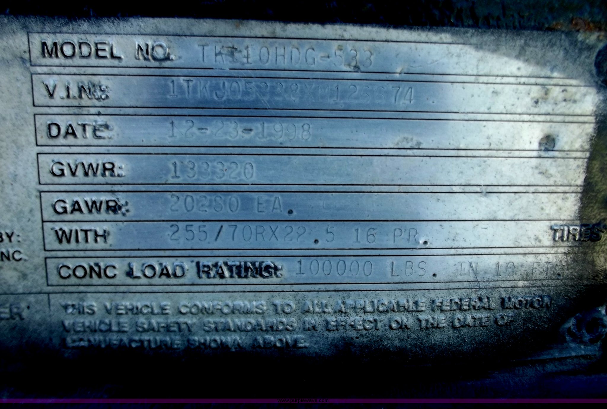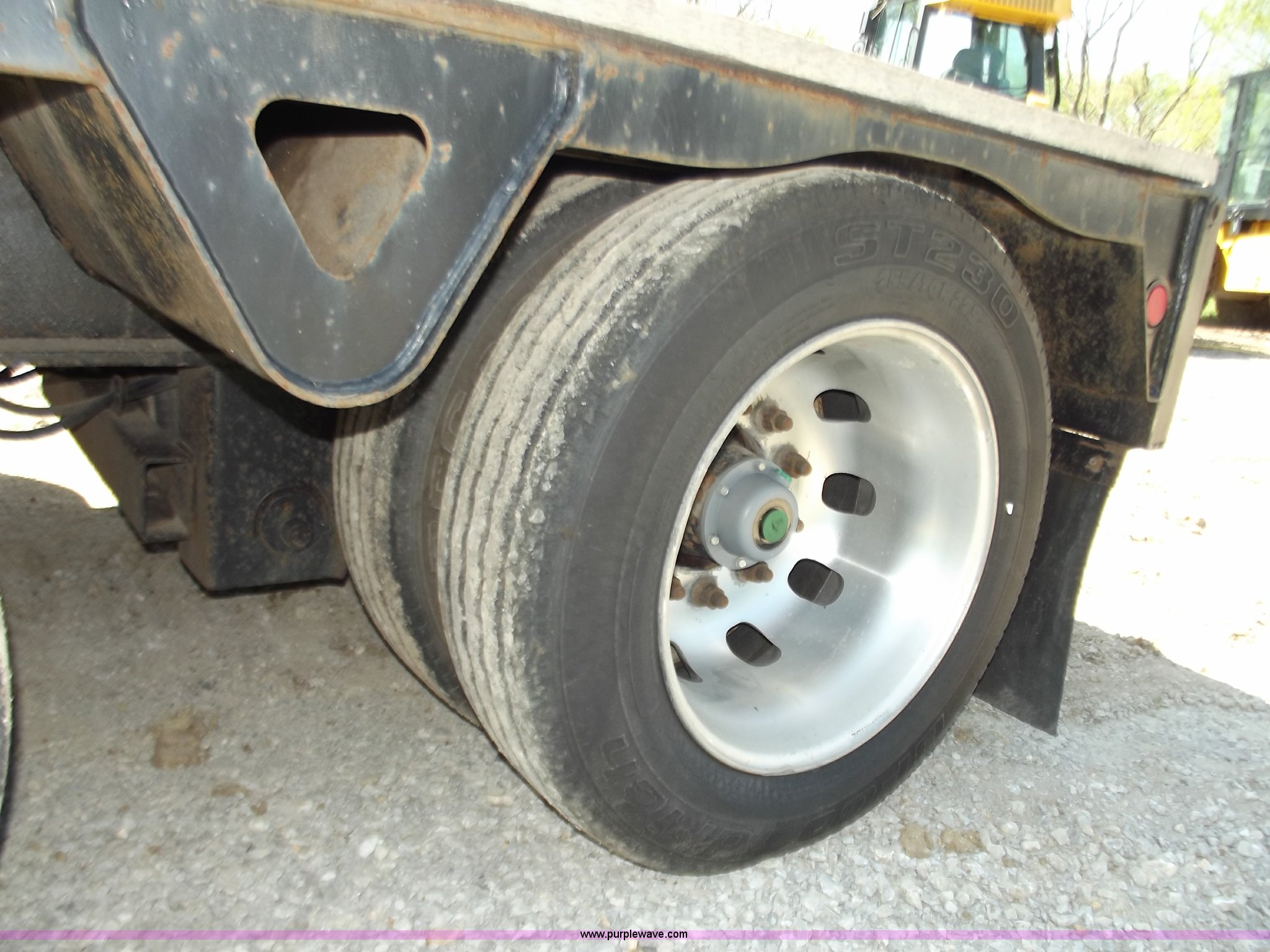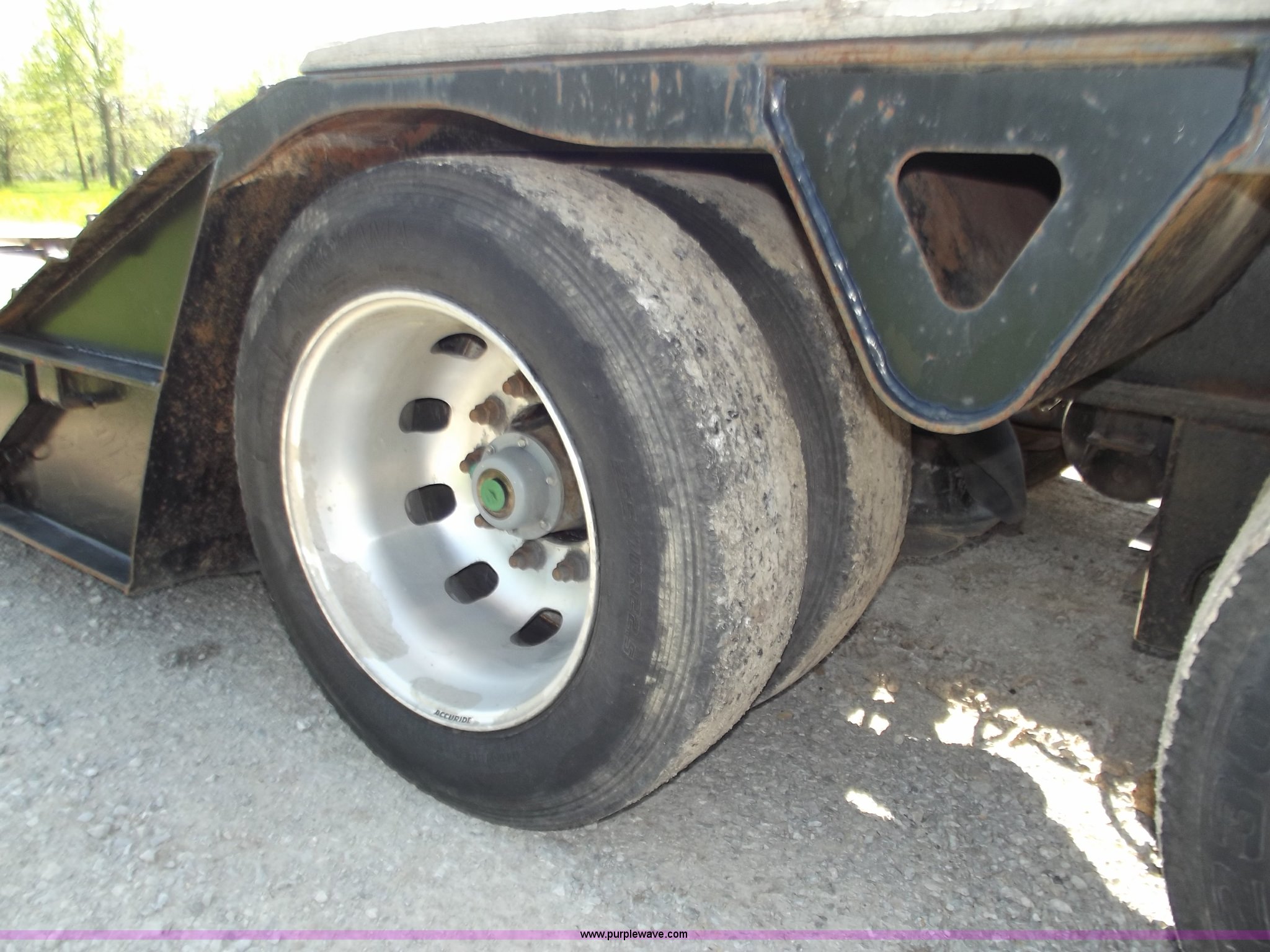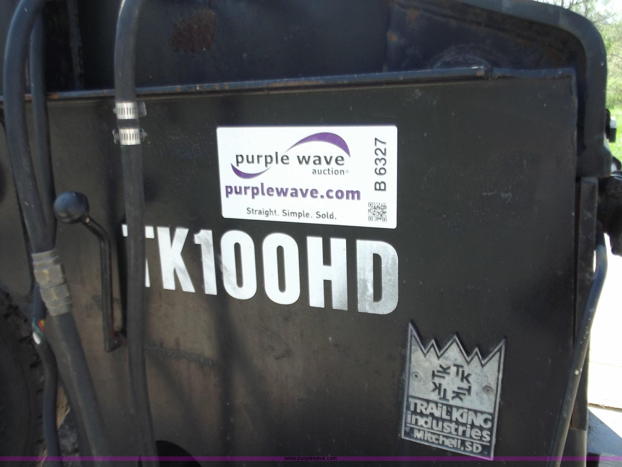 Purple Wave is selling a used Equip. Trailer in Missouri. This item is a 1999 Trail King 50 ton lowboy trailer with the following: Model TK100HDG-533, GVWR 133,320 lbs, GAWR 20,280 lbs, 100,000 lbs concentrated load rating, 40'L, 24' flat deck, 12' top deck above tires, 4' ramp, 24" fold down ramps, 14" to 26" fold out extenders, Air suspension, Air brakes, Aluminum wheels, 225/70R22.5 tires, Oversize load sign on rear, One air bag will need replaced