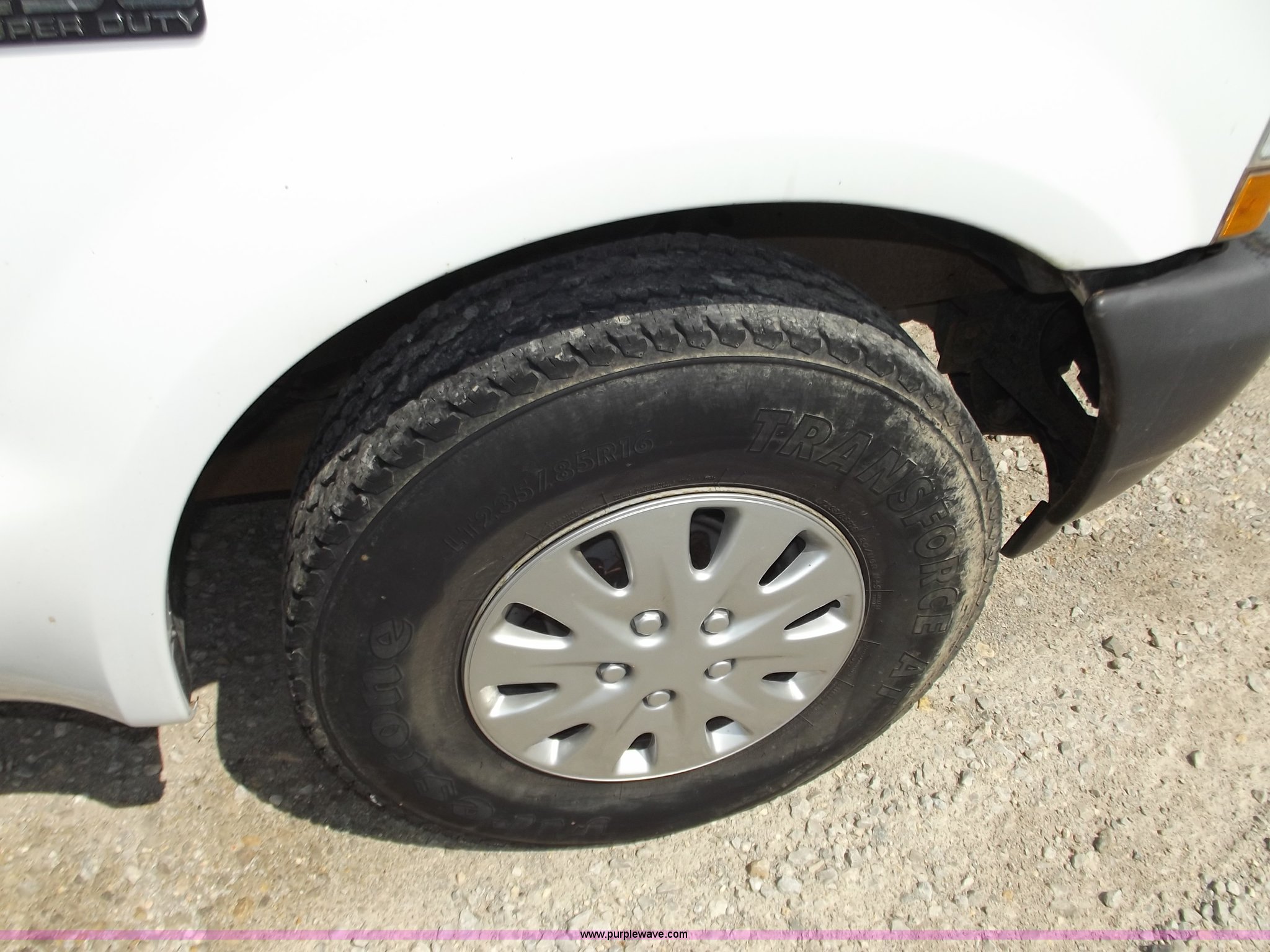 2004 Ford F250 XL Super Duty pickup truck. 263,077 miles on odometer, 5.4L V8 EFI gas engine, Automatic transmission, AC and heat, Tilt, AM/FM, Power windows, locks, and mirrors, Cloth interior, 105 gallon fuel tank with electric motor, Weatherguard toolbox Approx. 20"W x 70"L x 18"D, Front tow hooks, Receiver hitch, Trailer wiring, LT235/85R16 tires. 1FTNF20L74EC22151. Shipping quotes available. Summit Construction Company. 15000 S Hamilton Rd. Greenwood, MO 64034