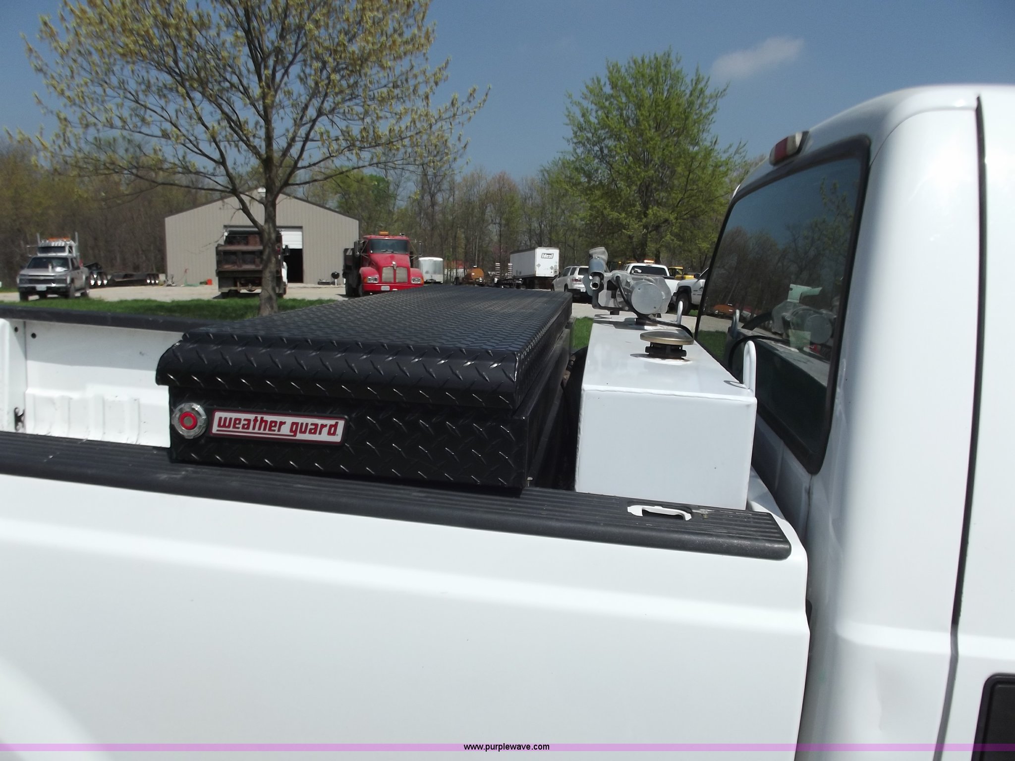 Purple Wave is selling a used Passenger Vehicle in Missouri. This item is a 2004 Ford F250 XL Super Duty pickup truck with the following: 263,077 miles on odometer, 5.4L V8 EFI gas engine, Automatic transmission, AC and heat, Tilt, AM/FM, Power windows, locks, and mirrors, Cloth interior, 105 gallon fuel tank with electric motor, Weatherguard toolbox, Approx. 20"W x 70"L x 18"D, Front tow hooks, Receiver hitch, Trailer wiring, LT235/85R16 tires
