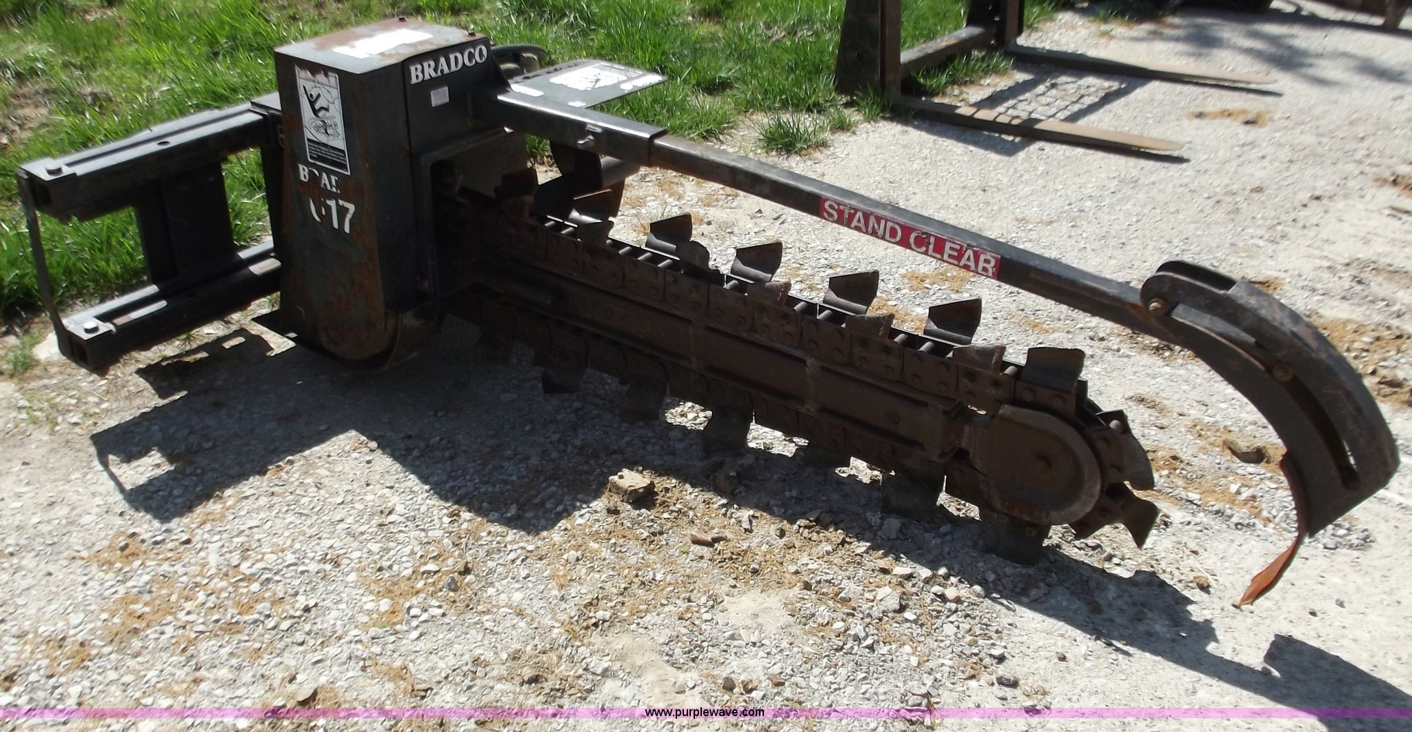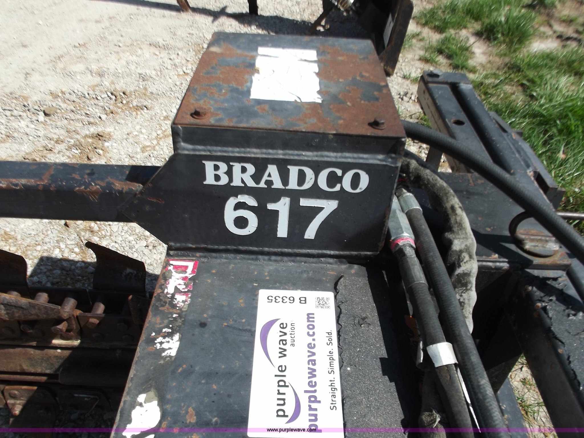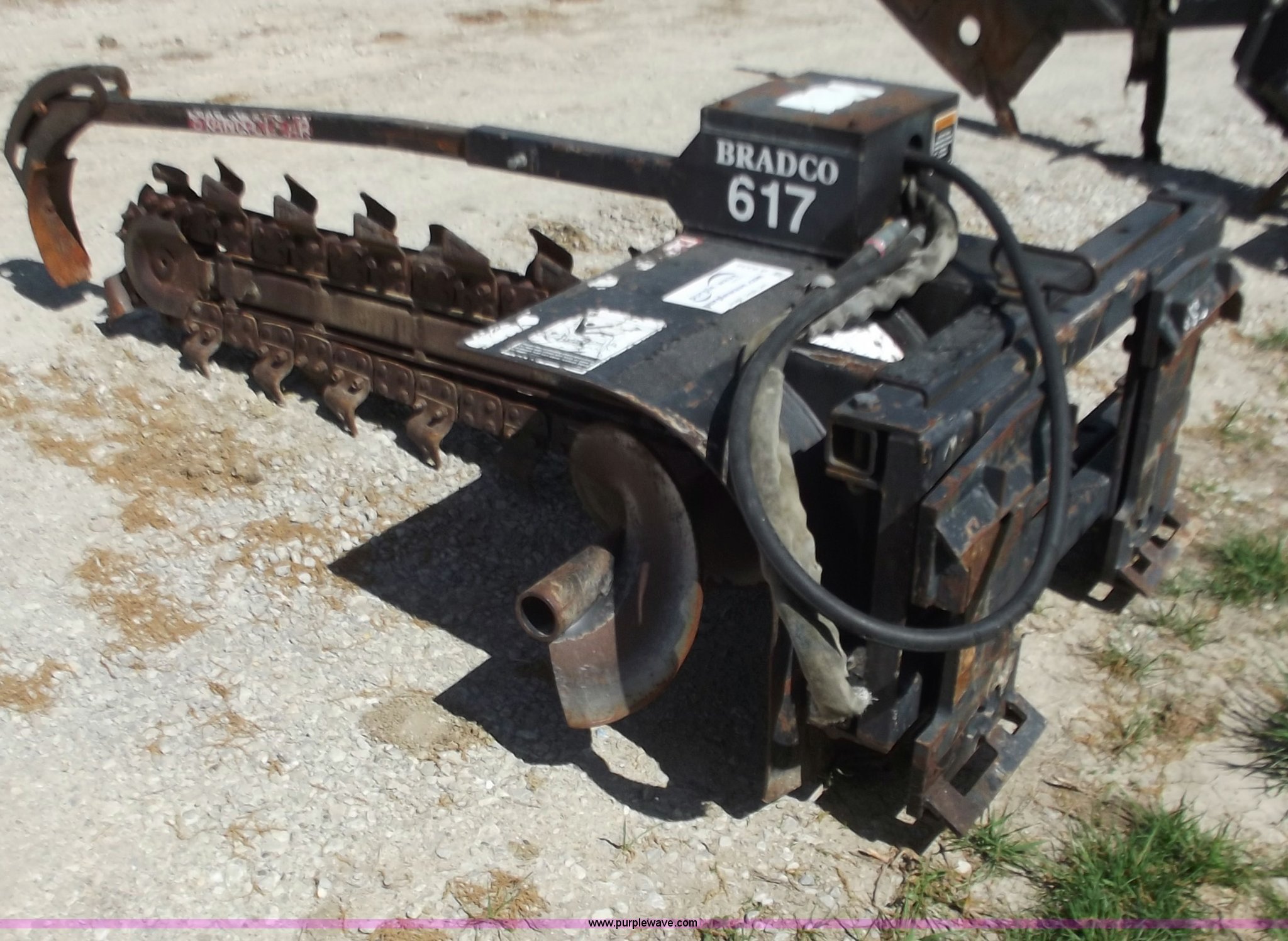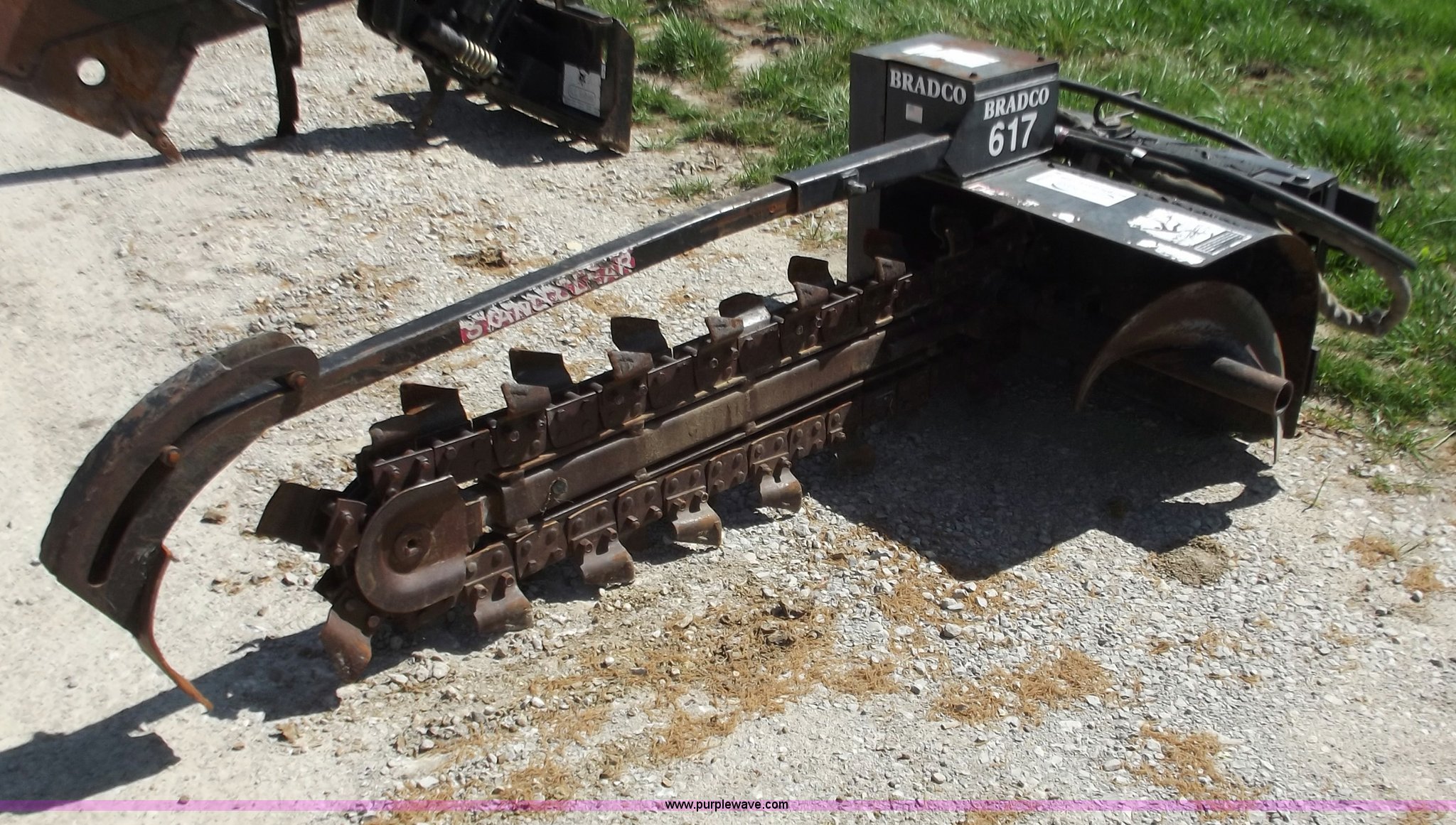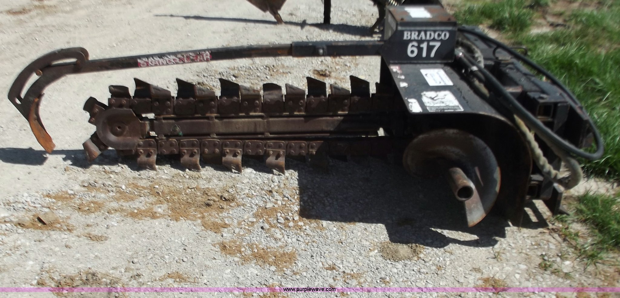 Bradco 617 trencher skid steer attachment has sold in Greenwood, Missouri for $3410. Item B6335 sold on May 3rd, 2012.