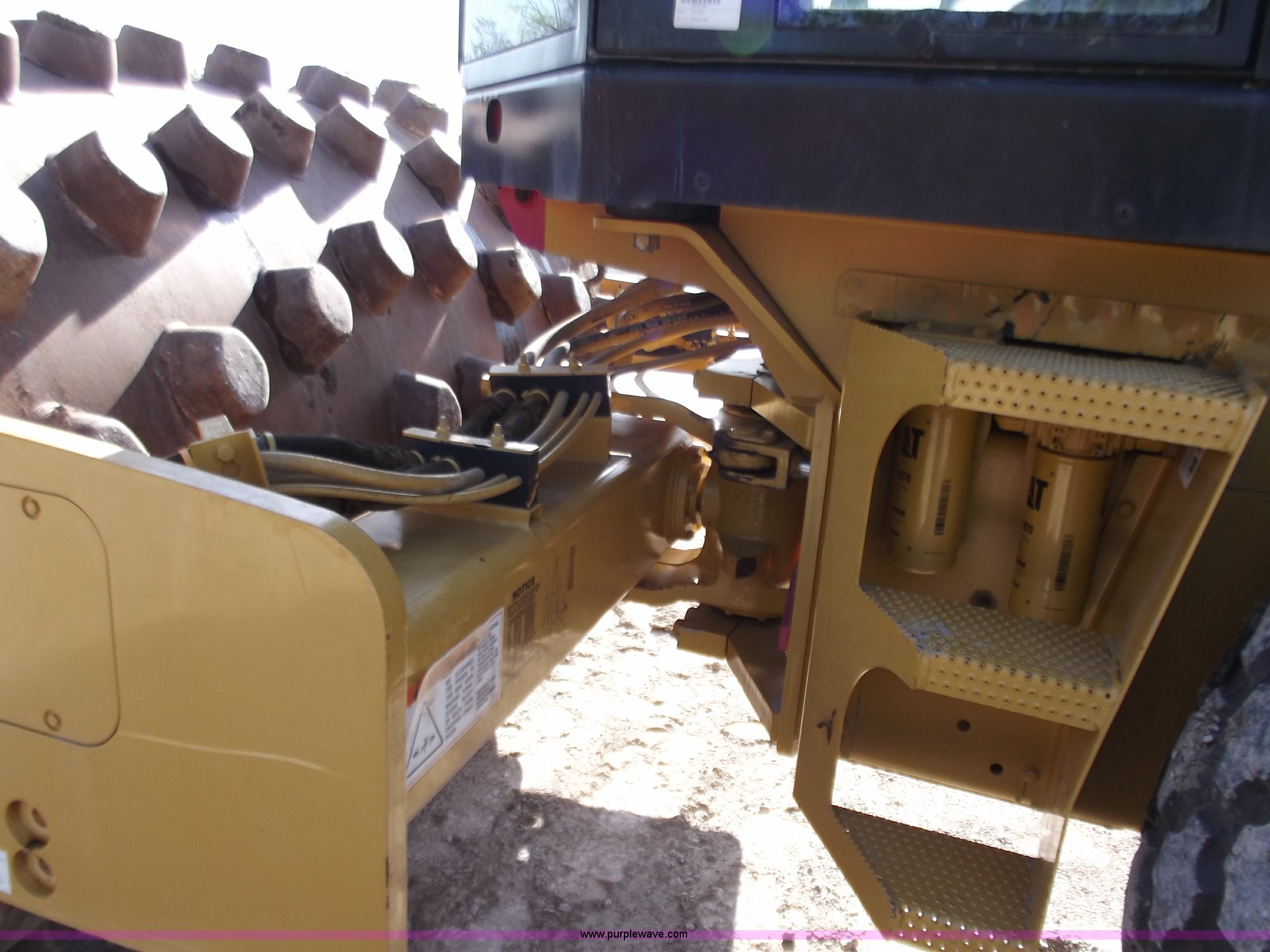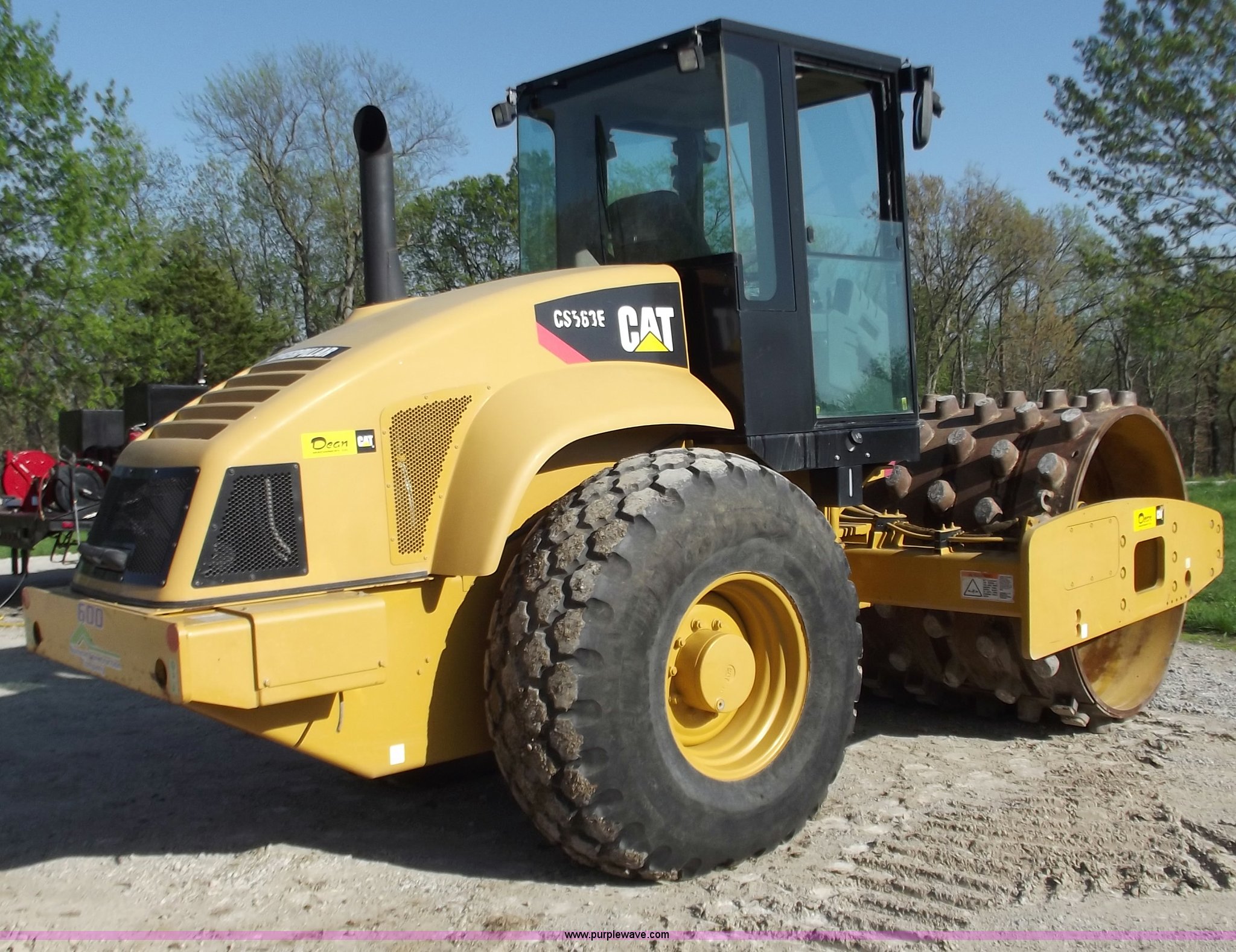 Purple Wave is selling a used Single Drum Roller Compactor in Missouri. This item is a 2007 Caterpillar CS563E smooth drum roller with padfoot kit with the following: 1,073 hours on meter, Caterpillar 3056E six cylinder diesel engine, 142 HP, 7'W x 60" diameter drum, Cab with AC and heat, 23.1-26 rear tires, 24,520 lbs. base operating weight, Serial CATC5563ACNG02158